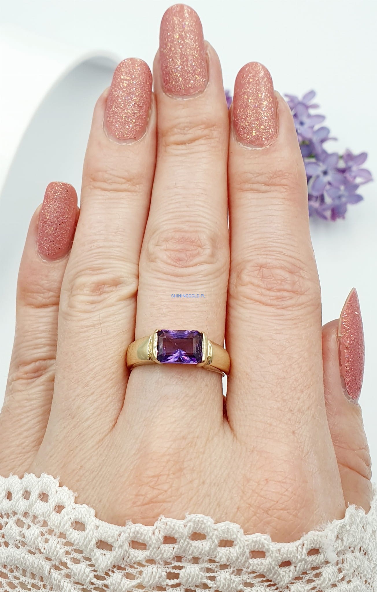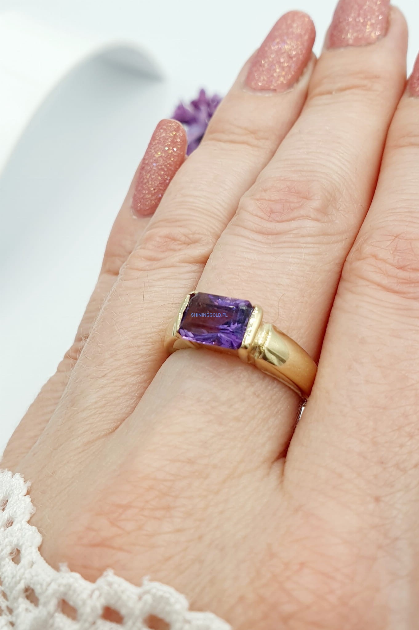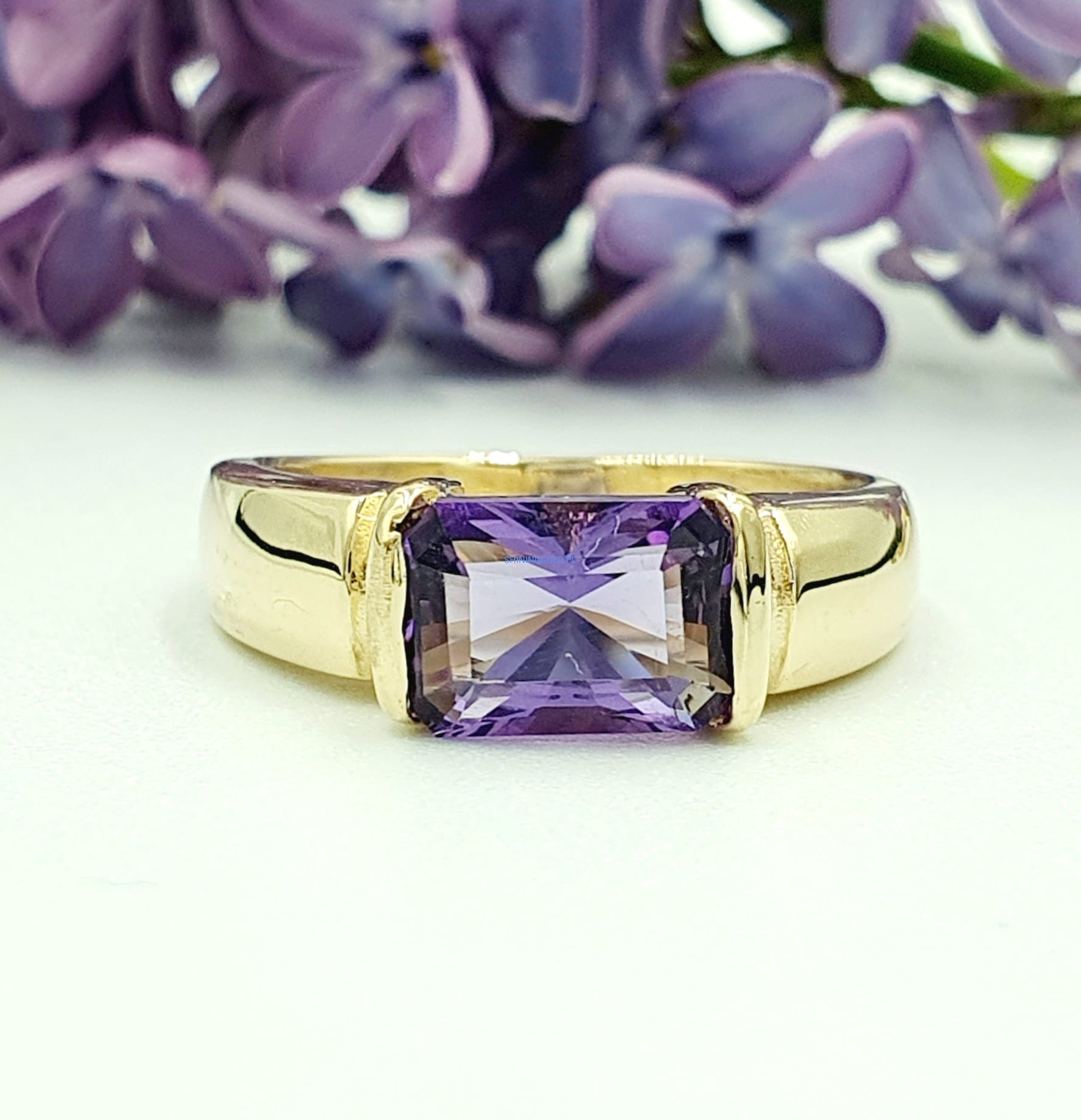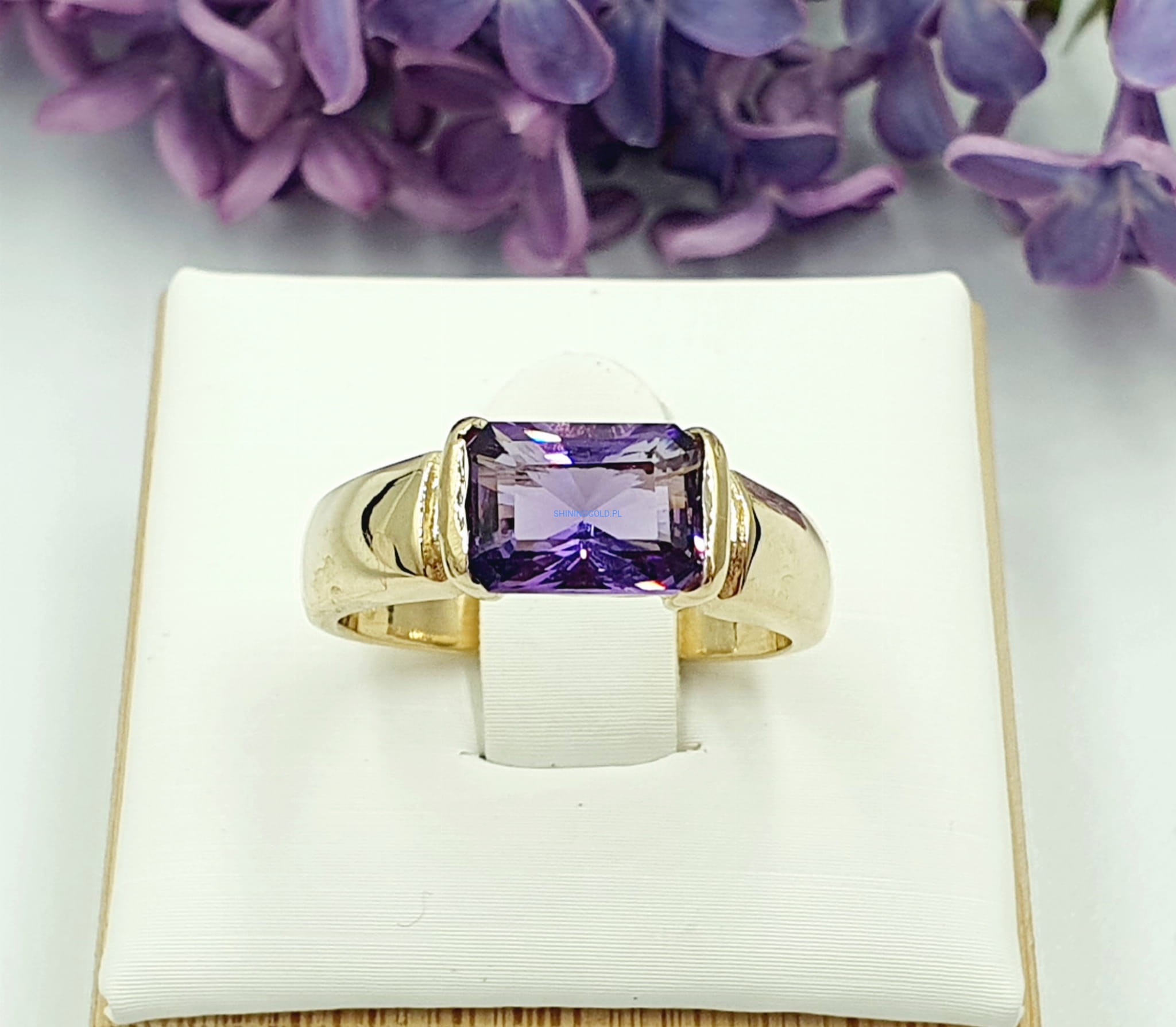 Piękny pierścionek z Ametystem, wykonany ze złota próby 585
