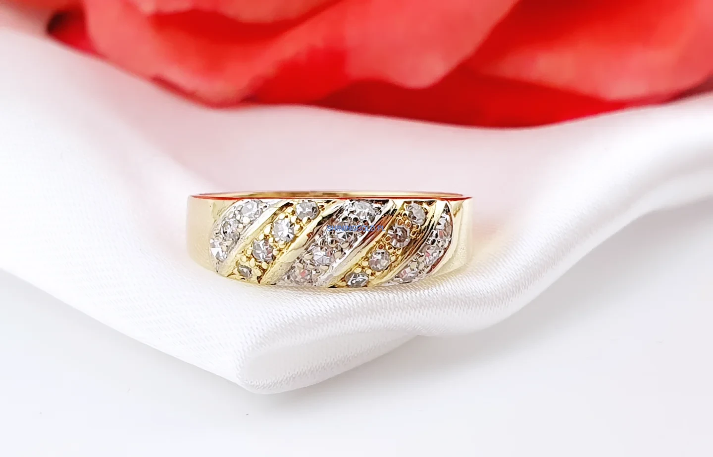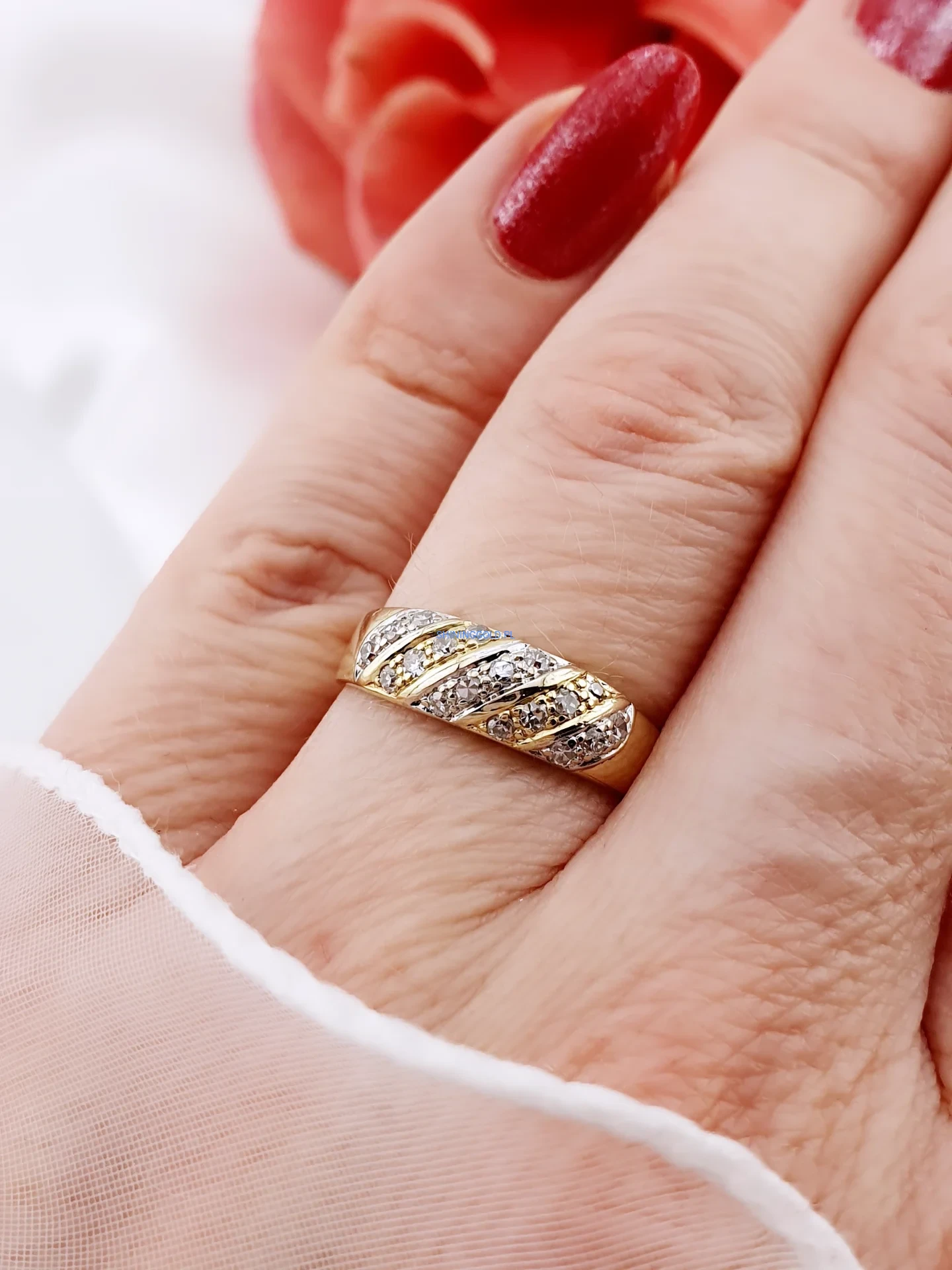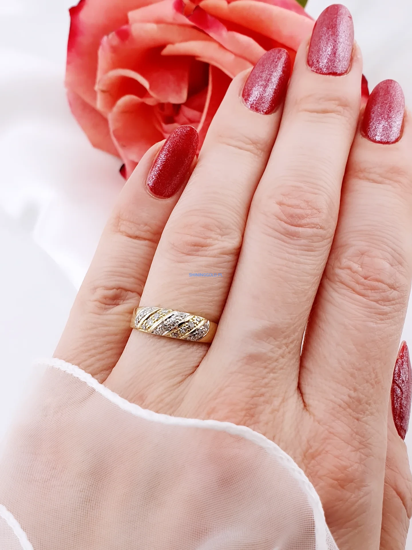 Klasyczny złoty pierścionek z diamentami – ponadczasowa elegancja
