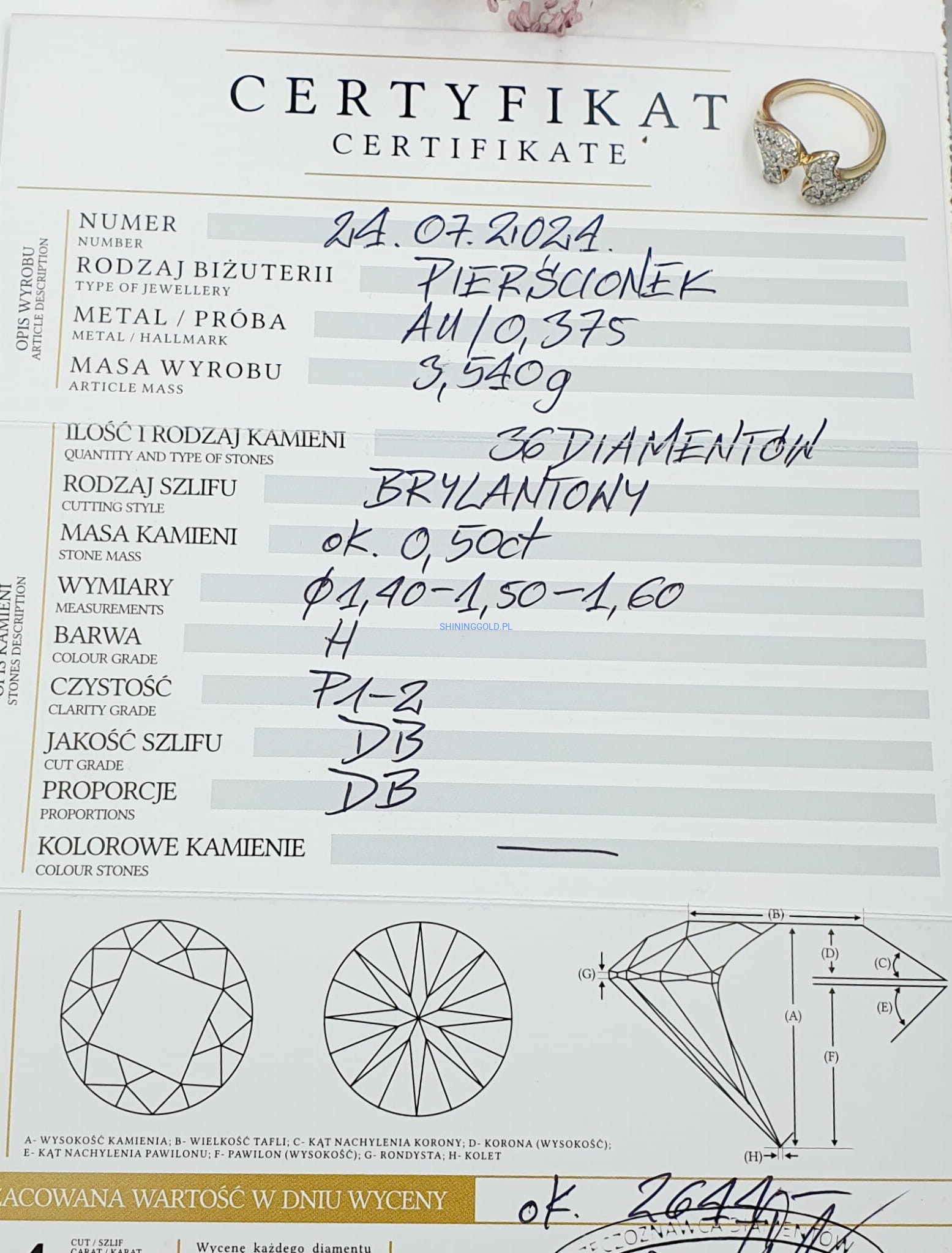 Złoty pierścionek z Diamentami (1087.WS)