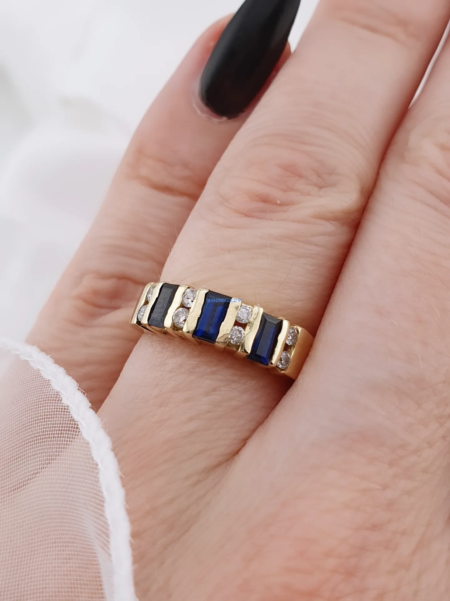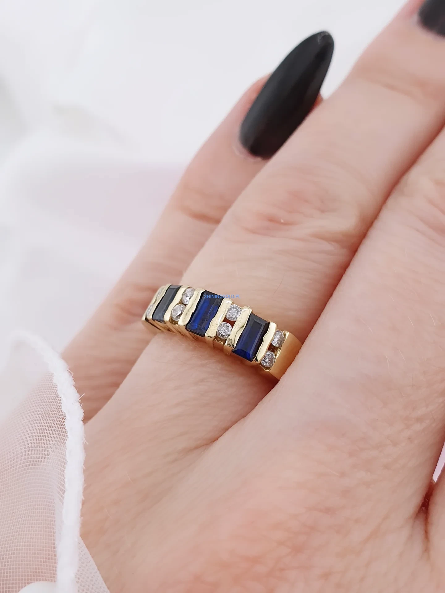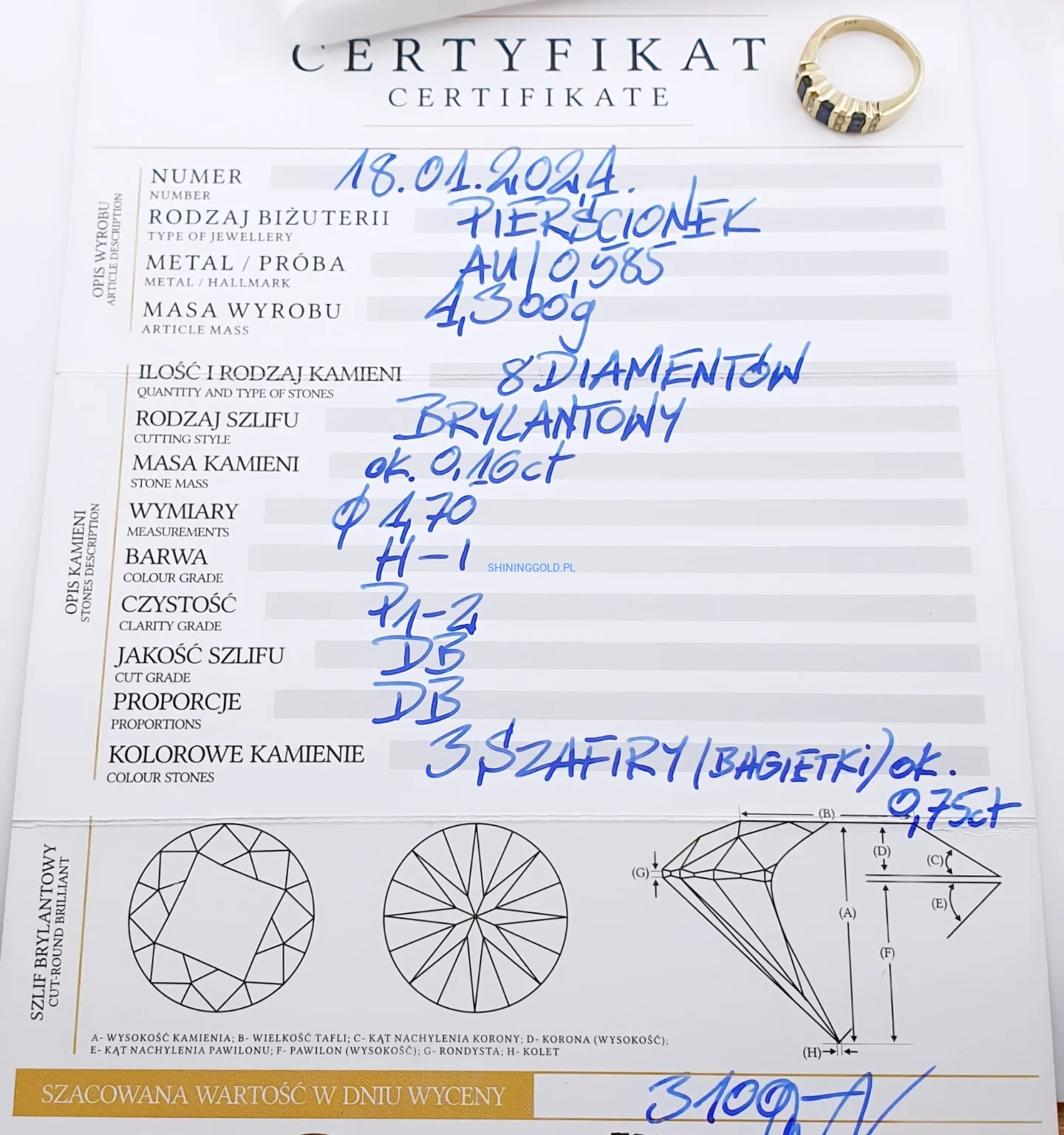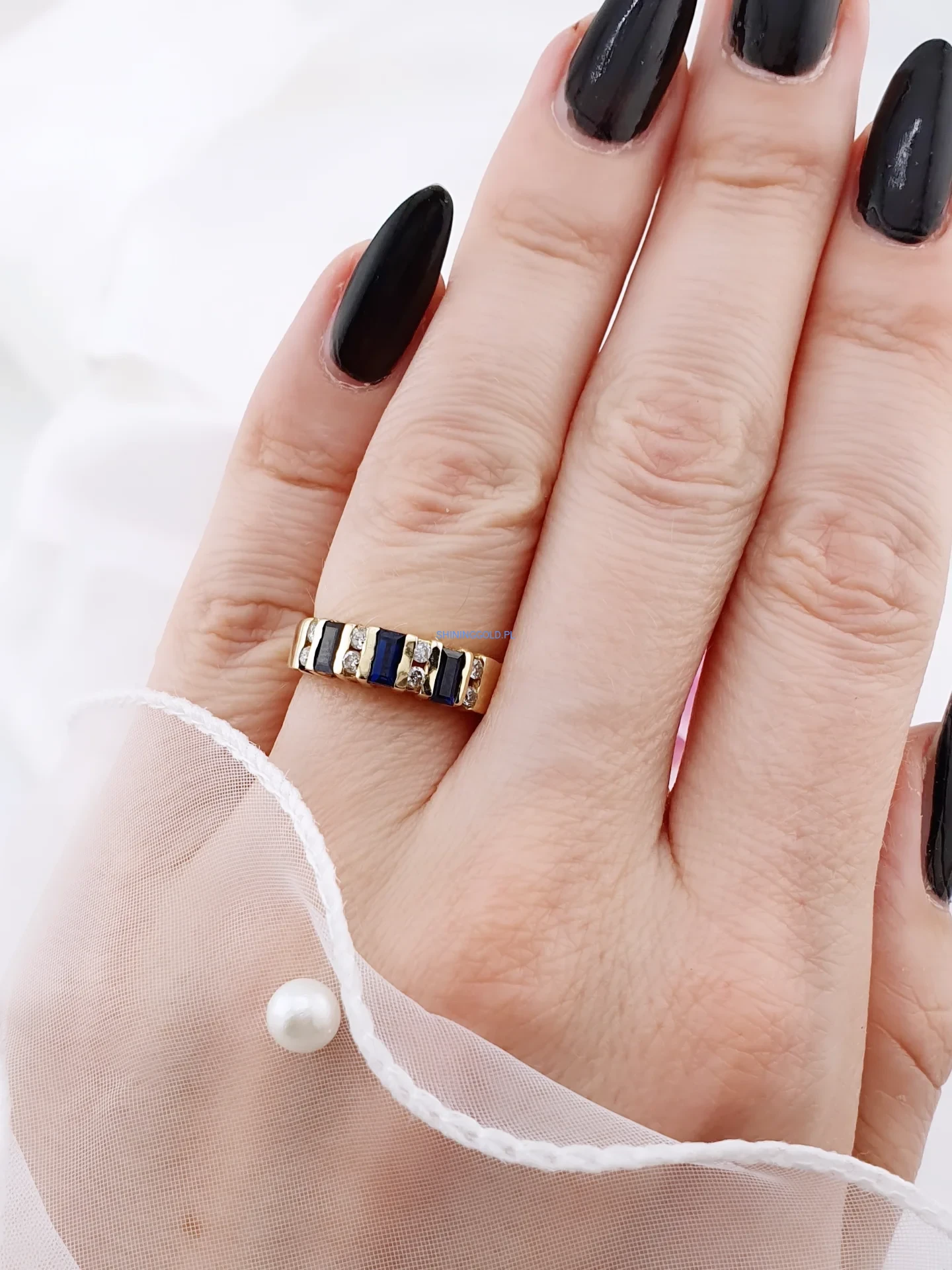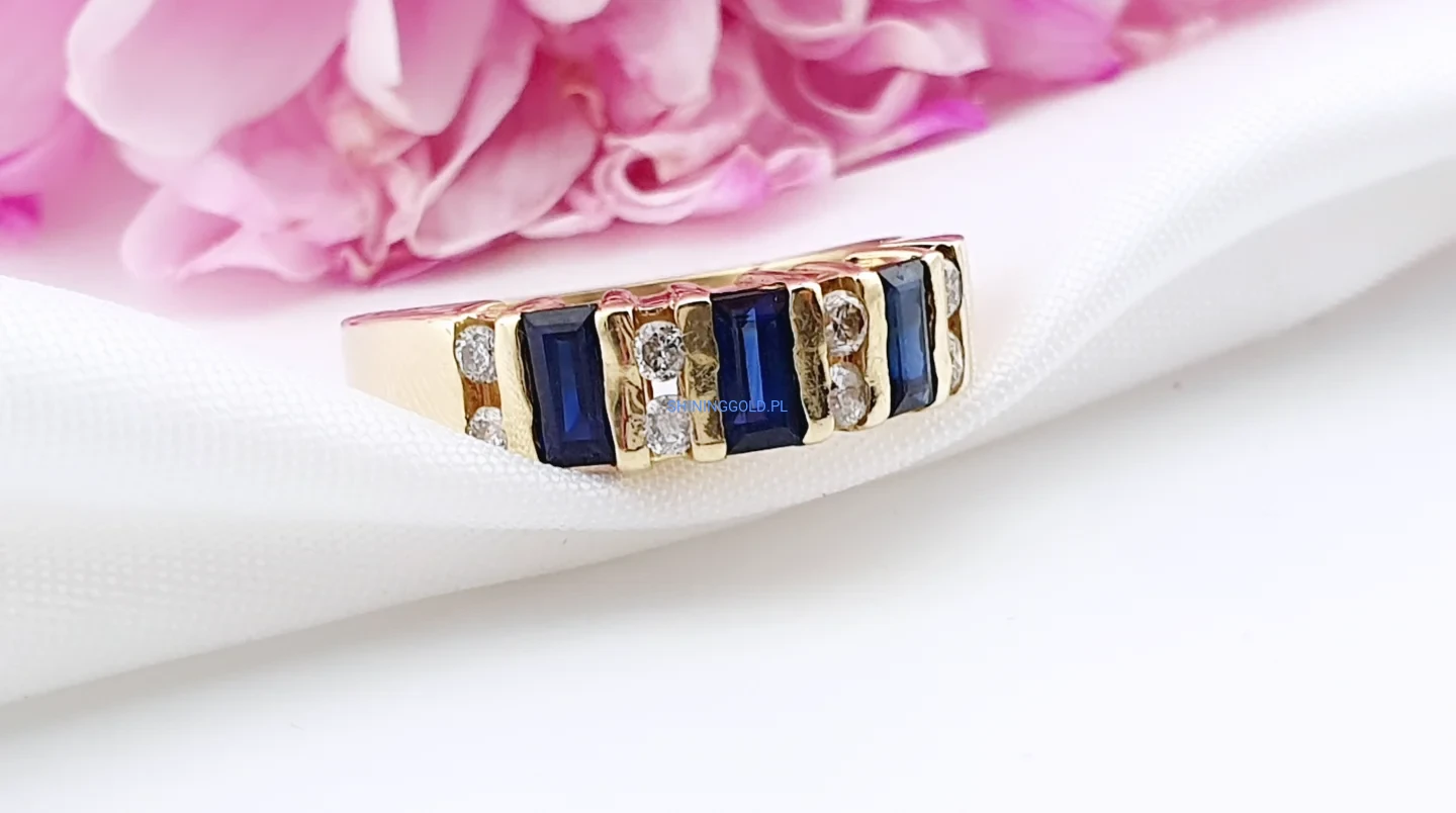 Złoty pierścionek z Diamentami i Szafirami (1060ws)