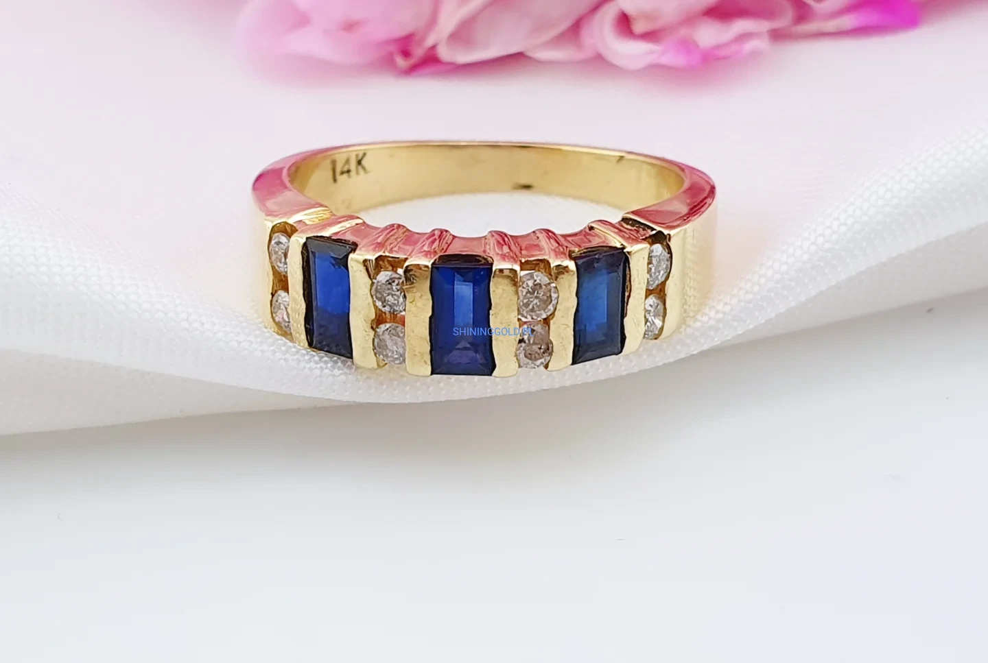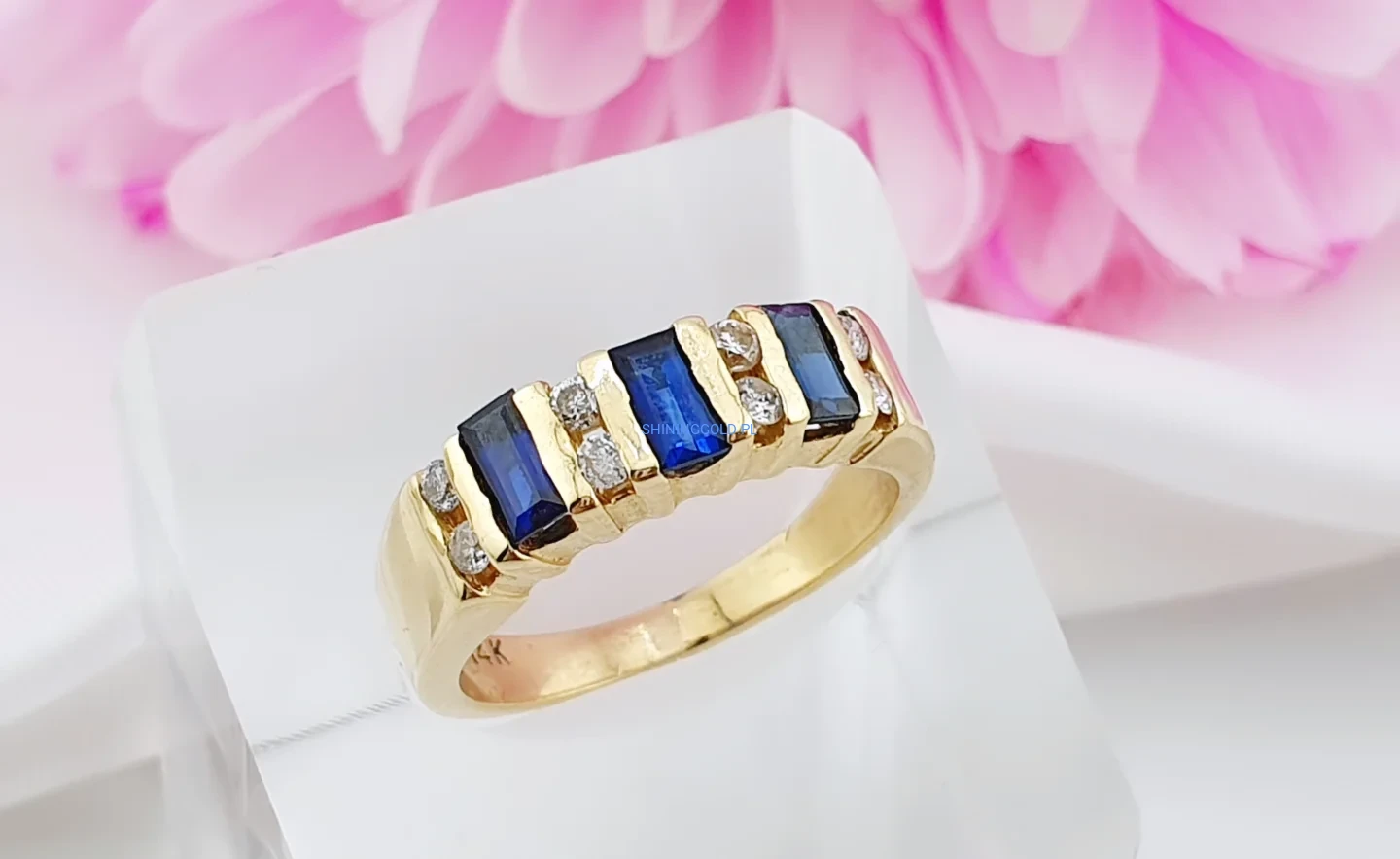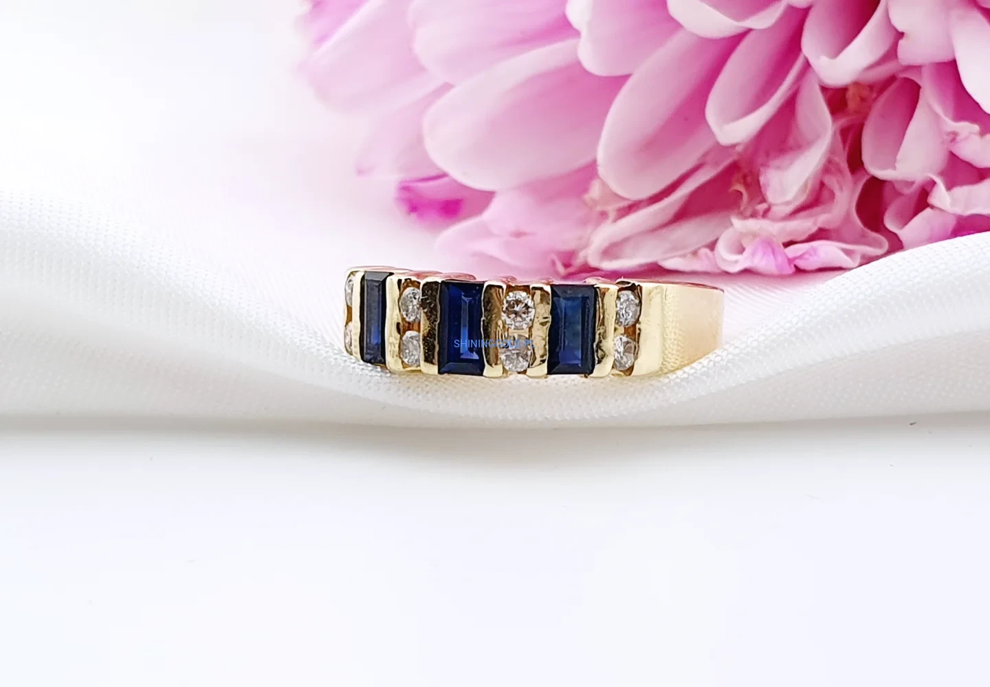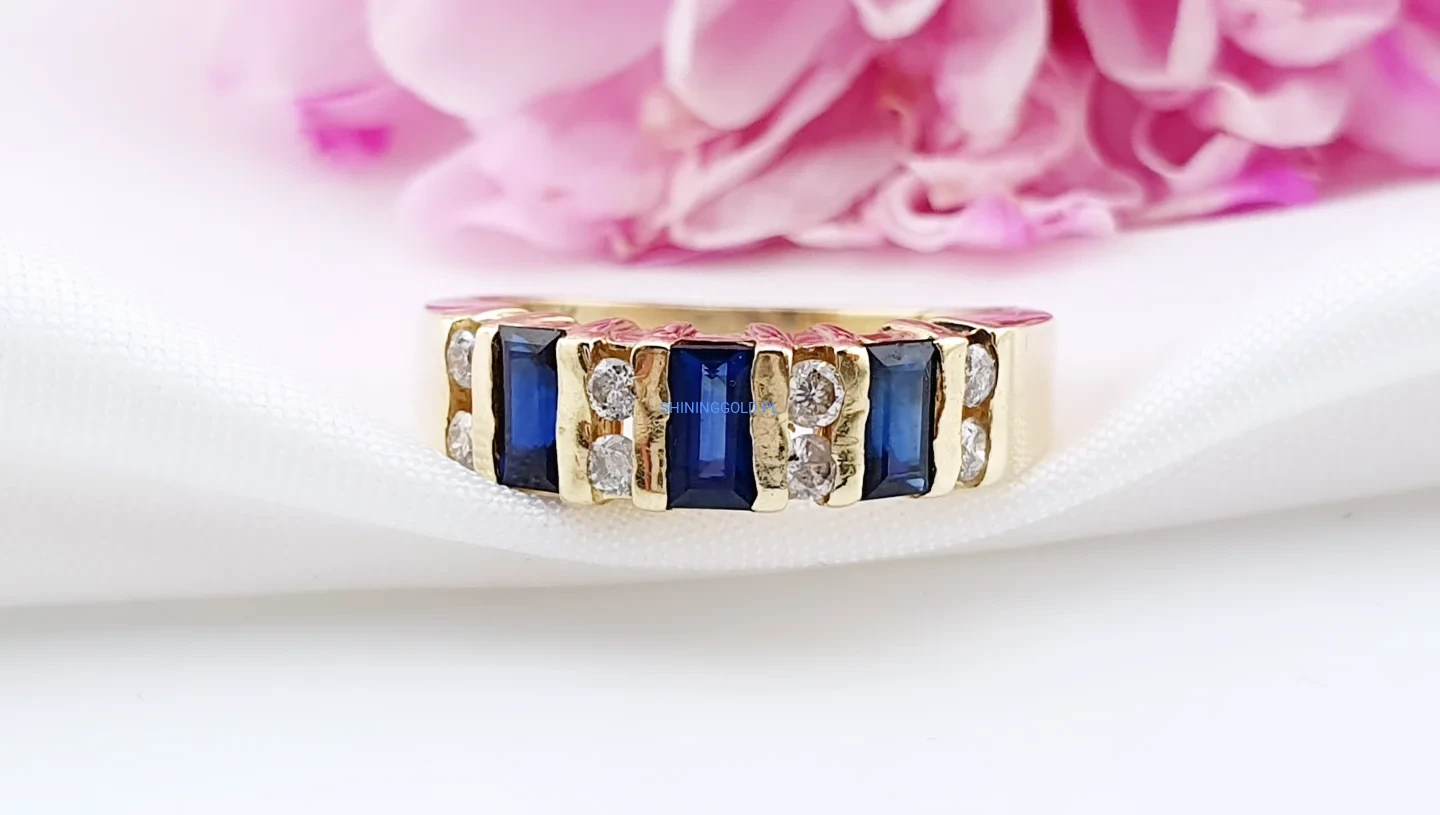 Złoty pierścionek z Diamentami i Szafirami (1060ws)
