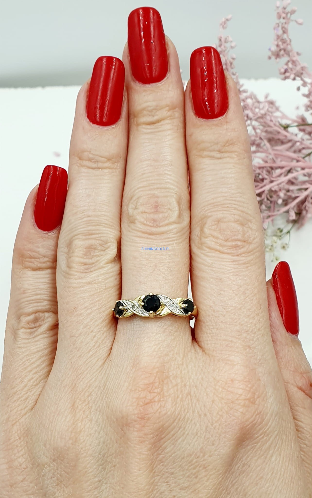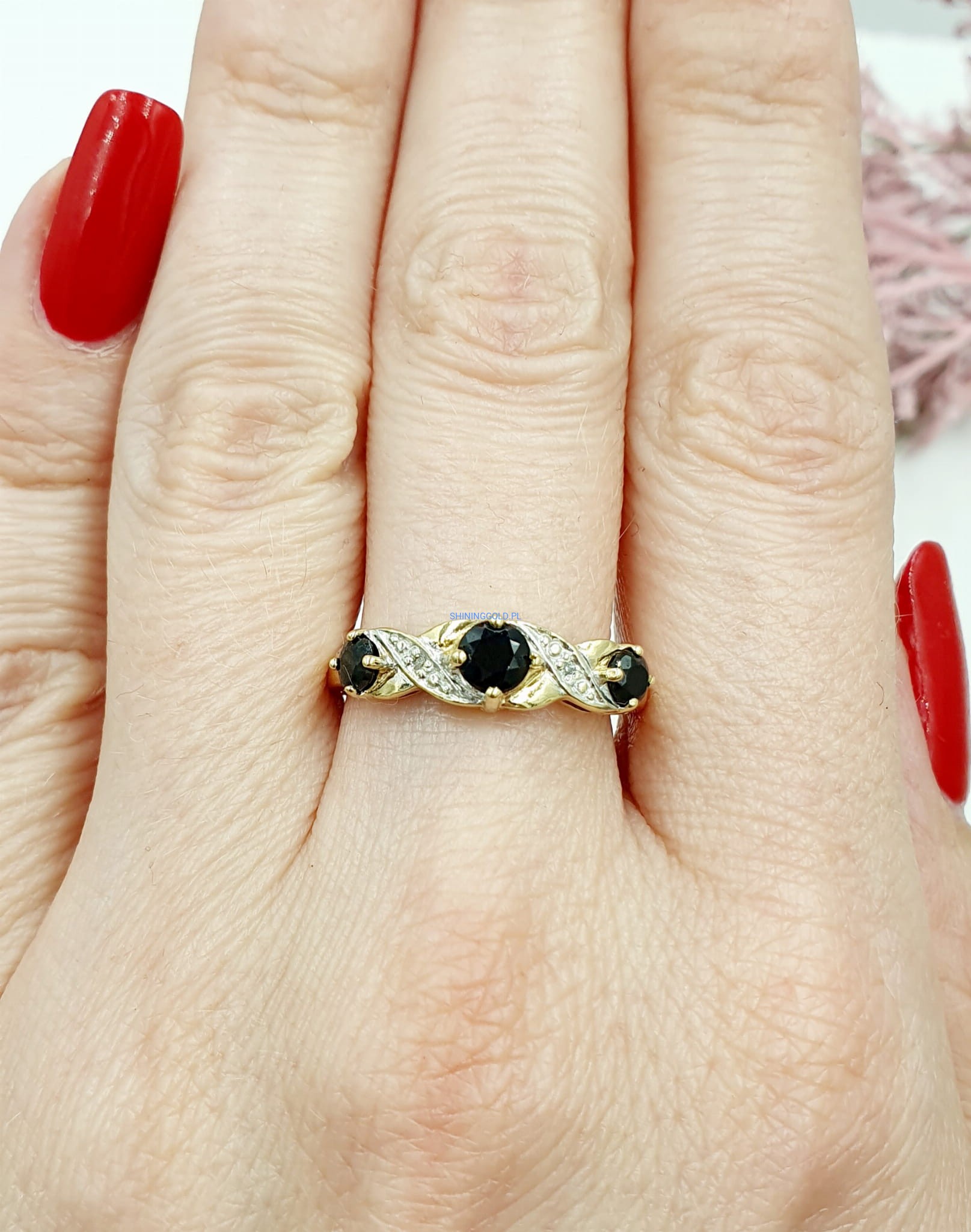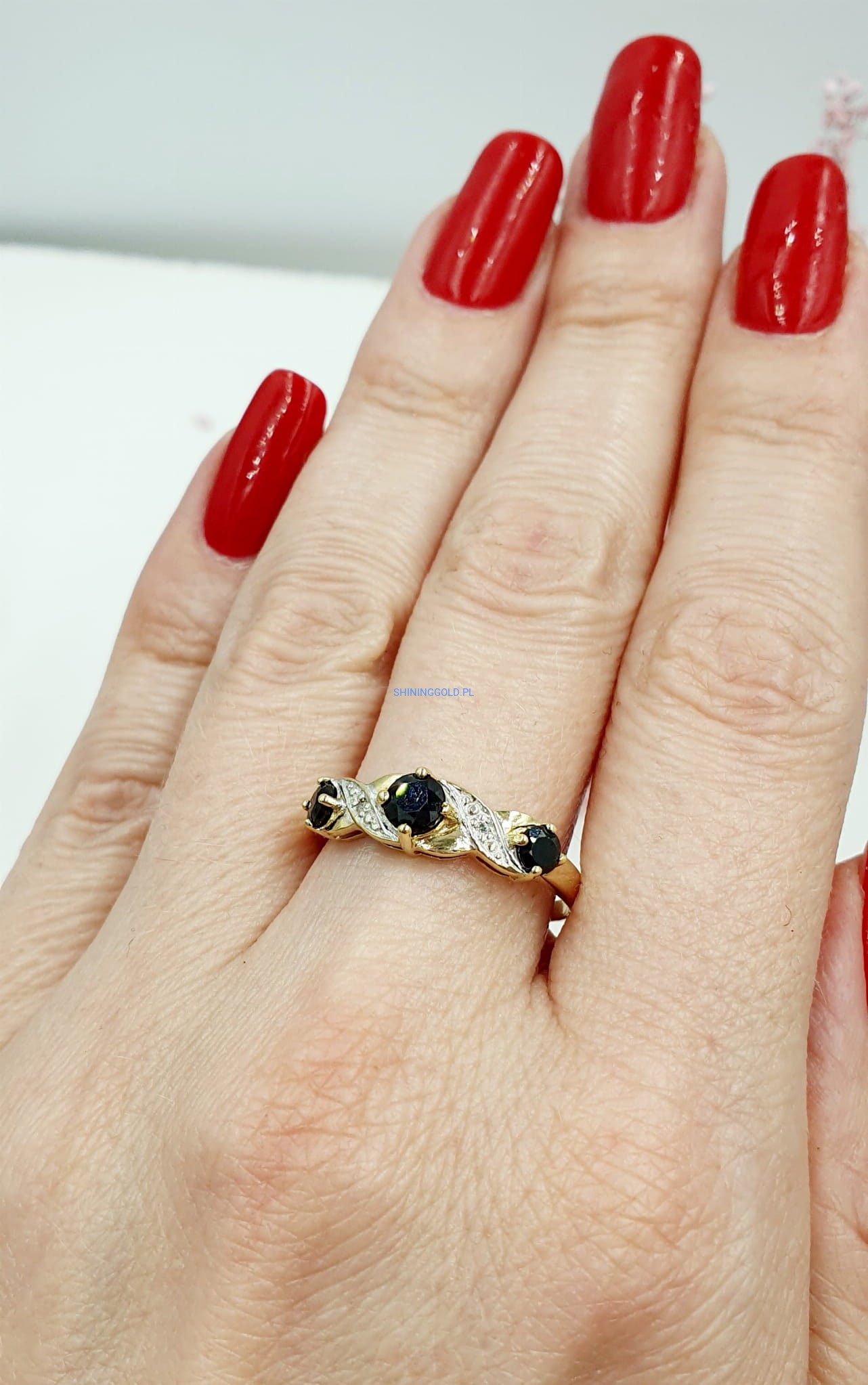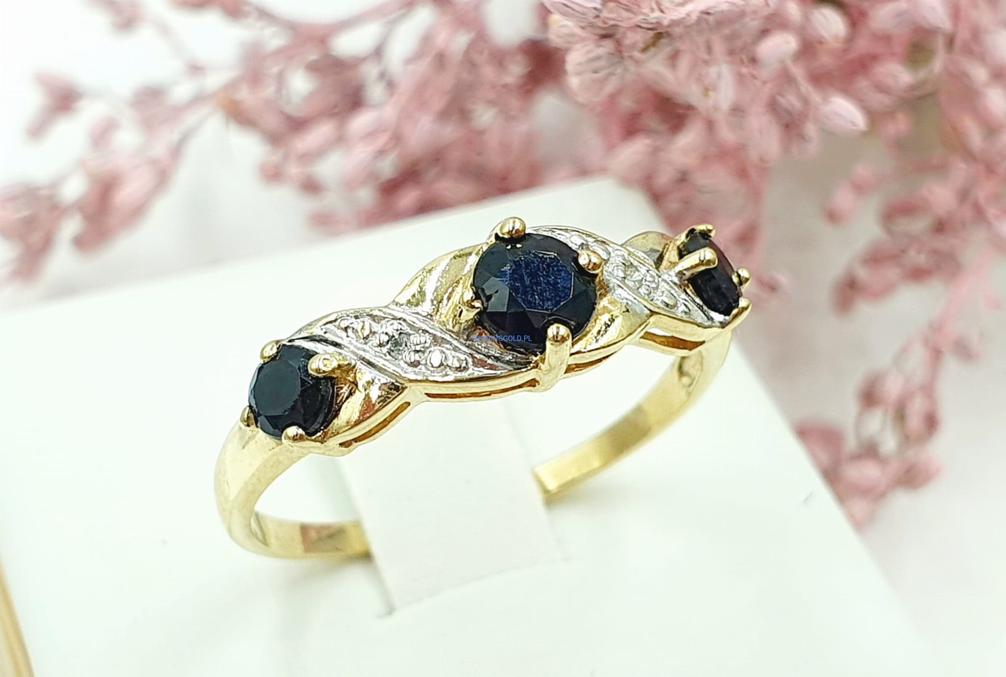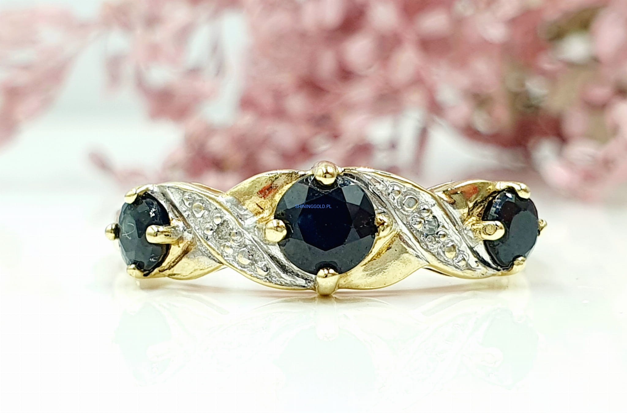Przedstawiamy wyjątkowy złoty pierścionek, który łączy w sobie głębię niebieskich szafirów i subtelny blask diamentów. Wykonany z 9-karatowego złota (próba 375), ten pierścionek jest idealnym wyborem dla osób ceniących sobie klasyczne piękno i elegancję.