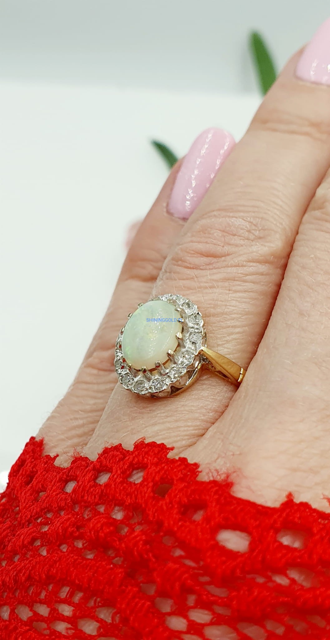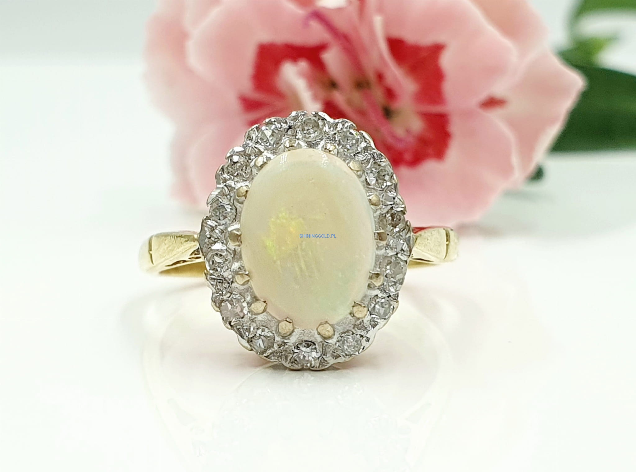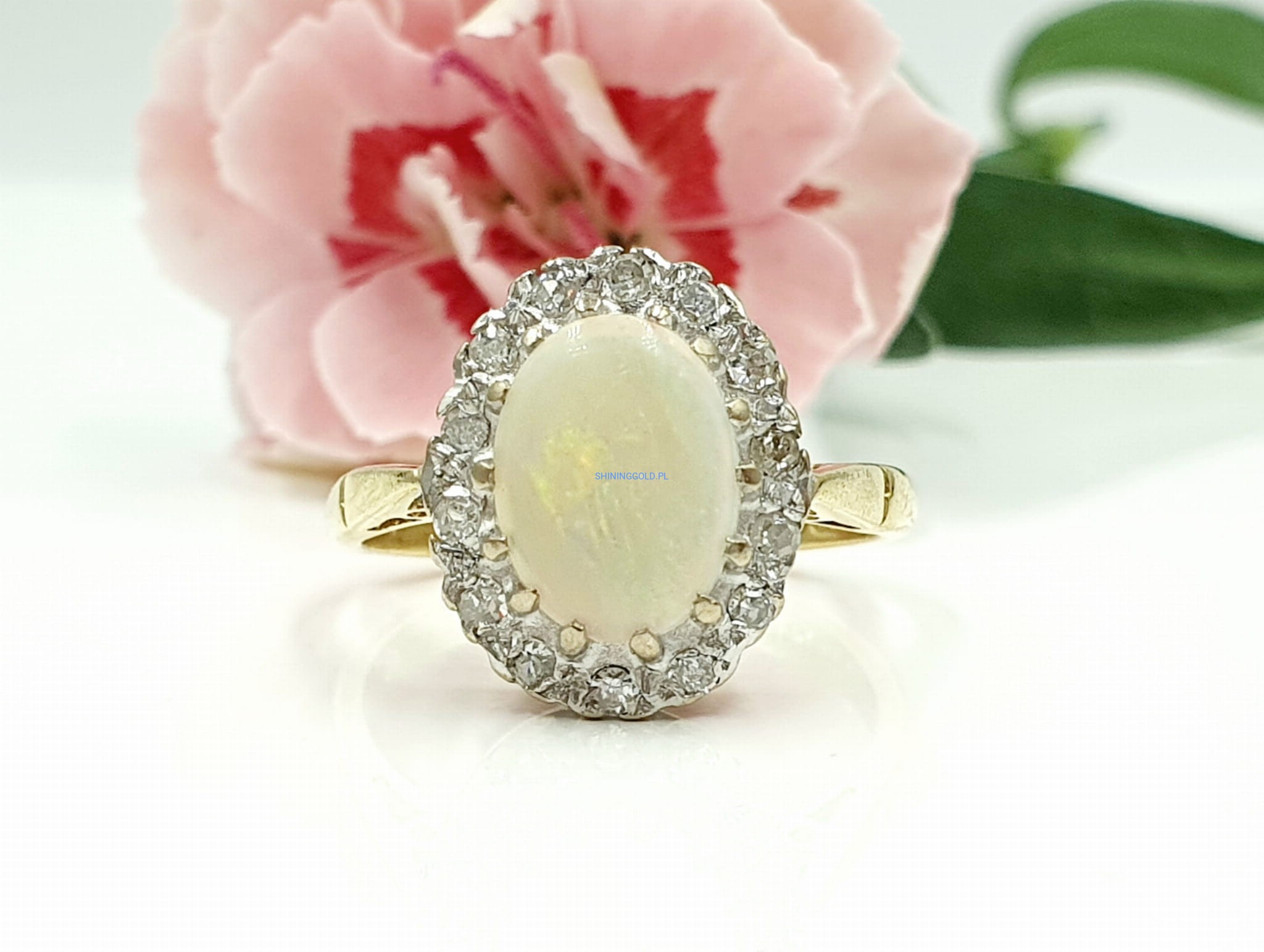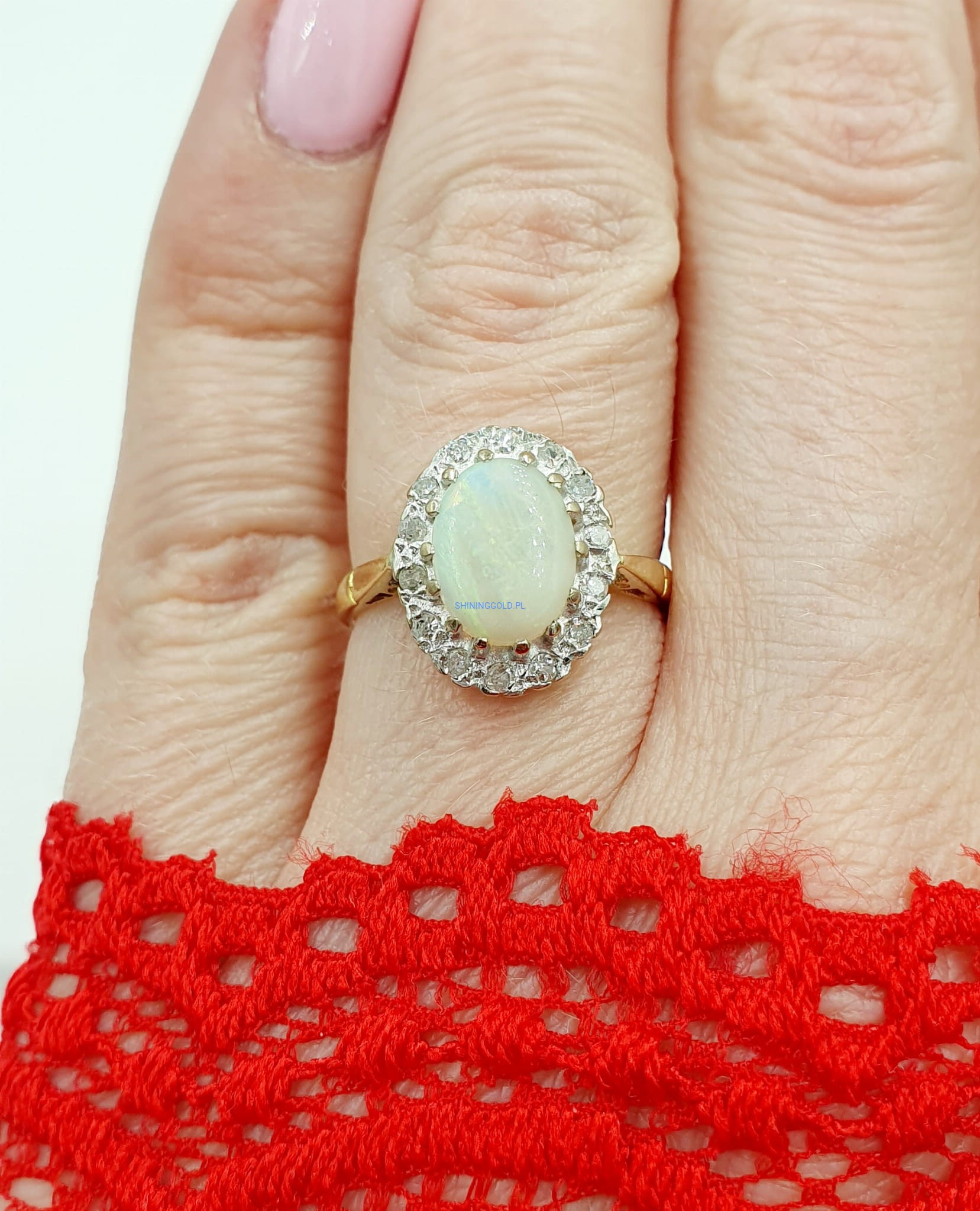Złoty pierścionek z Opalem i Diamentami (1048.WS)