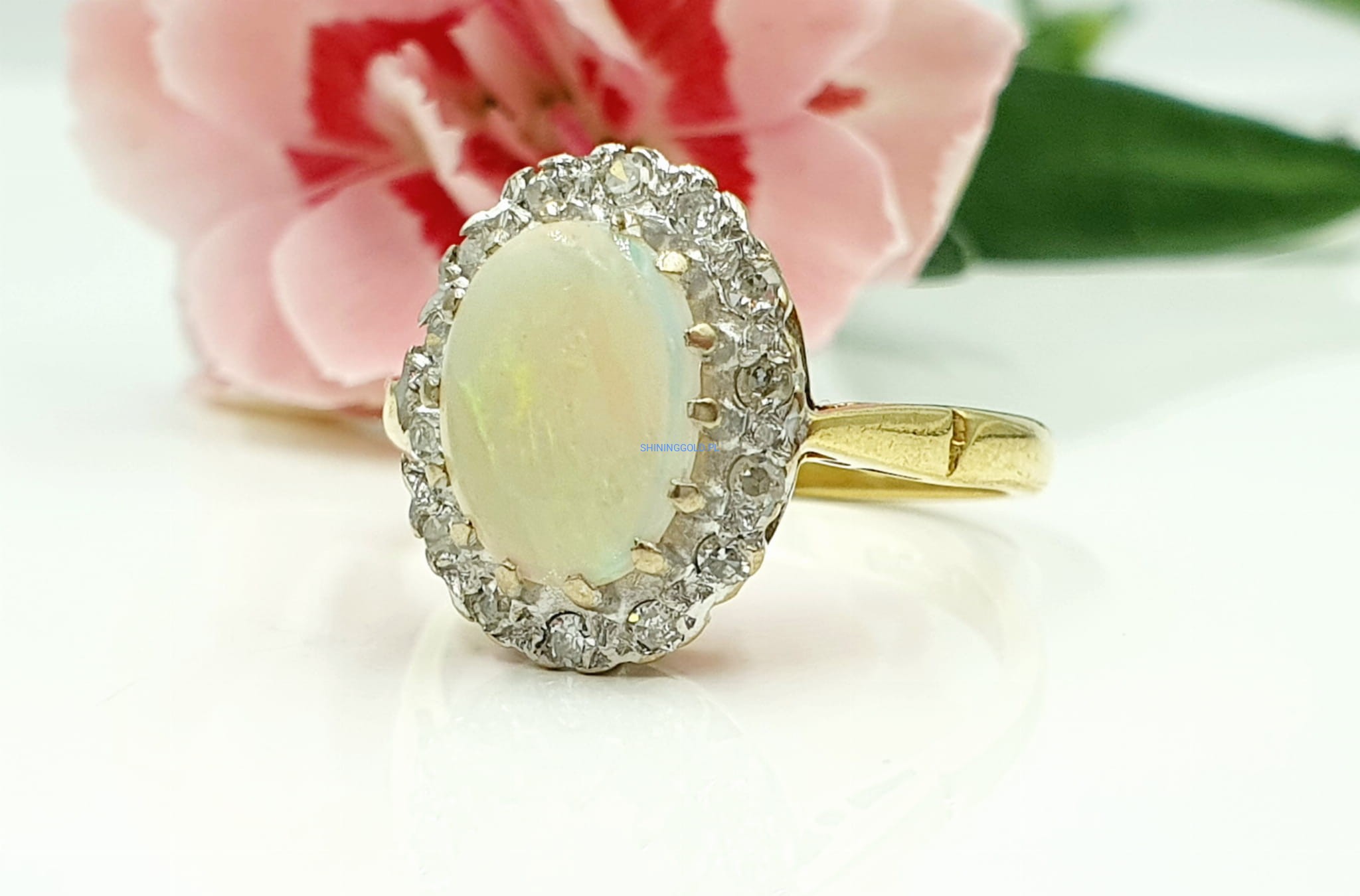 - Elegancki design z wyjątkowym opalem i lśniącymi diamentami.