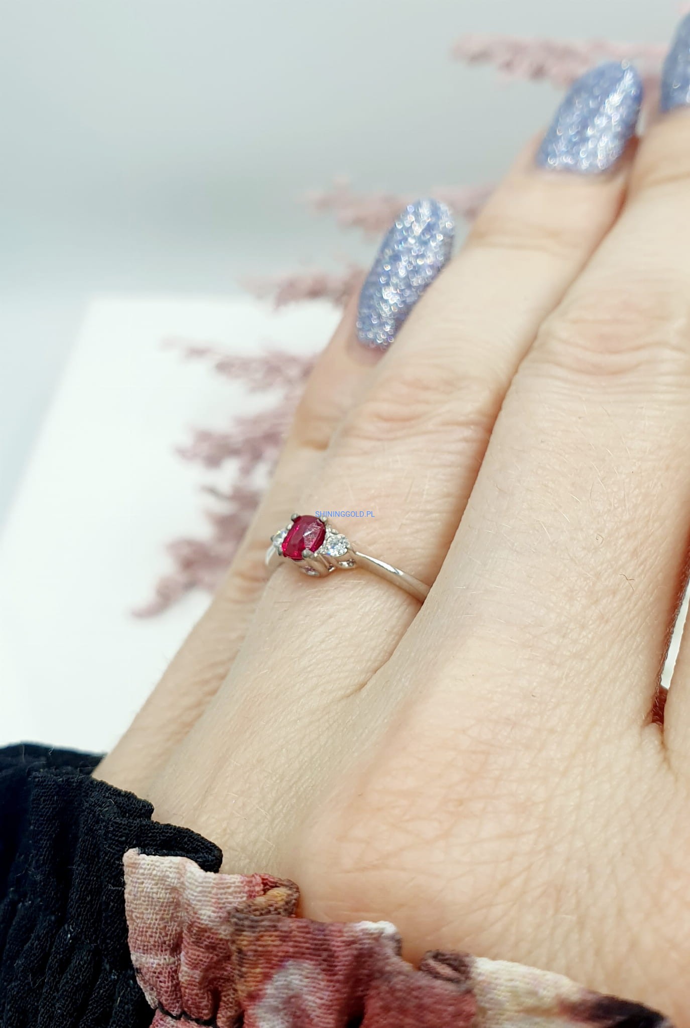 Złoty pierścionek z Rubinem i Diamentami (1080.WS)