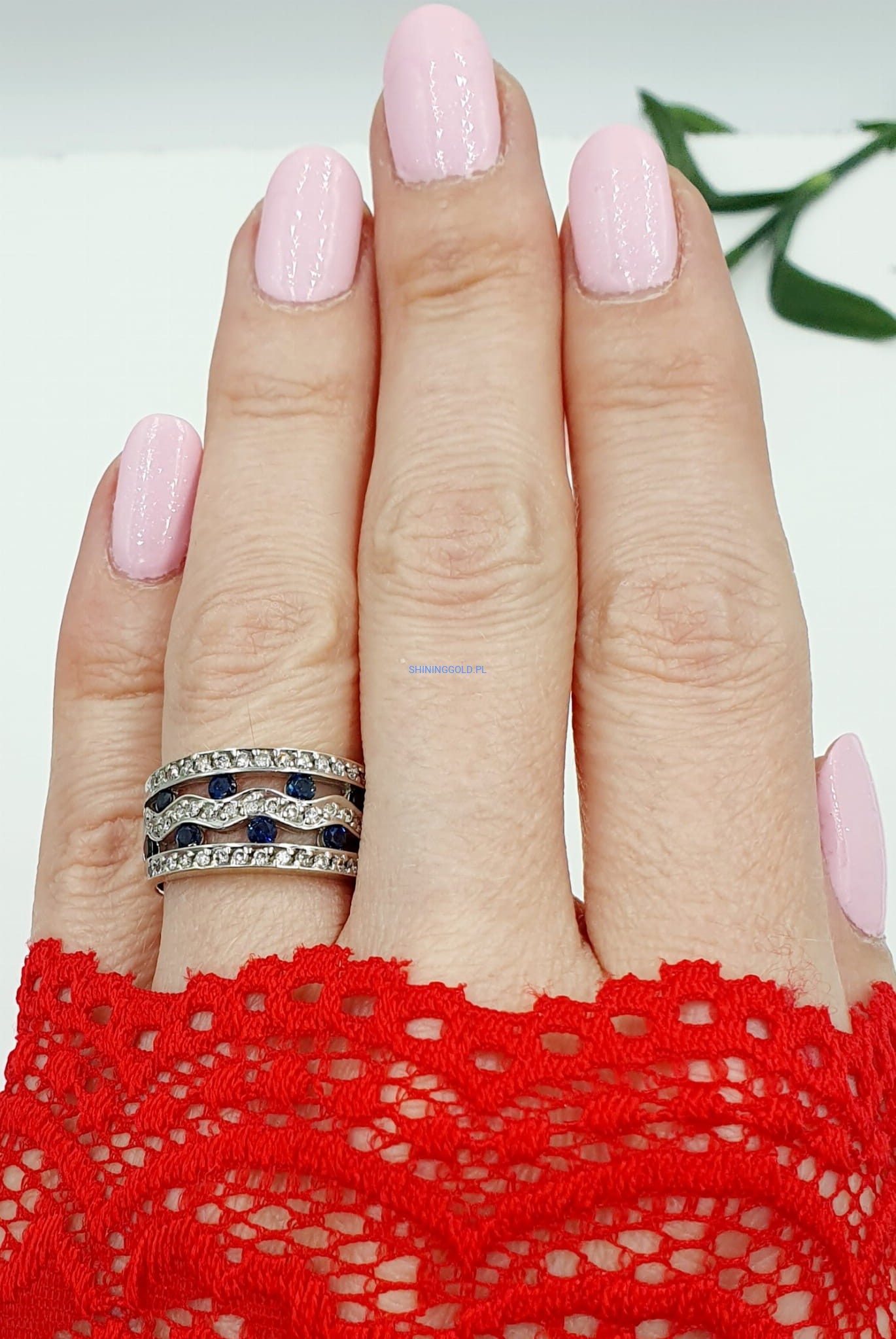 Złoty pierścionek z Szafirami i Diamentami (1050.WS)