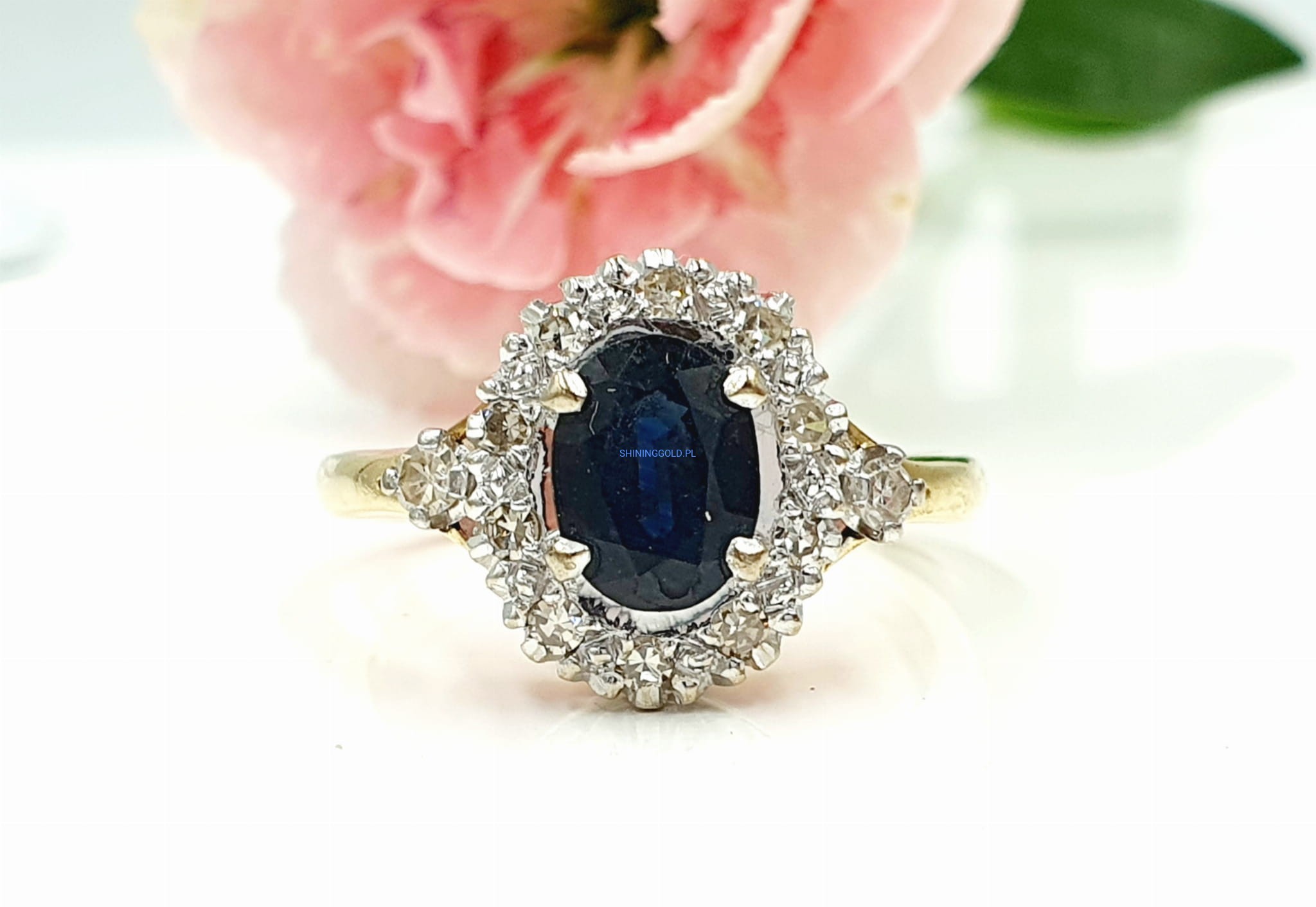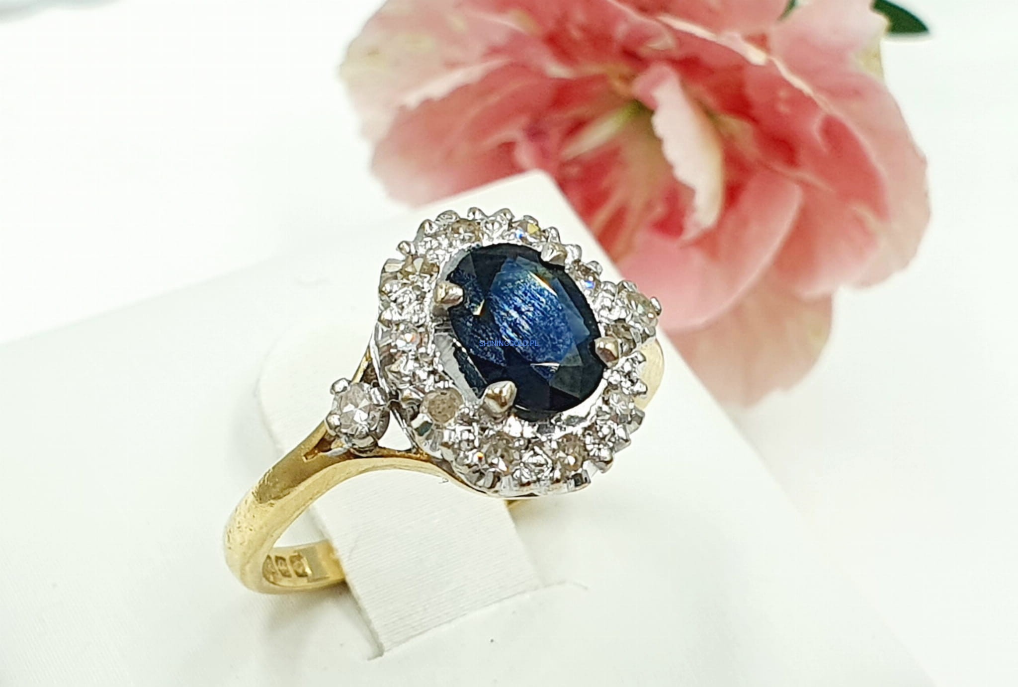 Złoty pierścionek z Szafirem i Diamentami (1064.WS)