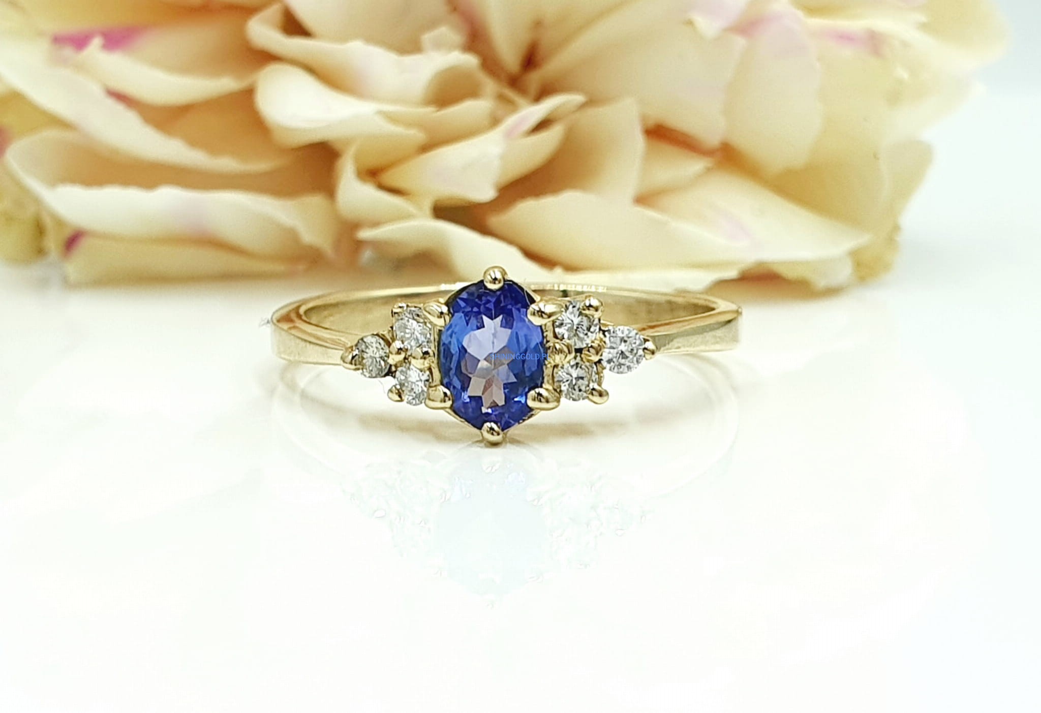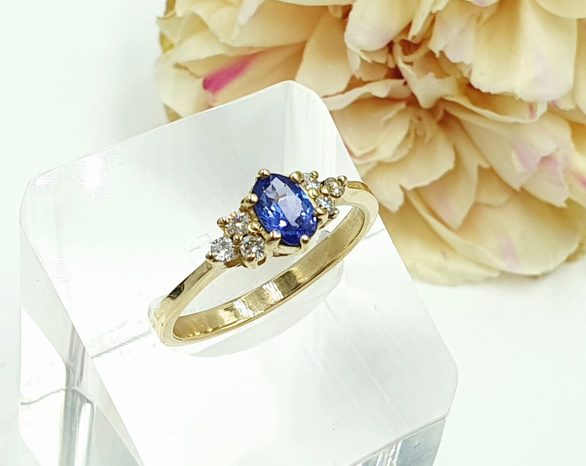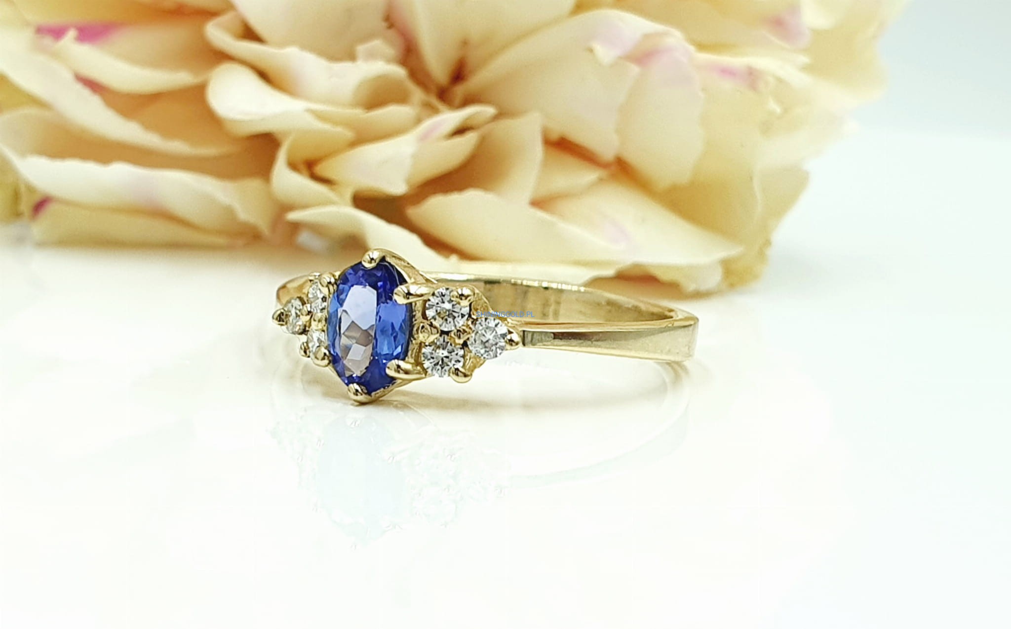 Złoty pierścionek z Tanzanitem i Diamentami (1106WS)