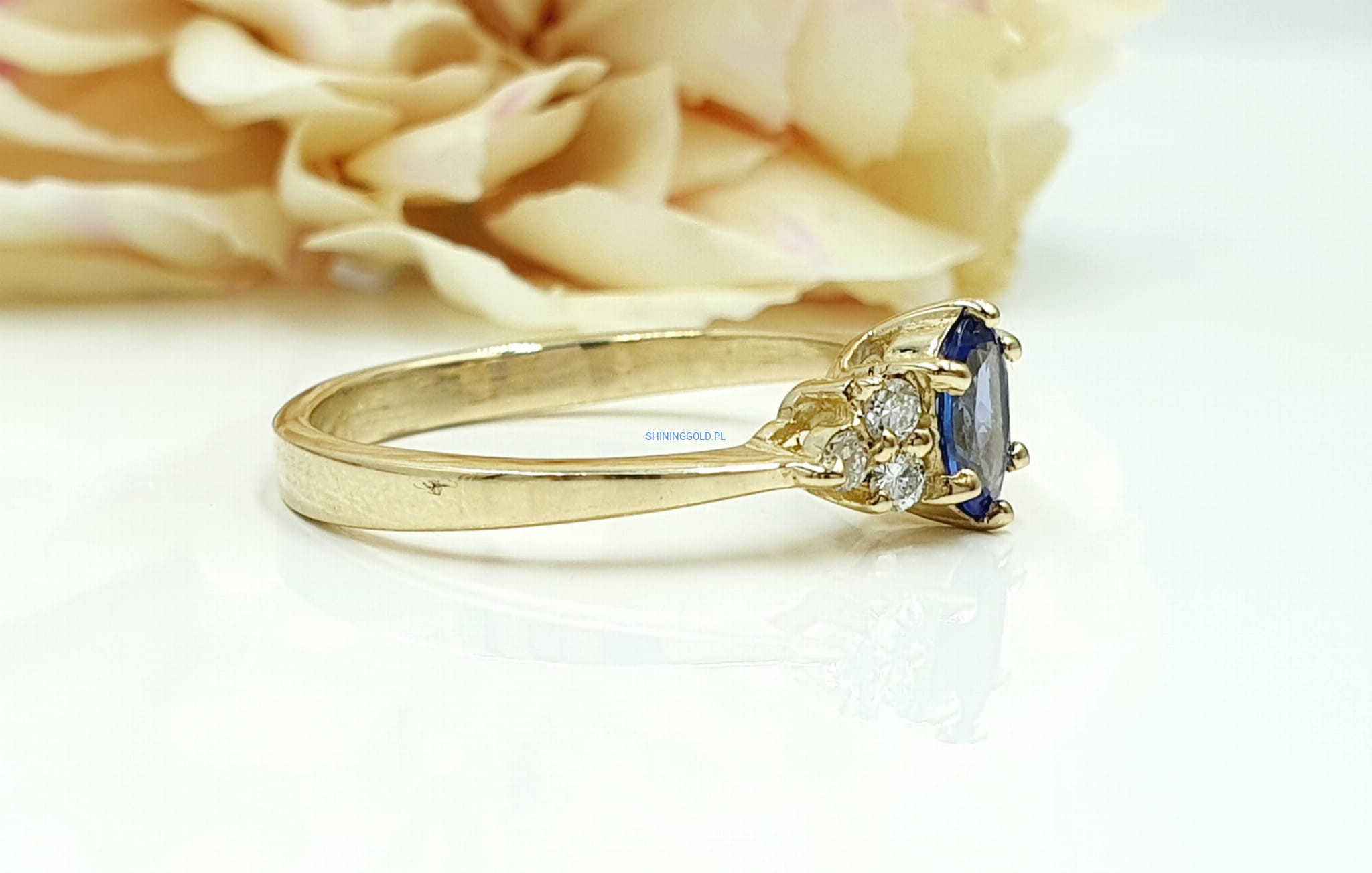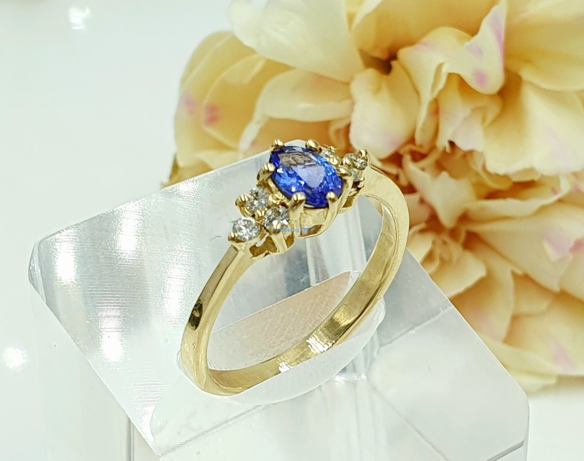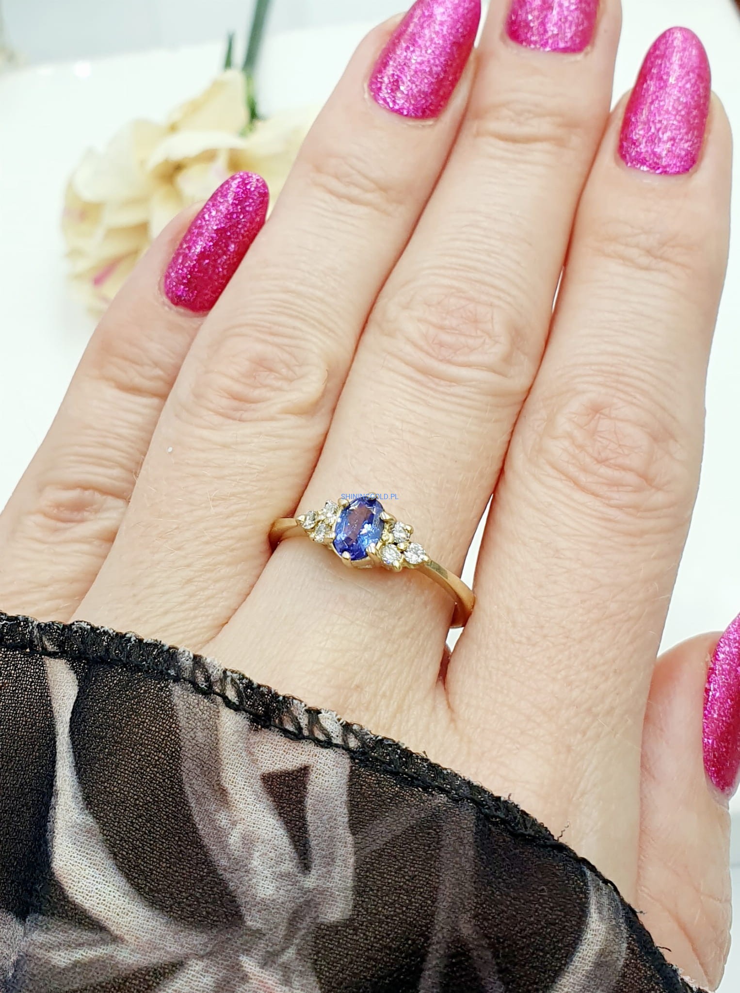 Złoty pierścionek z Tanzanitem i Diamentami (1106WS)