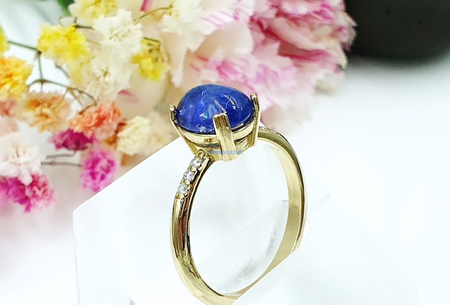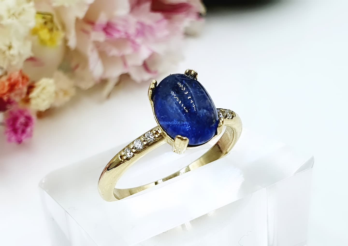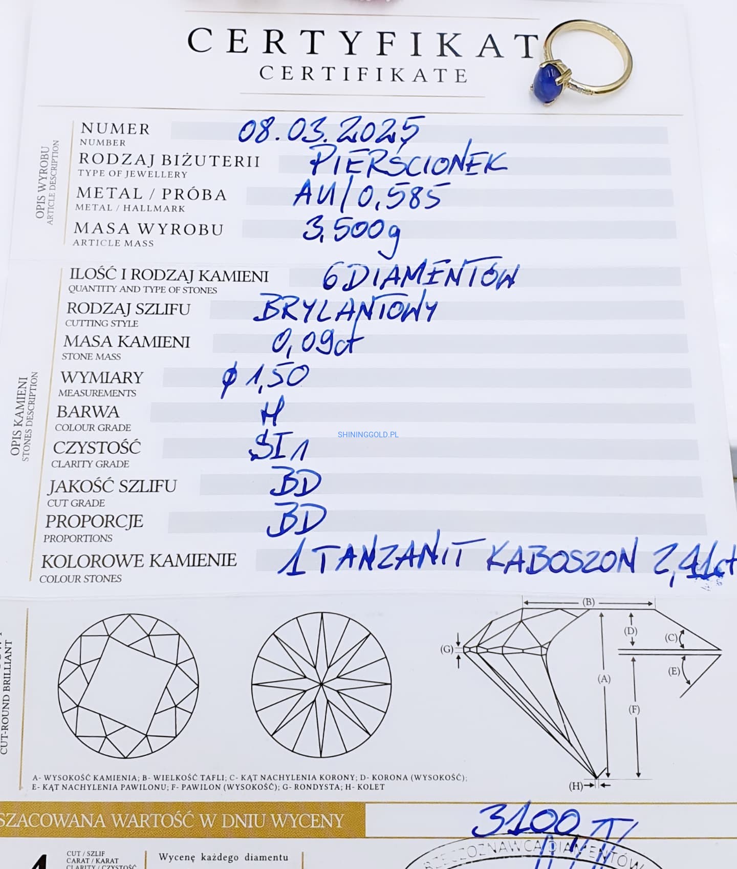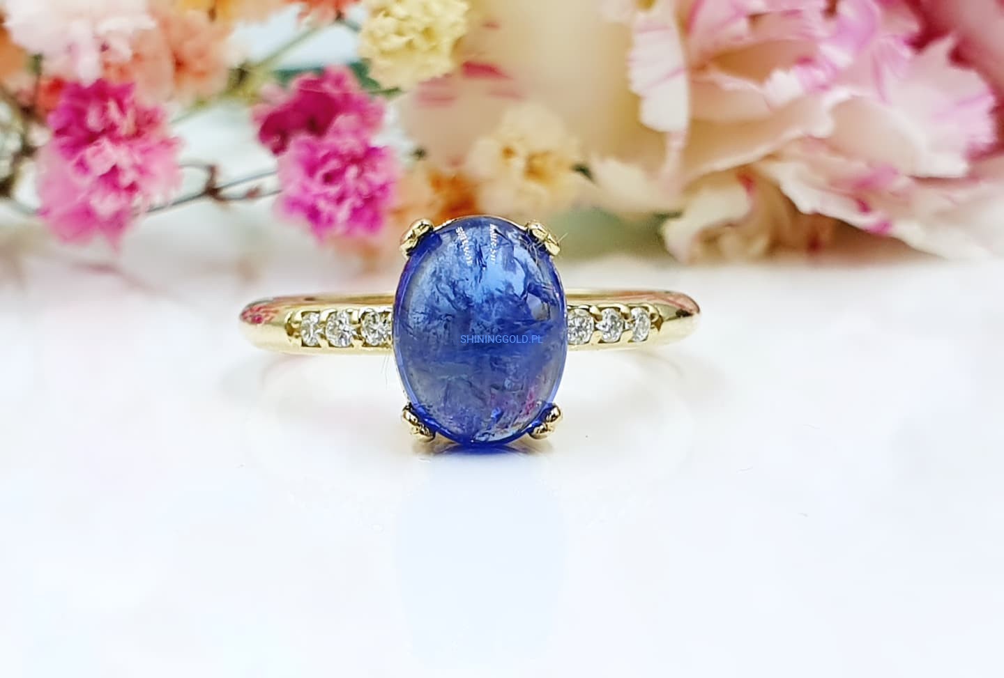 Złoty pierścionek z Tanzanitem i Diamentami (1110.WS)