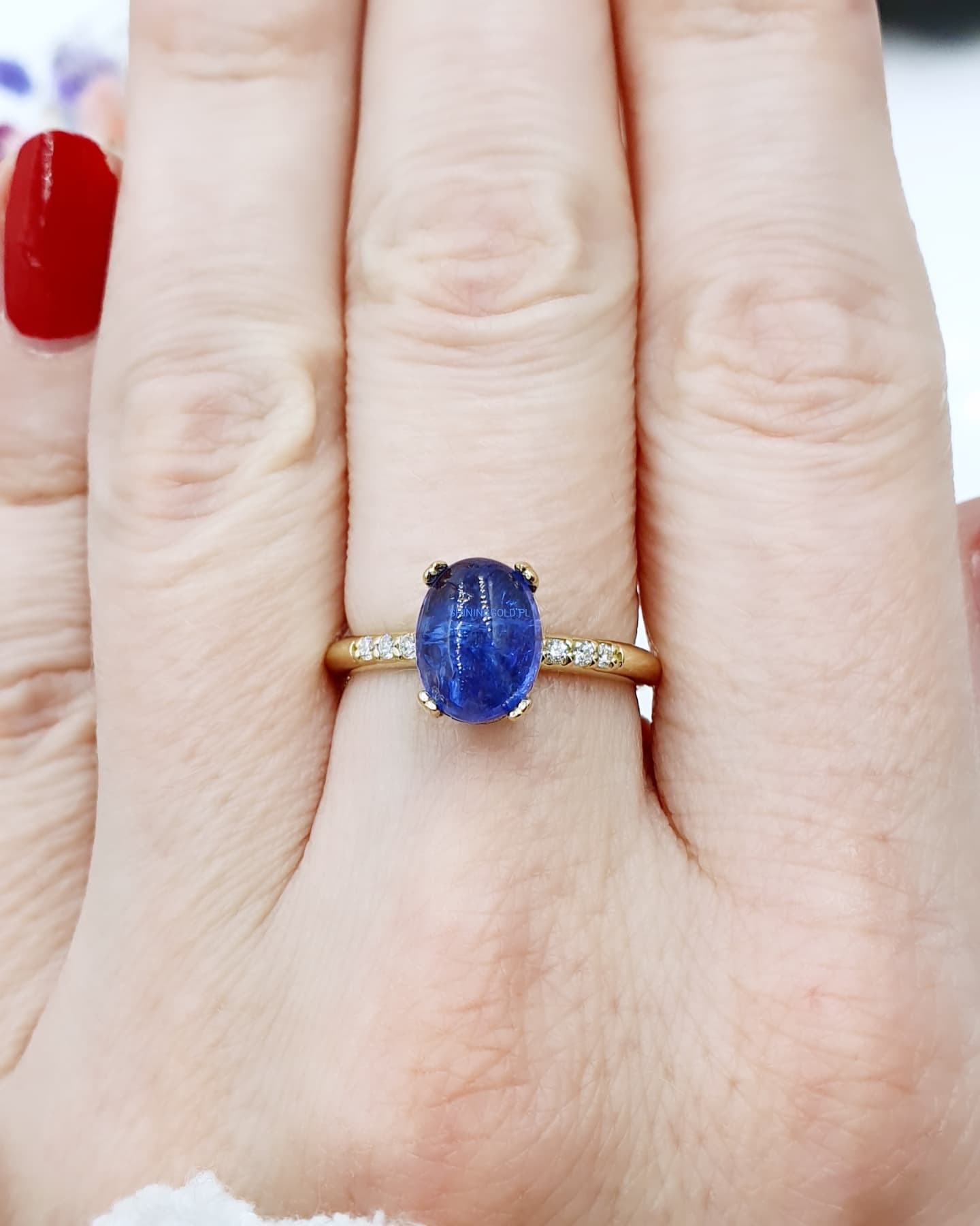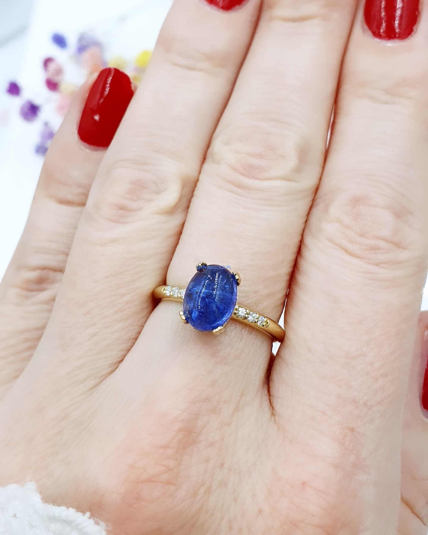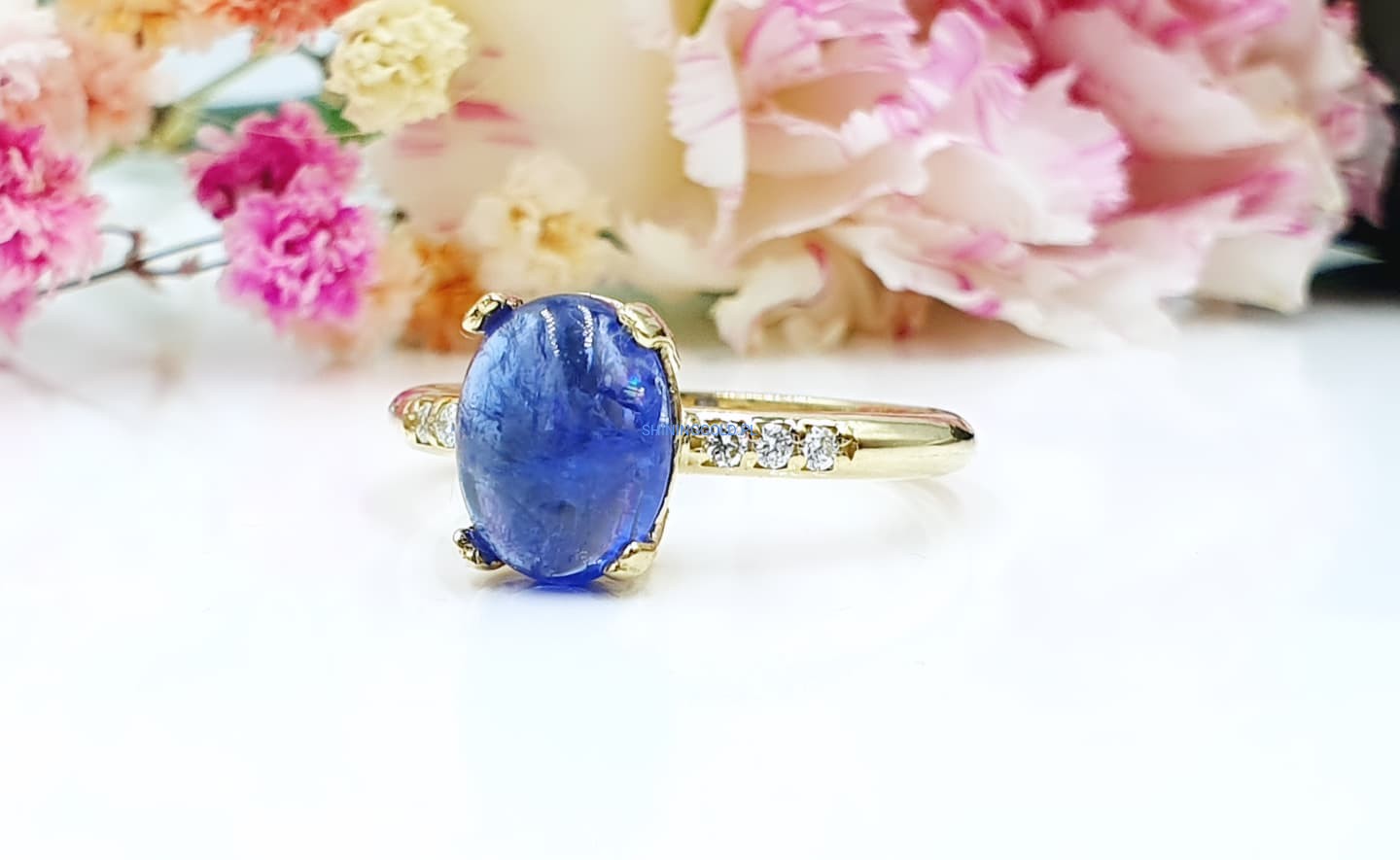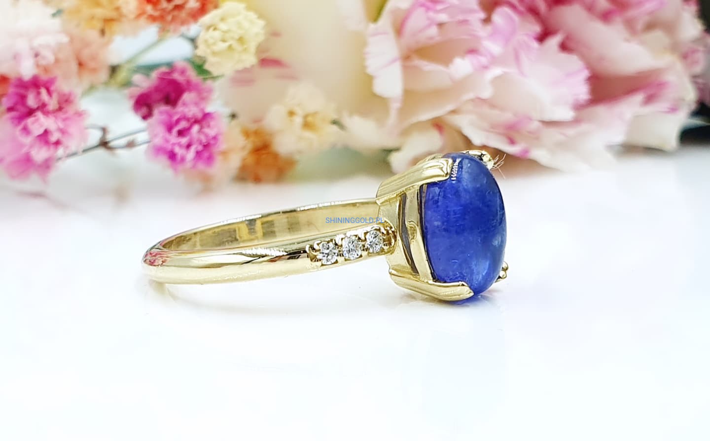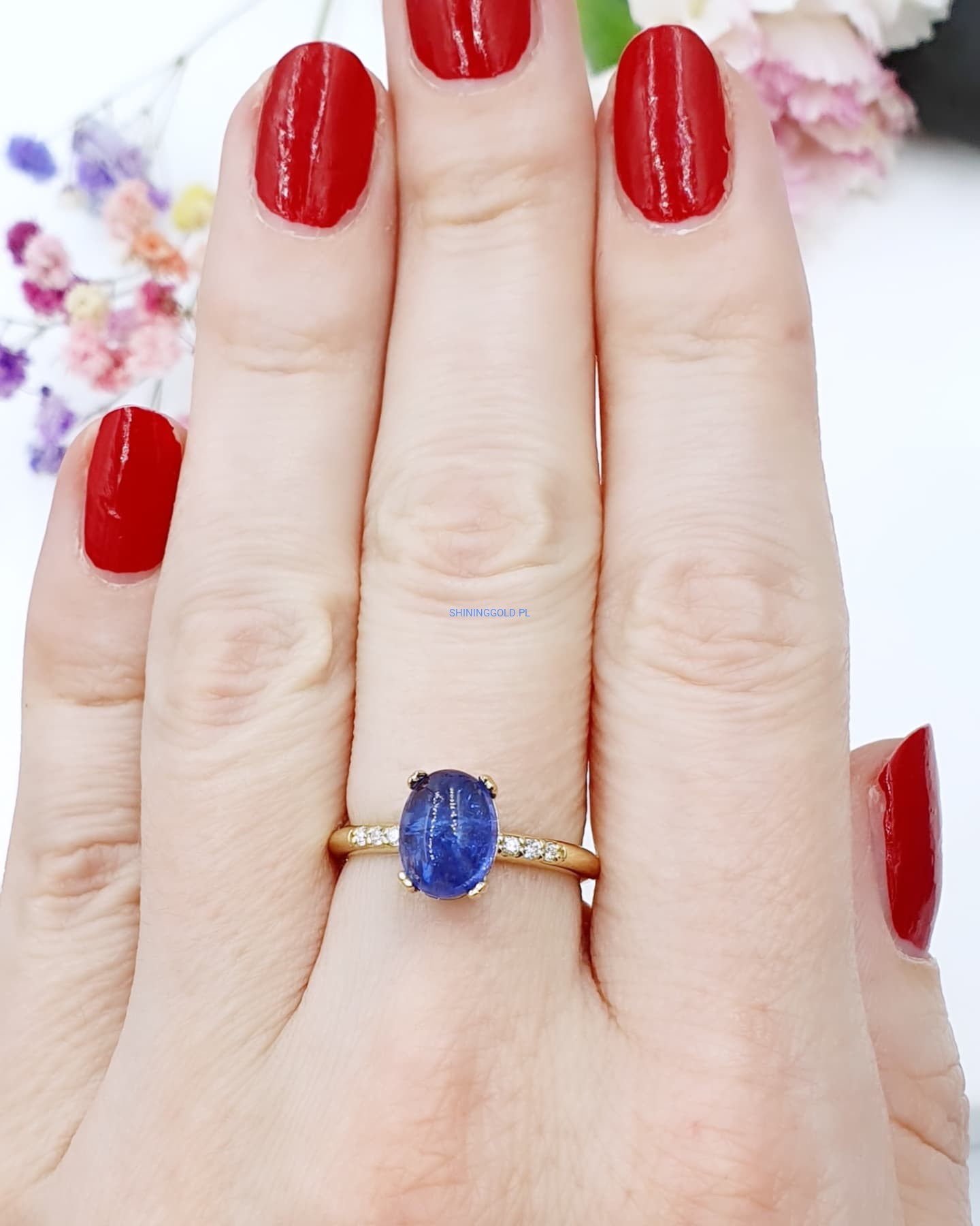 Złoty pierścionek z Tanzanitem i Diamentami (1110.WS)