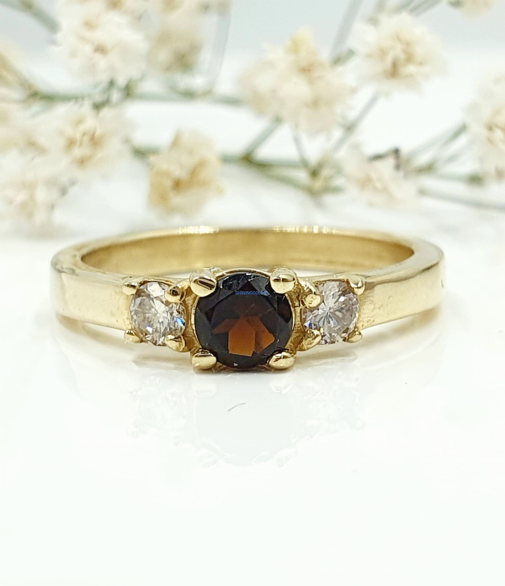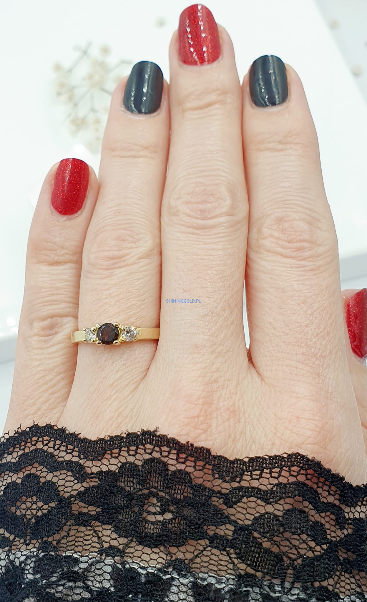 - Turmalin: Kamień o wyjątkowej barwie, stanowiący główny element pierścionka.