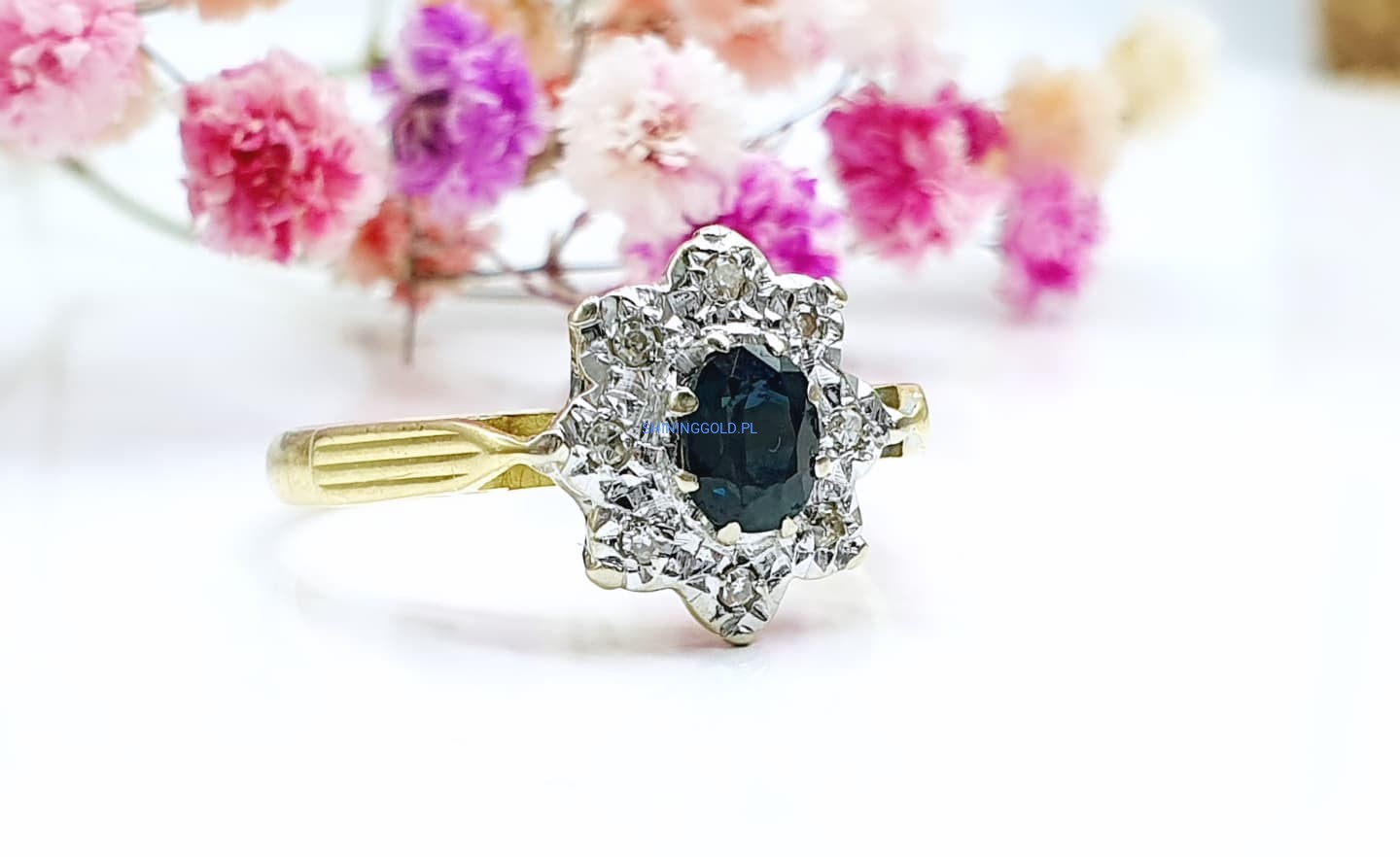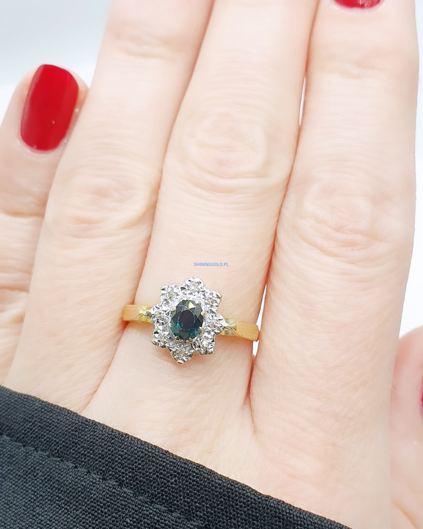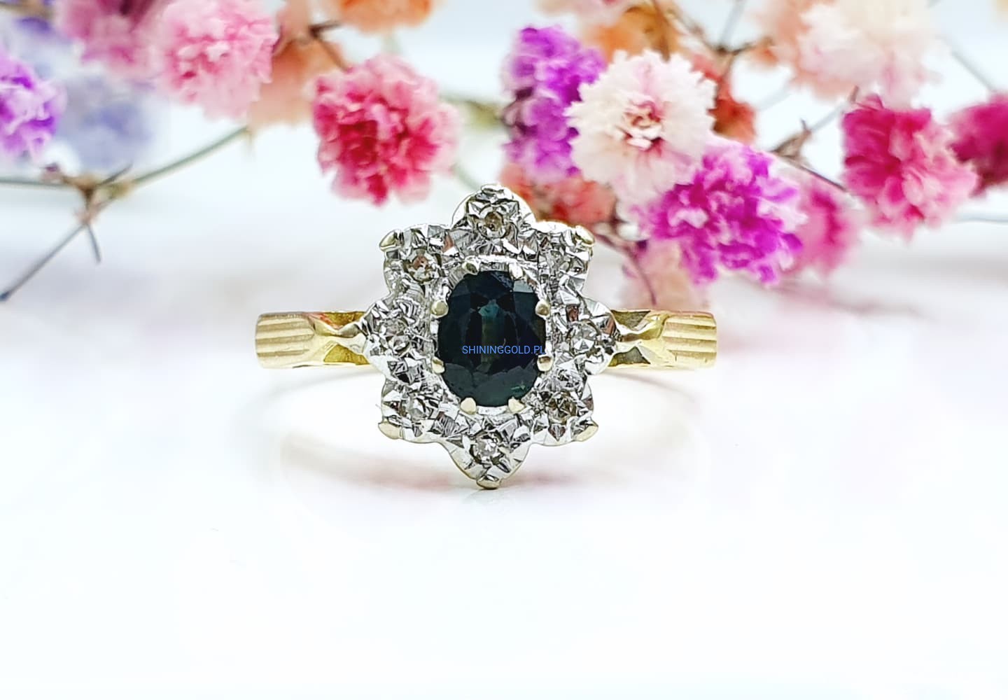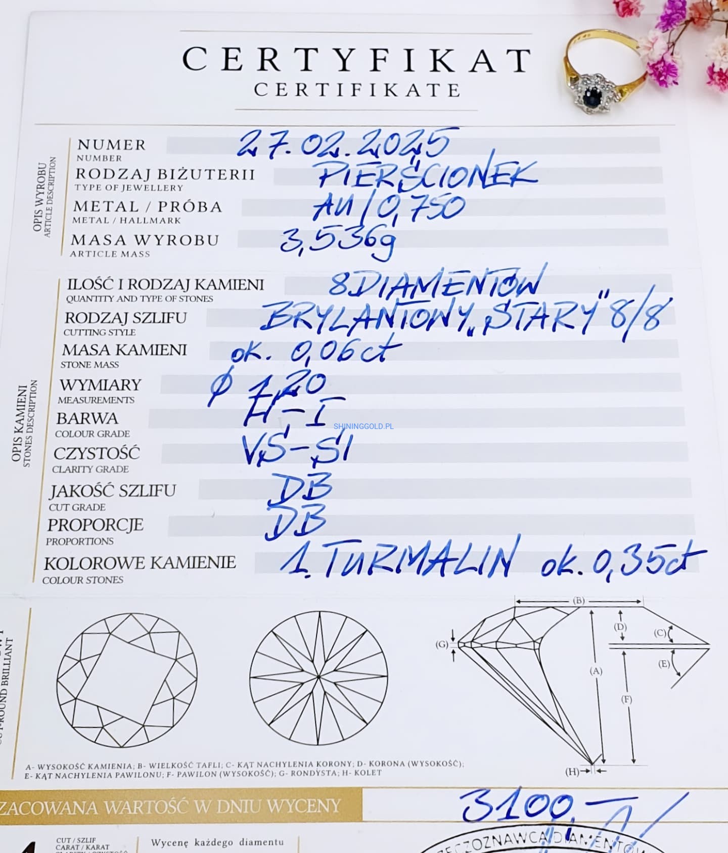 Złoty pierścionek z Turmalinem i Diamentami
