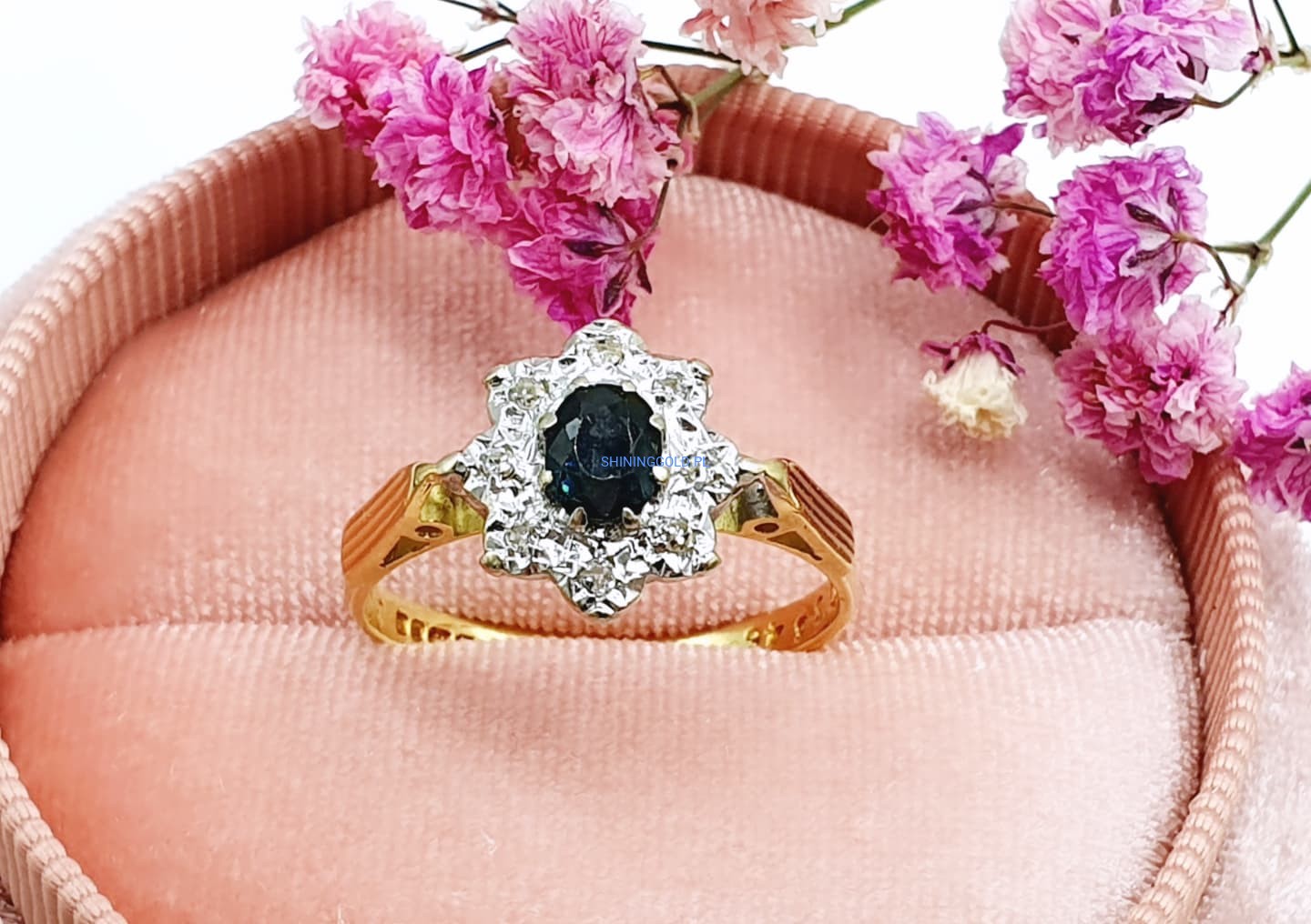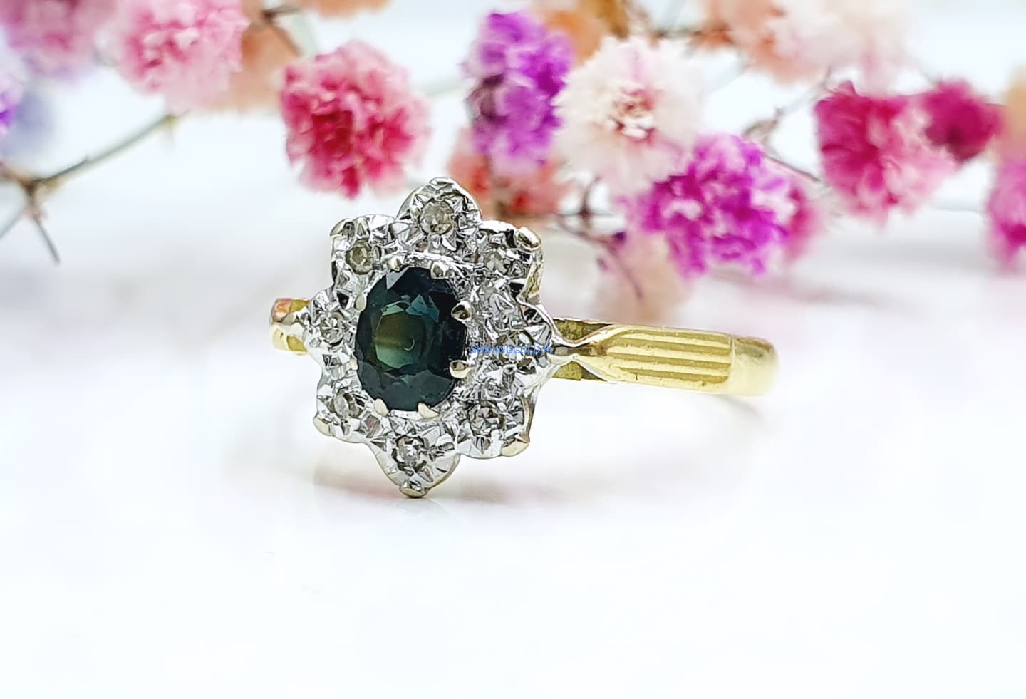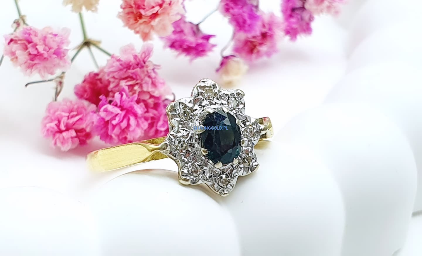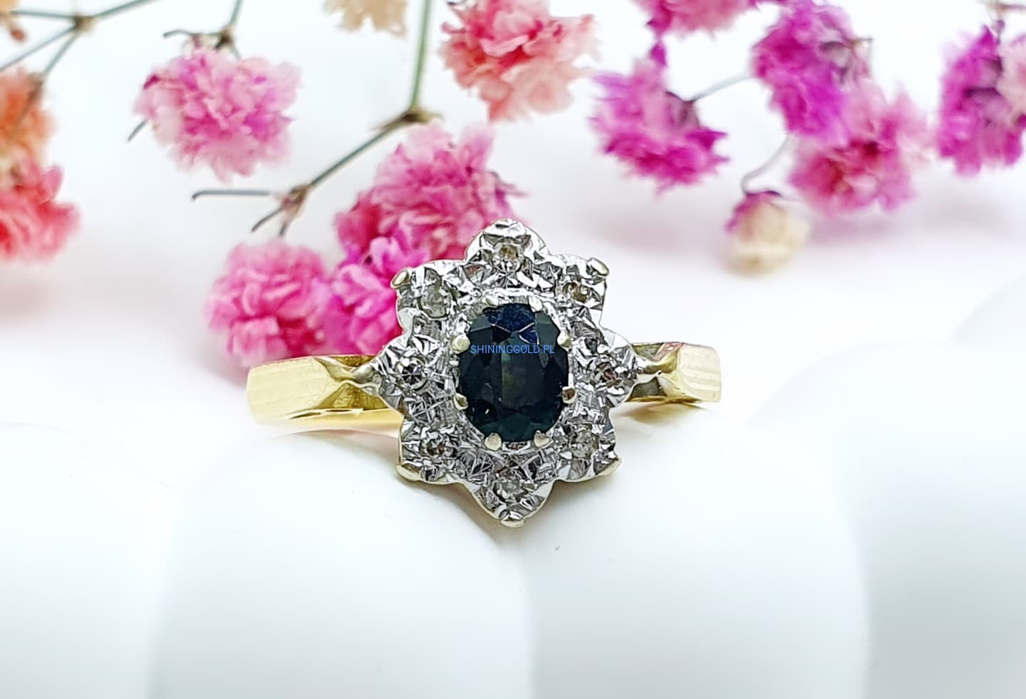 Złoty pierścionek z Turmalinem i Diamentami