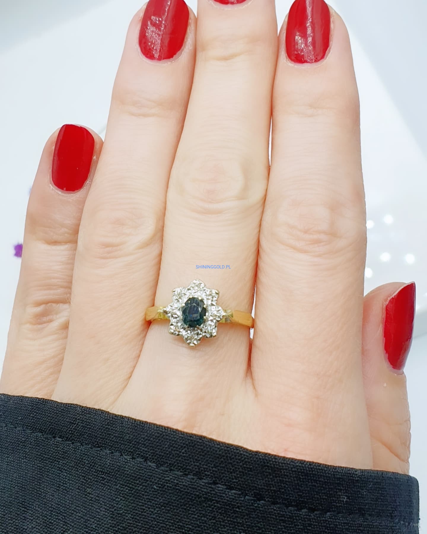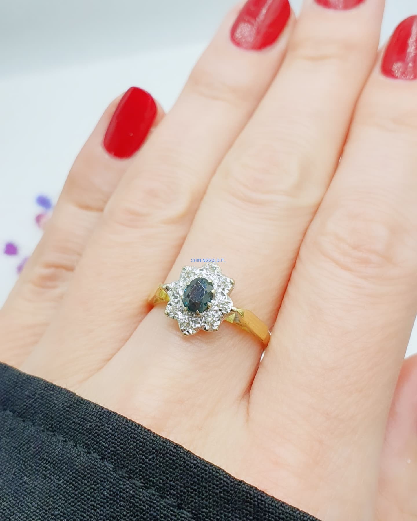 Ekskluzywny złoty pierścionek wykonany z najwyższej jakości złota próby 750, ozdobiony niezwykłym turmalinem o głębokiej, hipnotyzującej barwie. Jego piękno podkreślają subtelnie osadzone diamenty, które dodają blasku i elegancji.