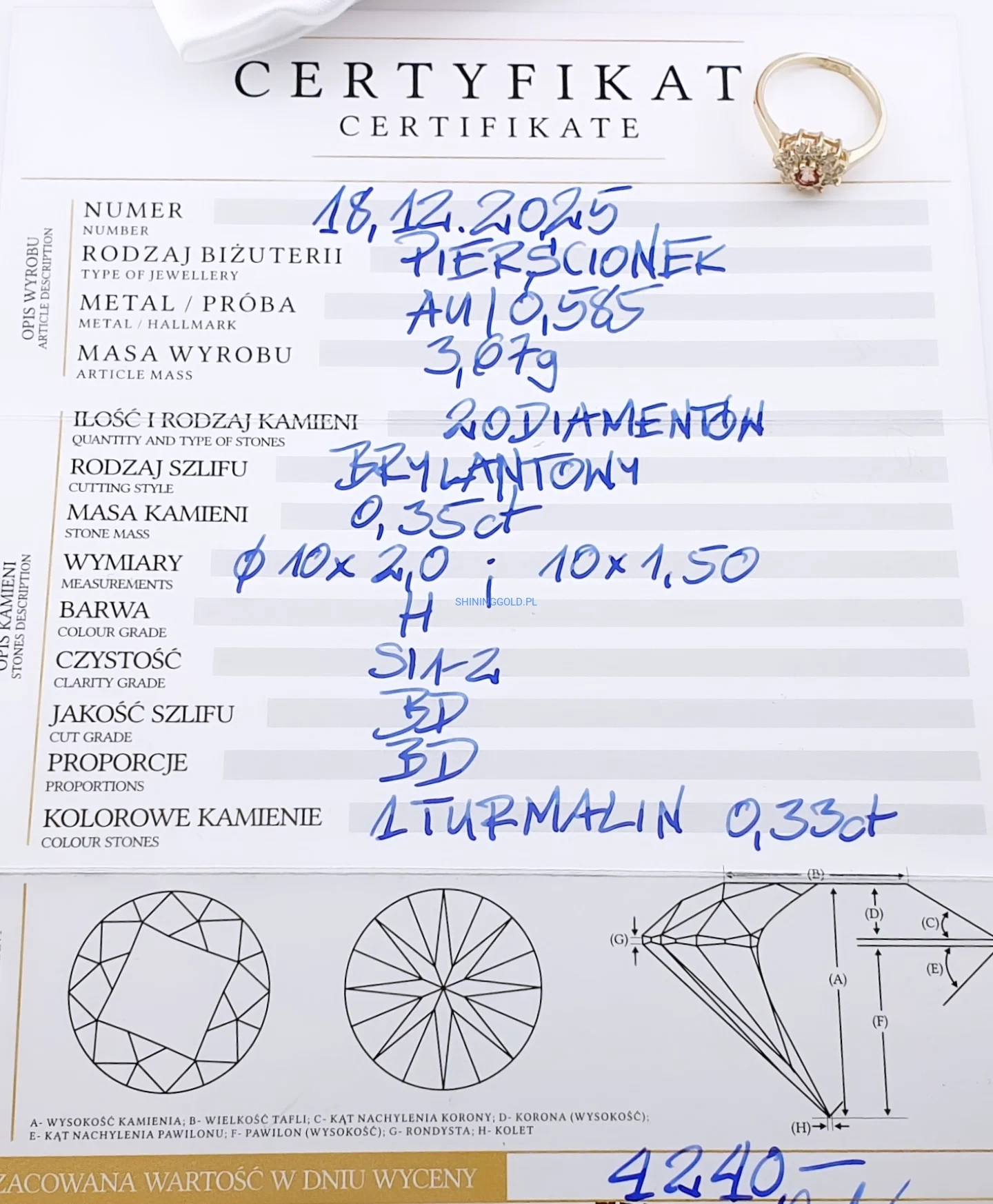• próba złota: 585