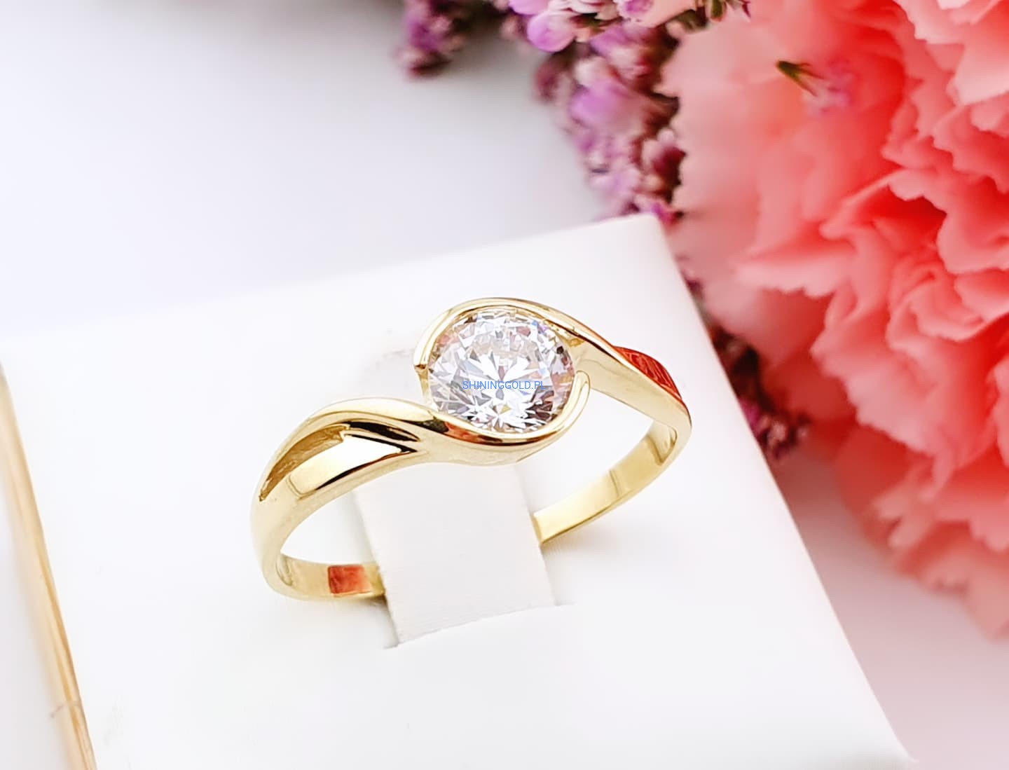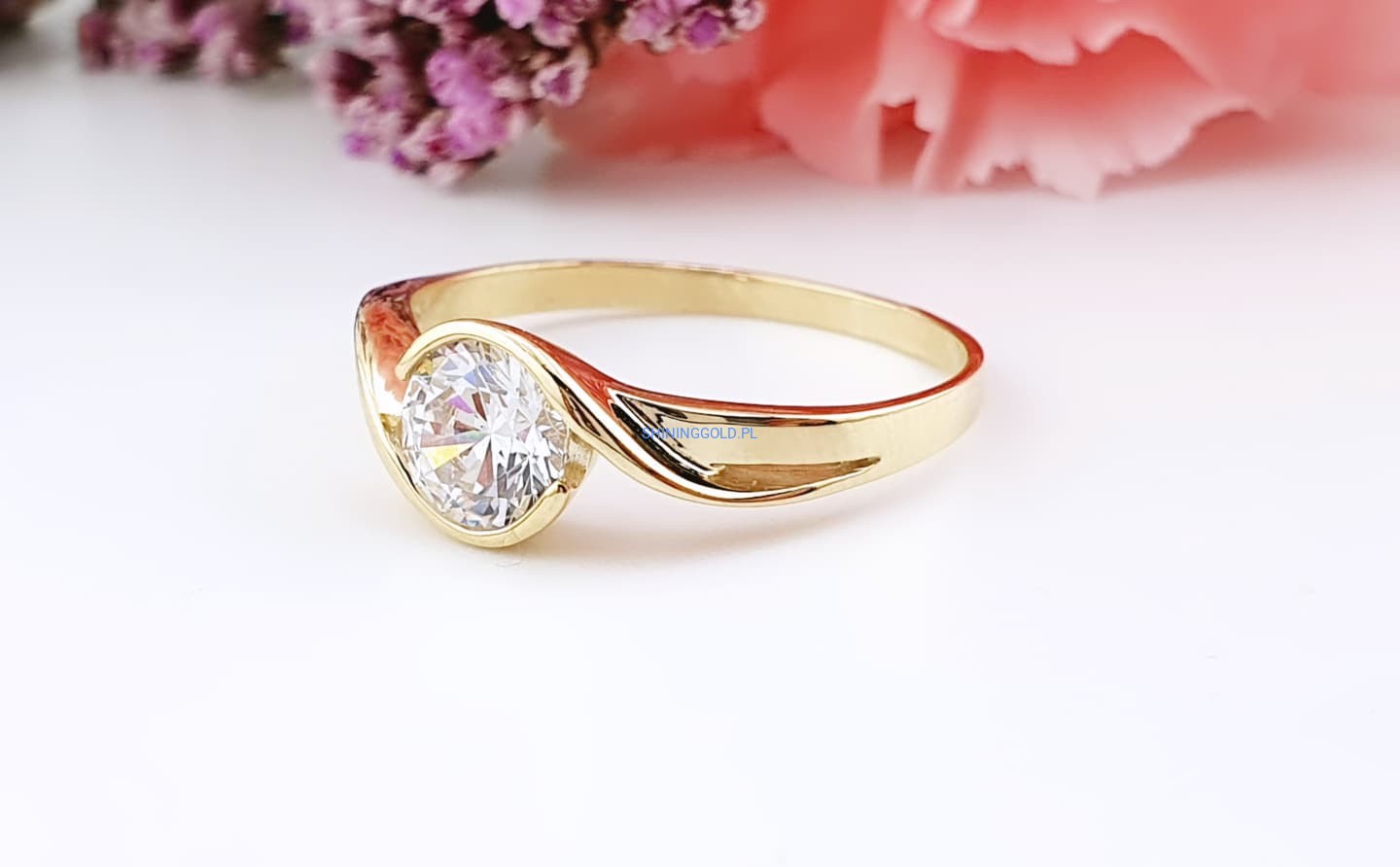 Złoty pierścionek z cyrkonią (037WS)
