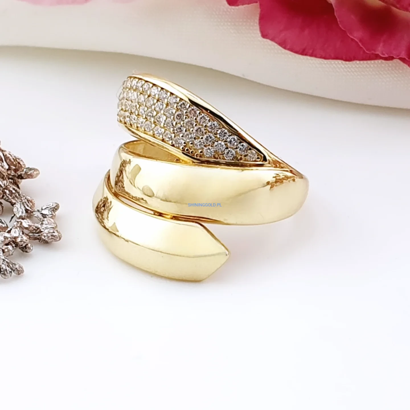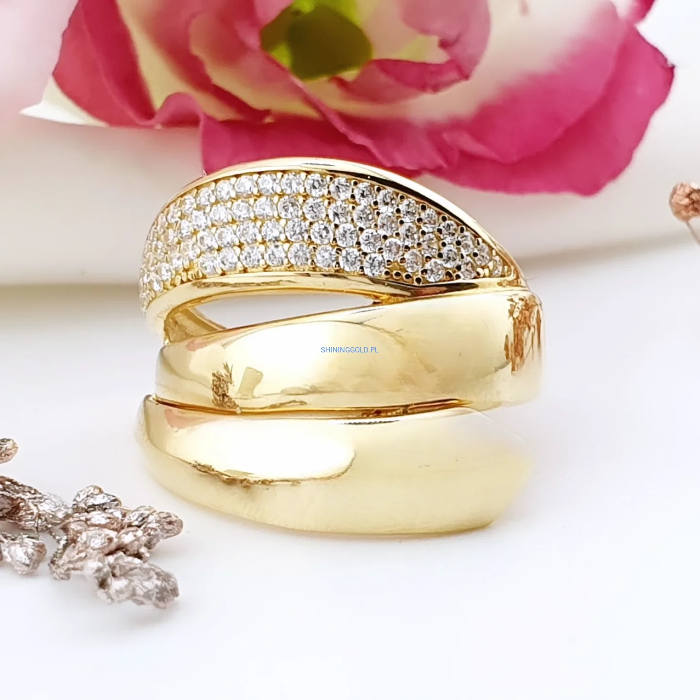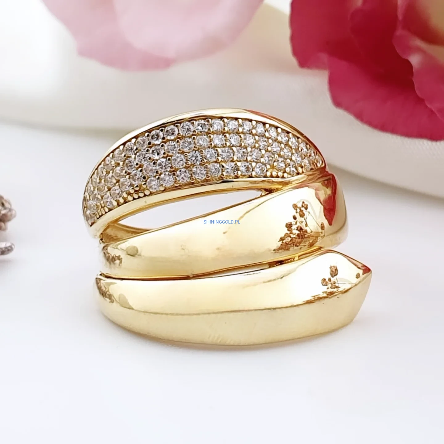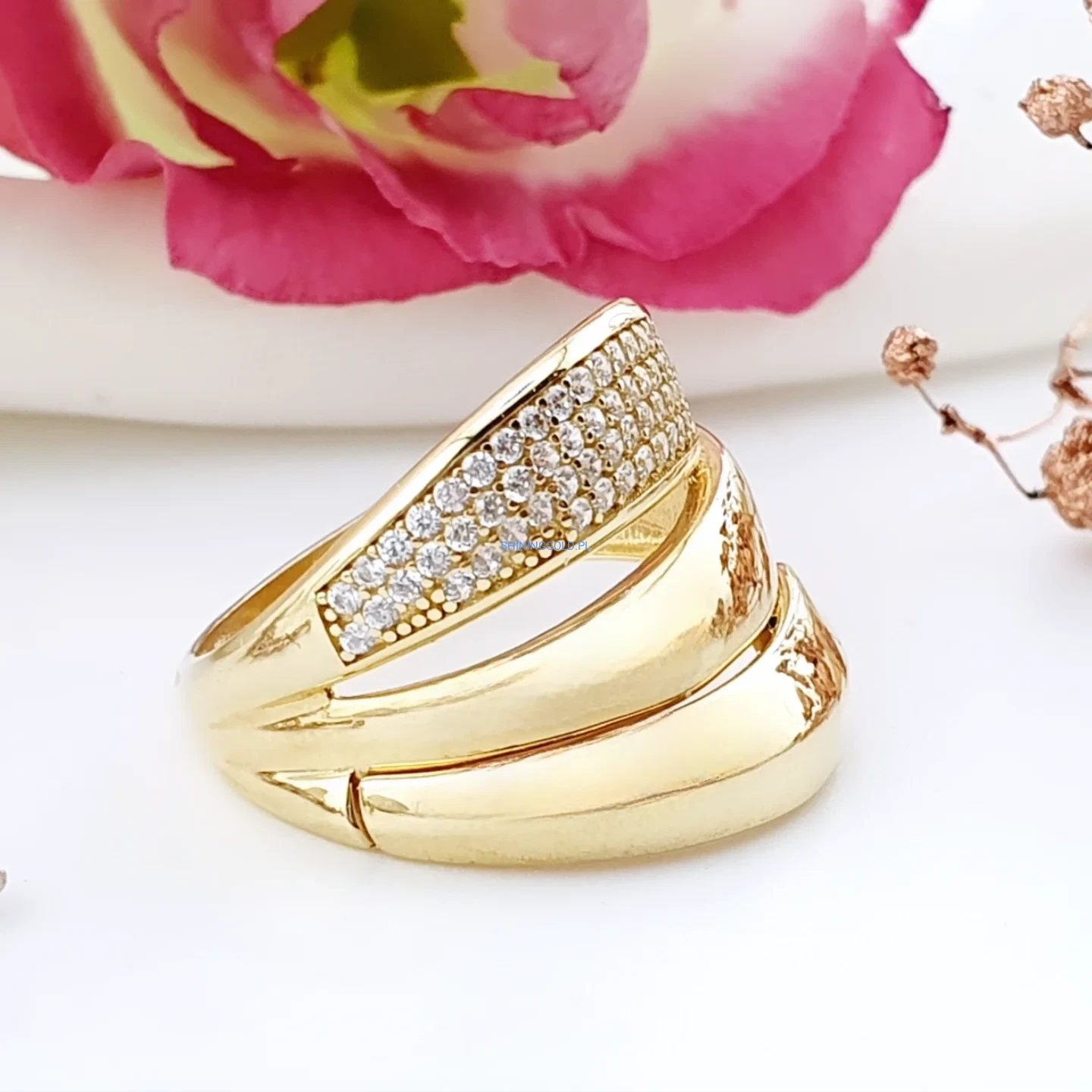 Złoty pierścionek 585 z lśniącymi cyrkoniami – elegancja i nowoczesna forma