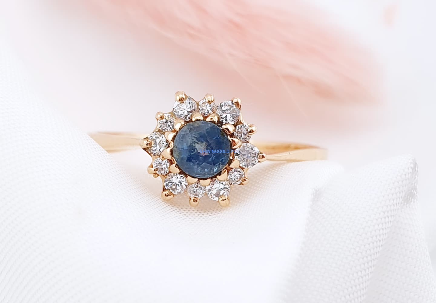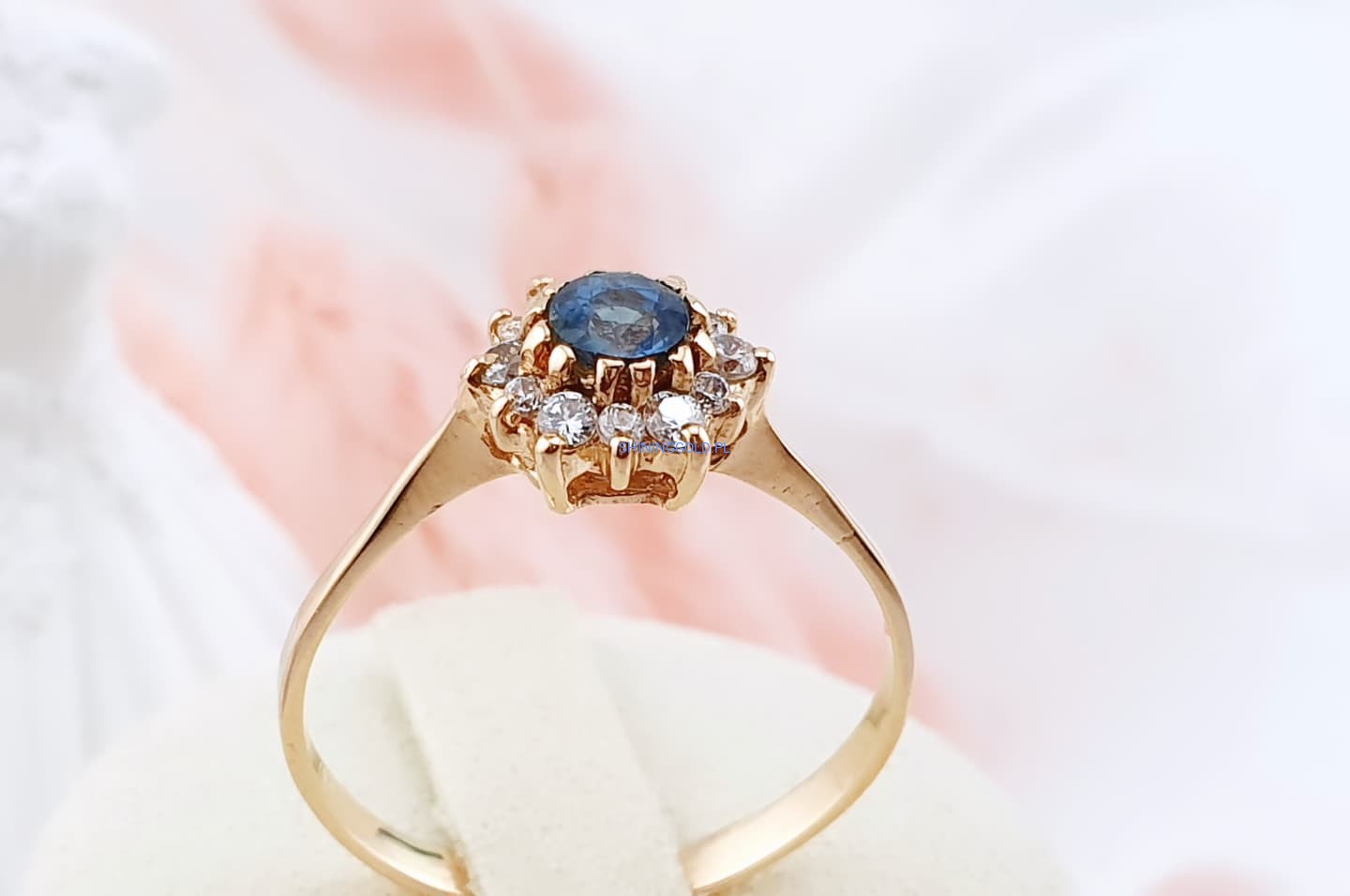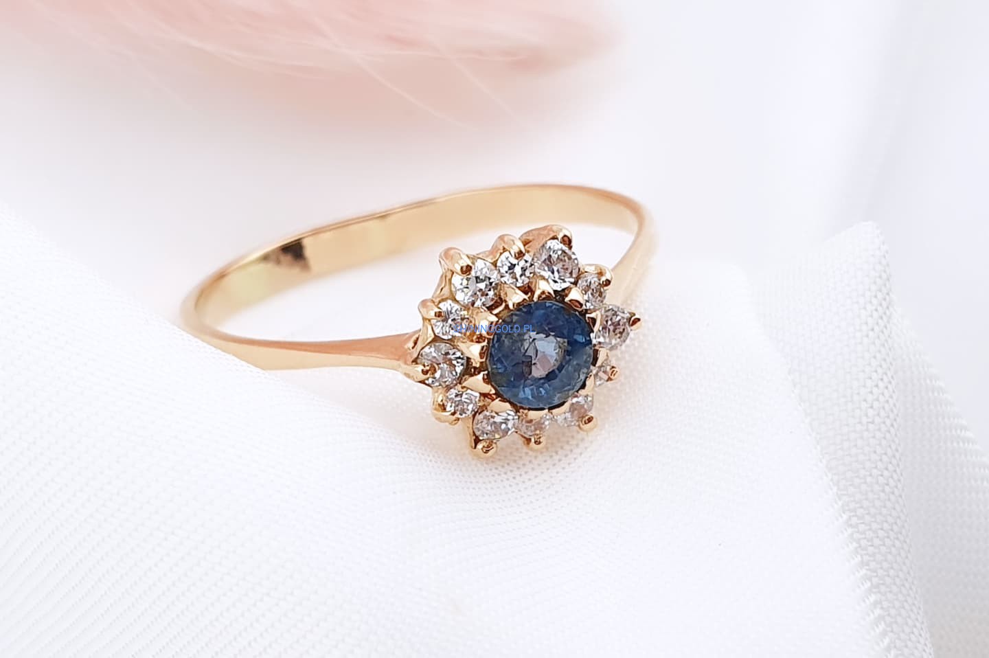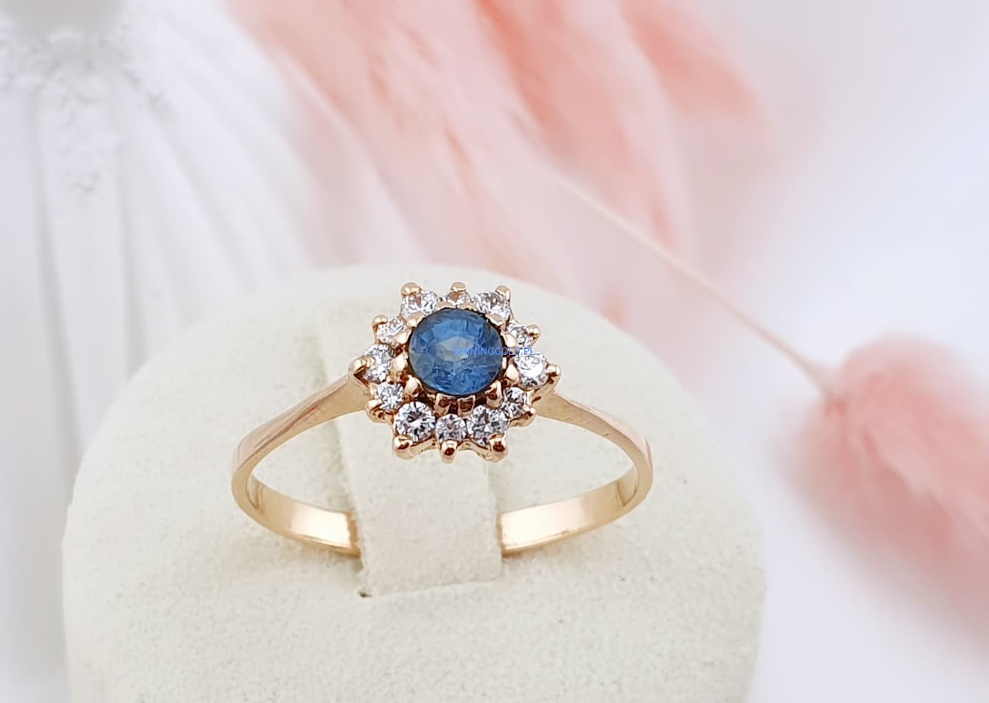 Złoty pierścionek z cyrkoniami to wyjątkowa propozycja dla osób ceniących elegancję i subtelny blask. Centralny kamień w głębokim odcieniu niebieskiego otoczony został jasnymi cyrkoniami, tworząc efektowną kompozycję przypominającą promienistą gwiazdę. Wykonany ze złota próby 585, łączy w sobie klasykę i nowoczesny szyk, sprawiając, że doskonale sprawdzi się zarówno na co dzień, jak i przy wyjątkowych okazjach.