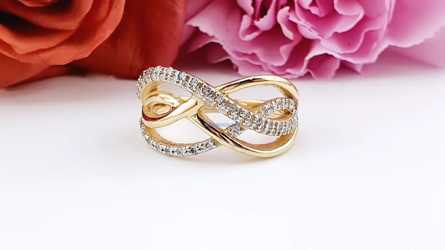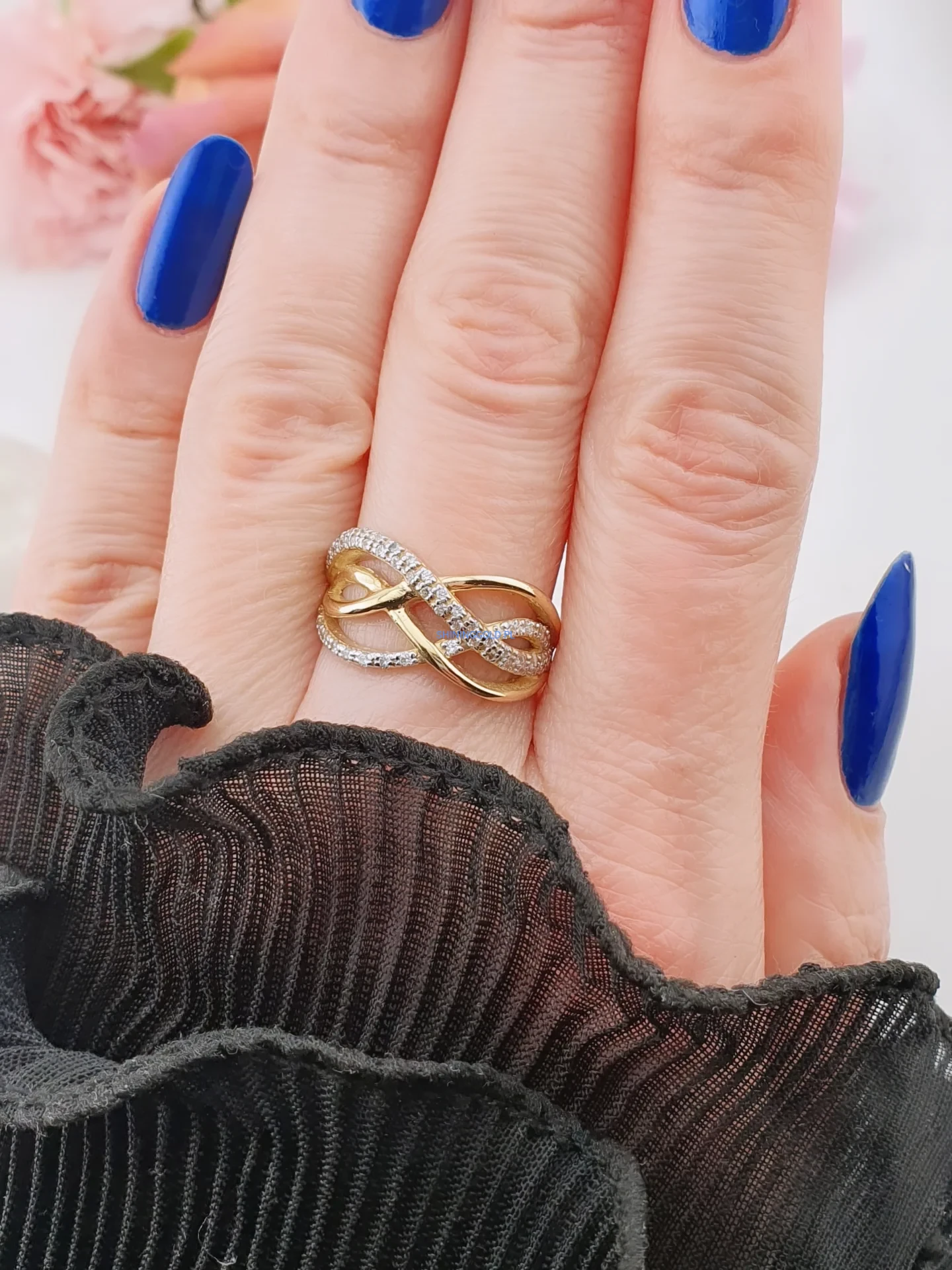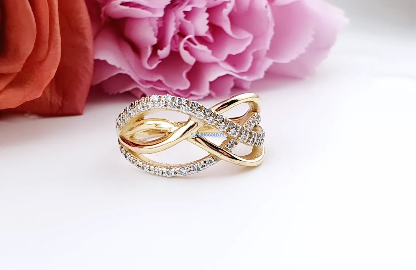 Złoty pierścionek 585 z cyrkoniami – nieskończoność