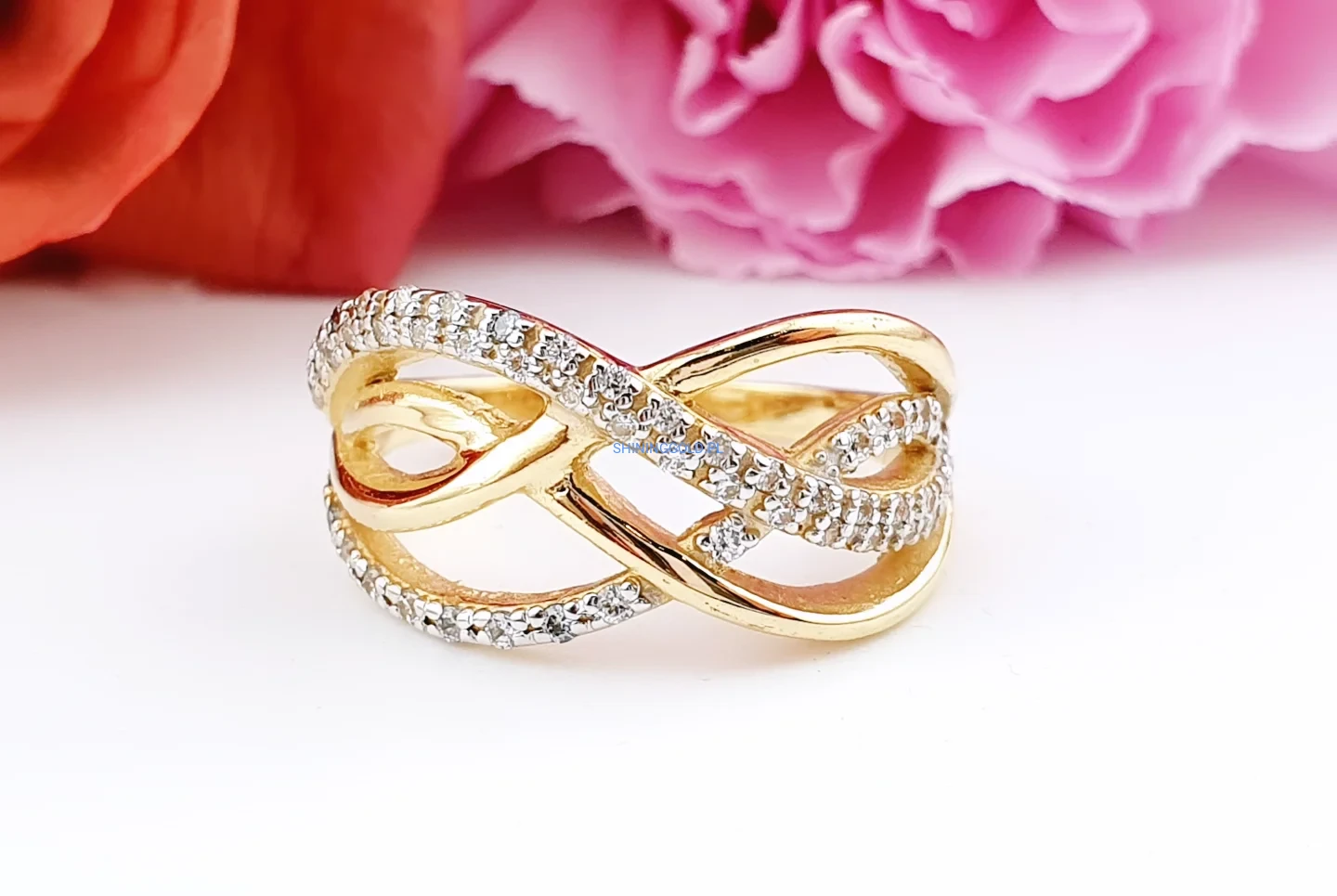 Złoty pierścionek z cyrkoniami – nieskończoność (048A)
