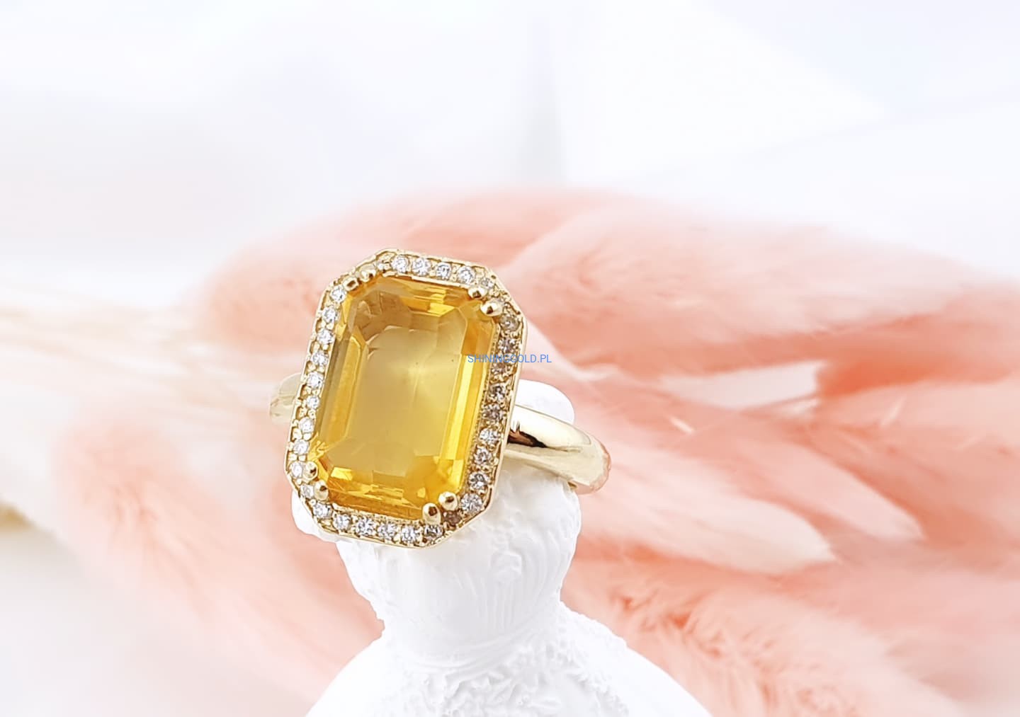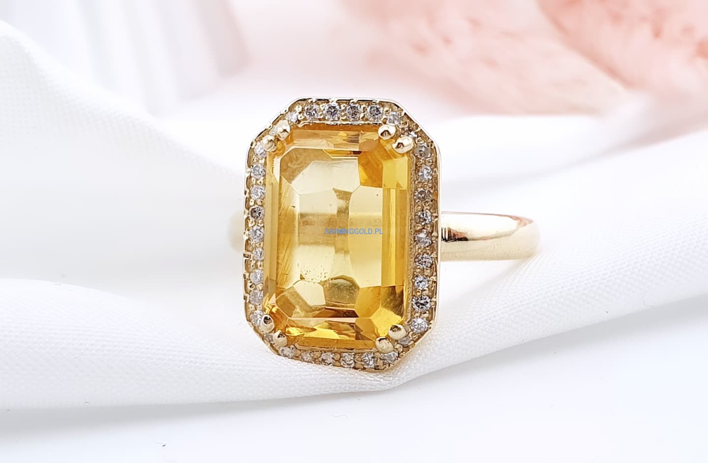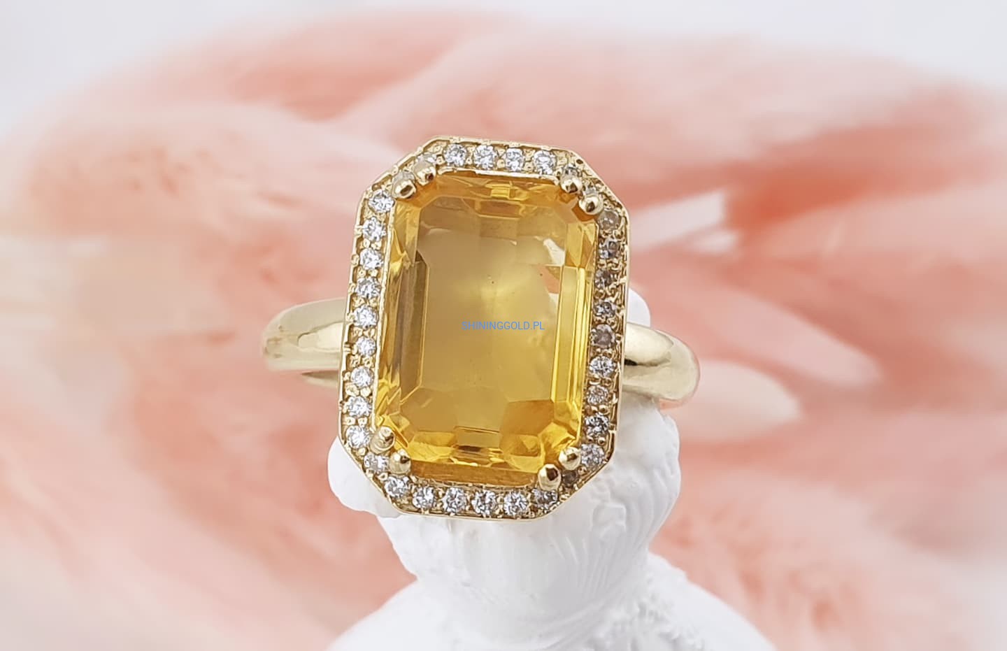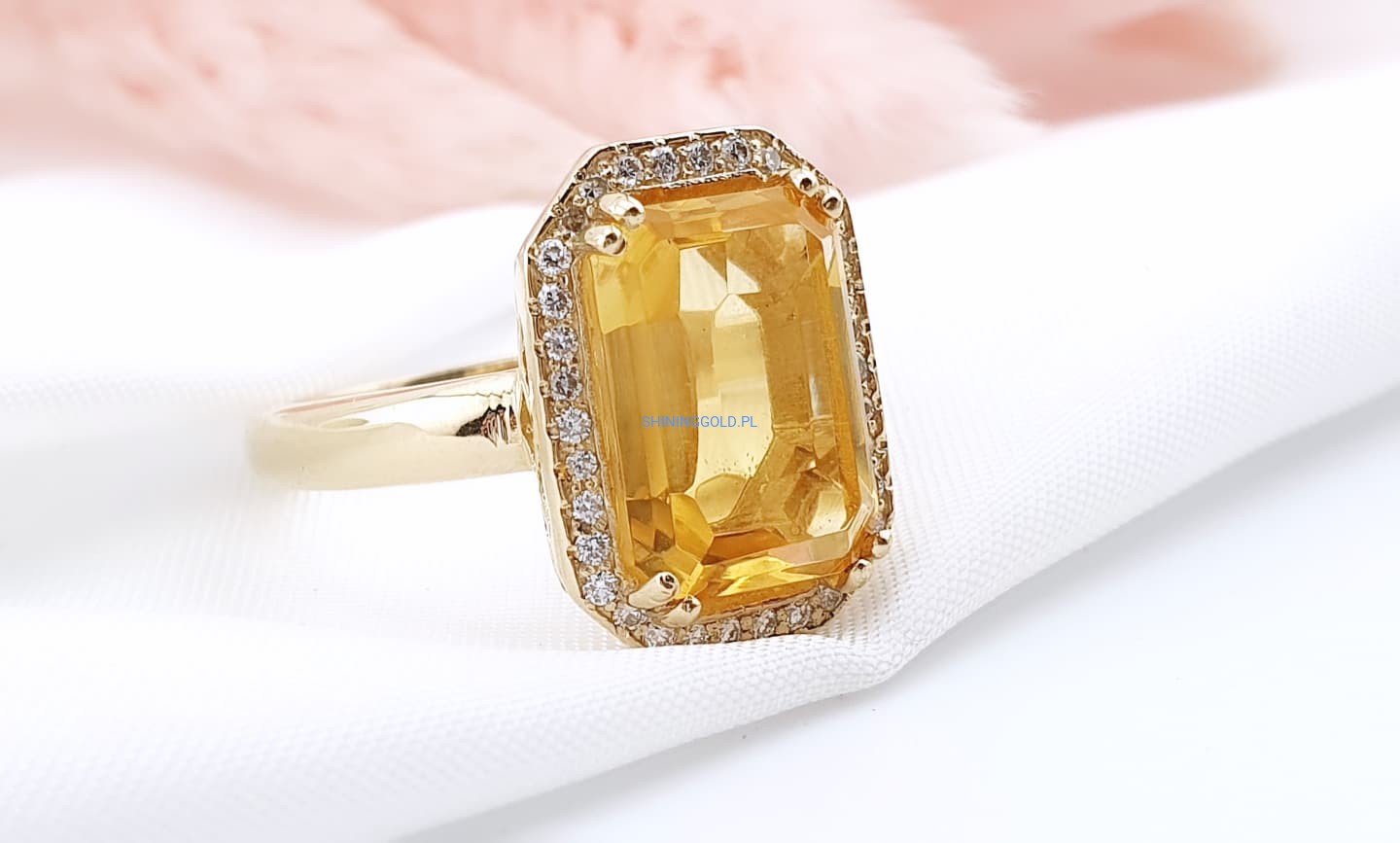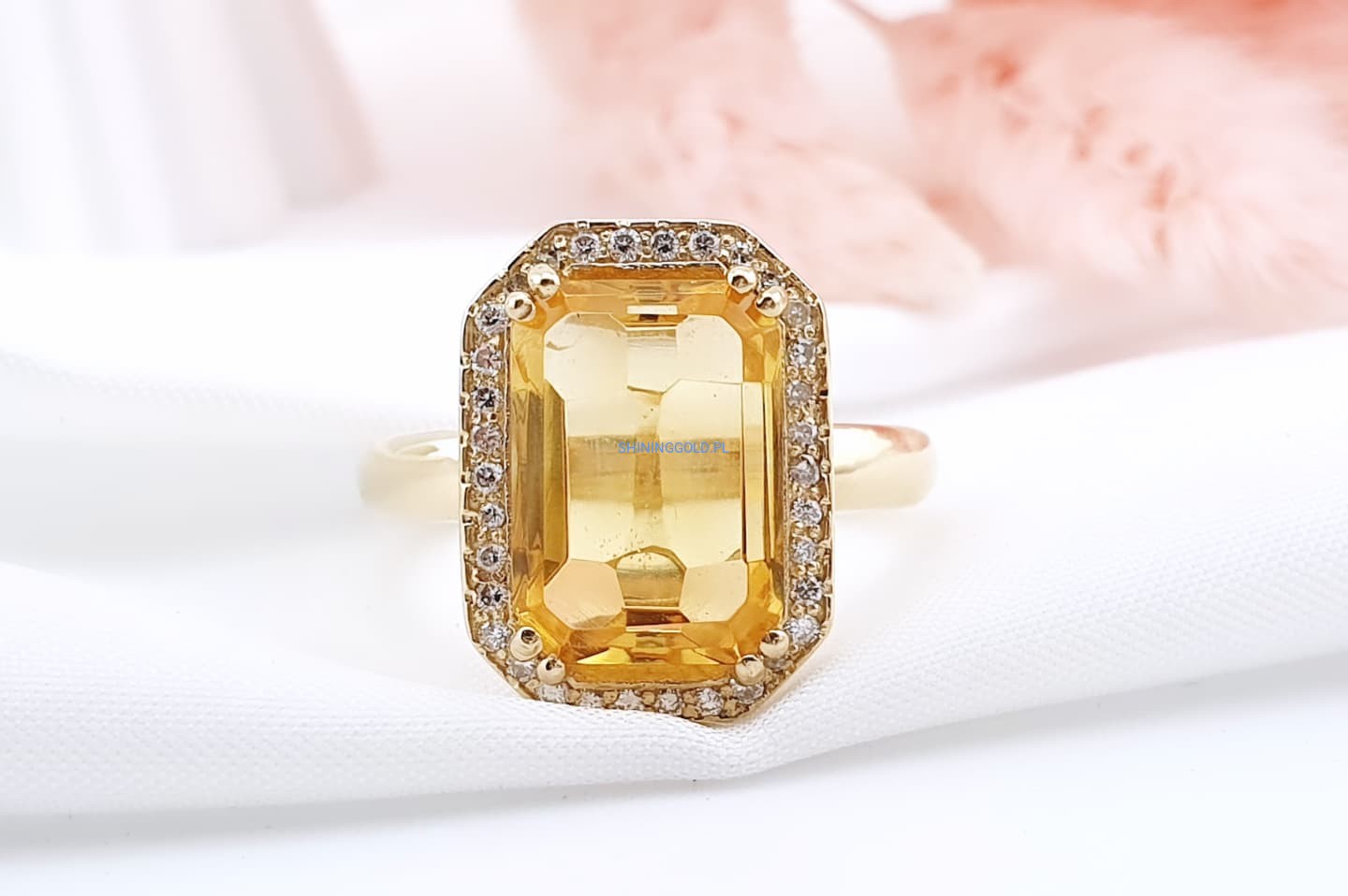 Złoty pierścionek z cytrynem i diamentami (1047WS)