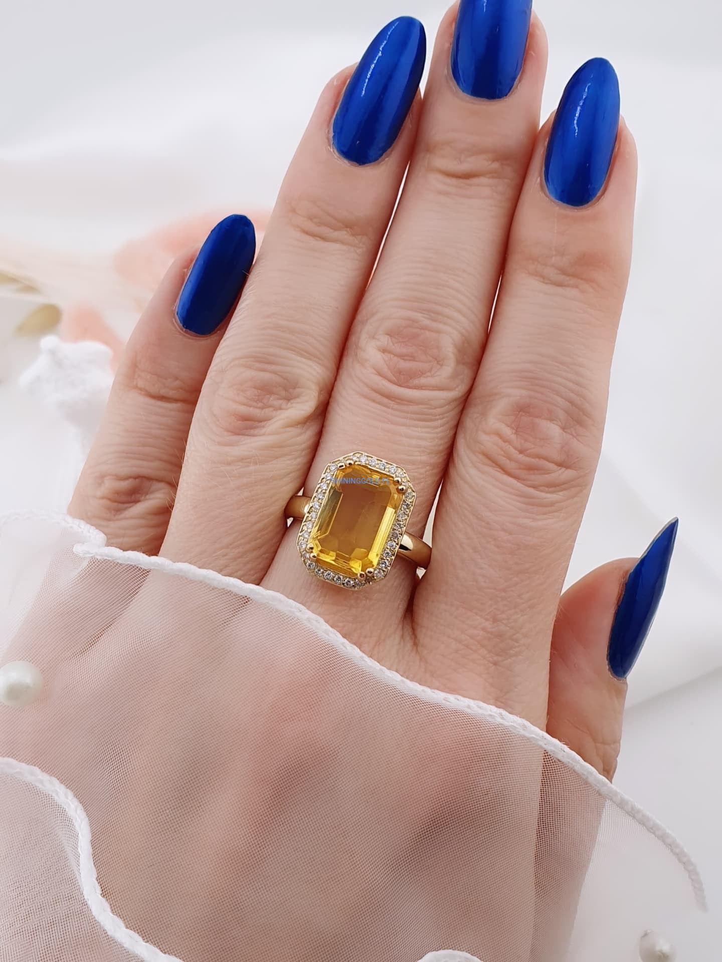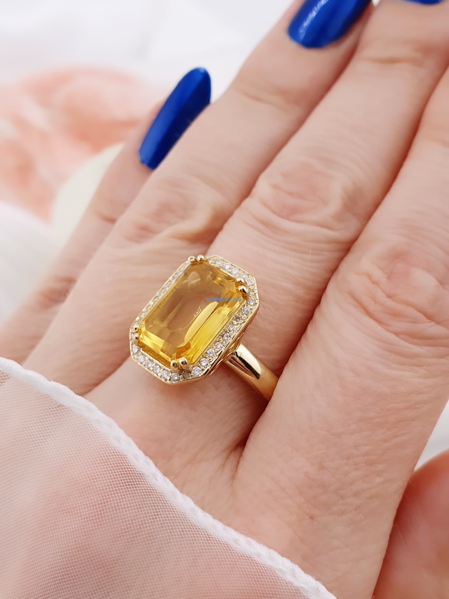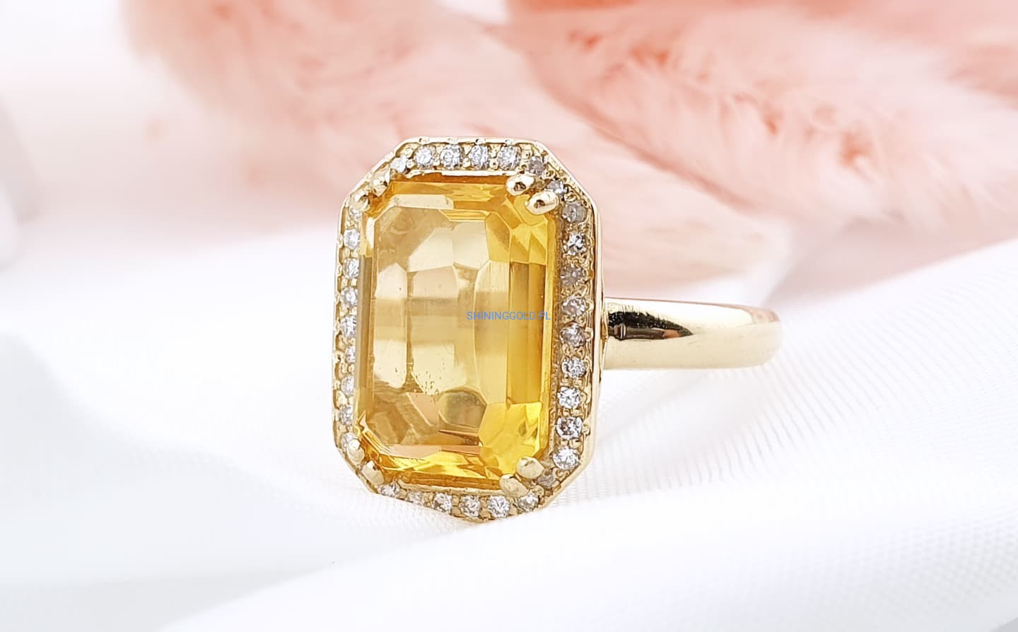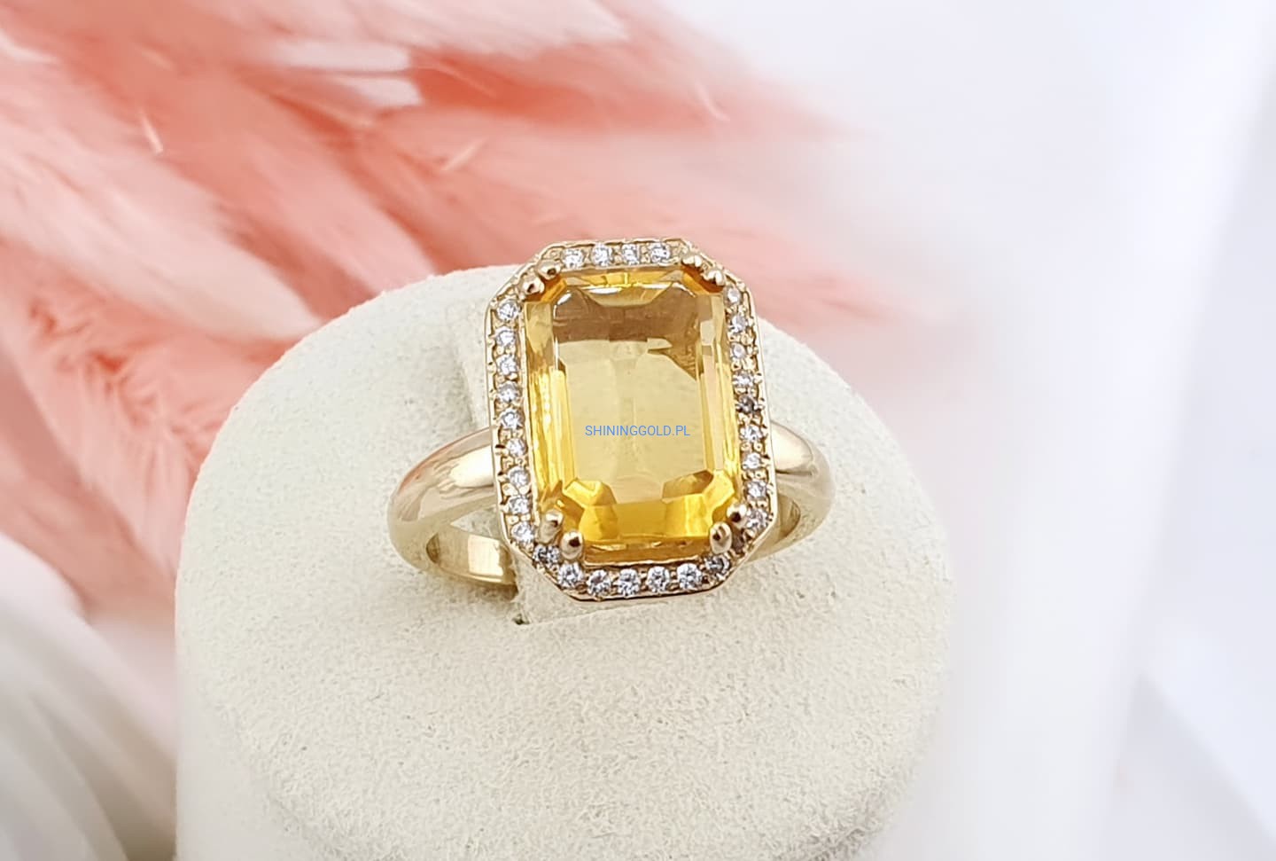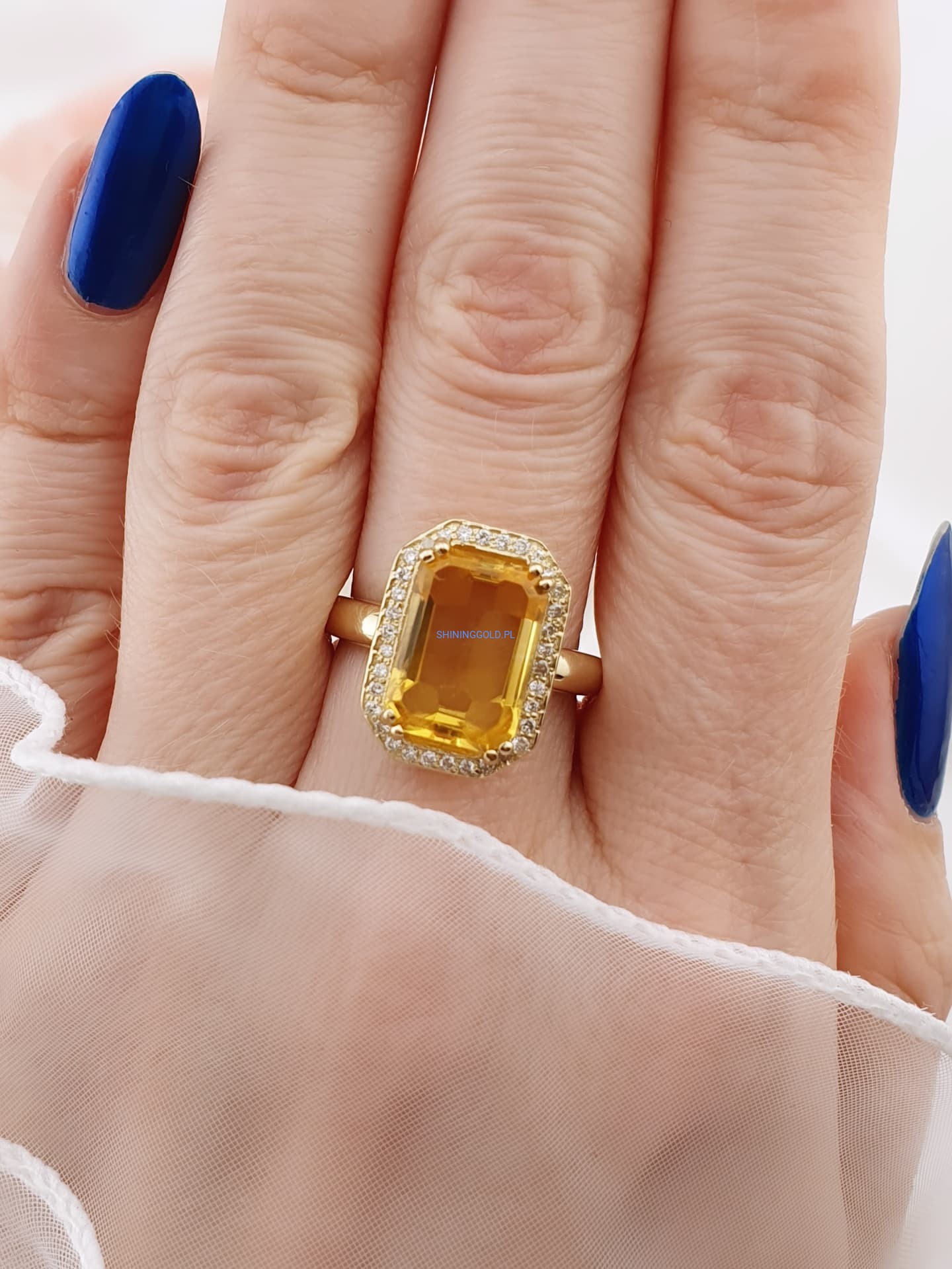 Złoty pierścionek z cytrynem i diamentami (1047WS)