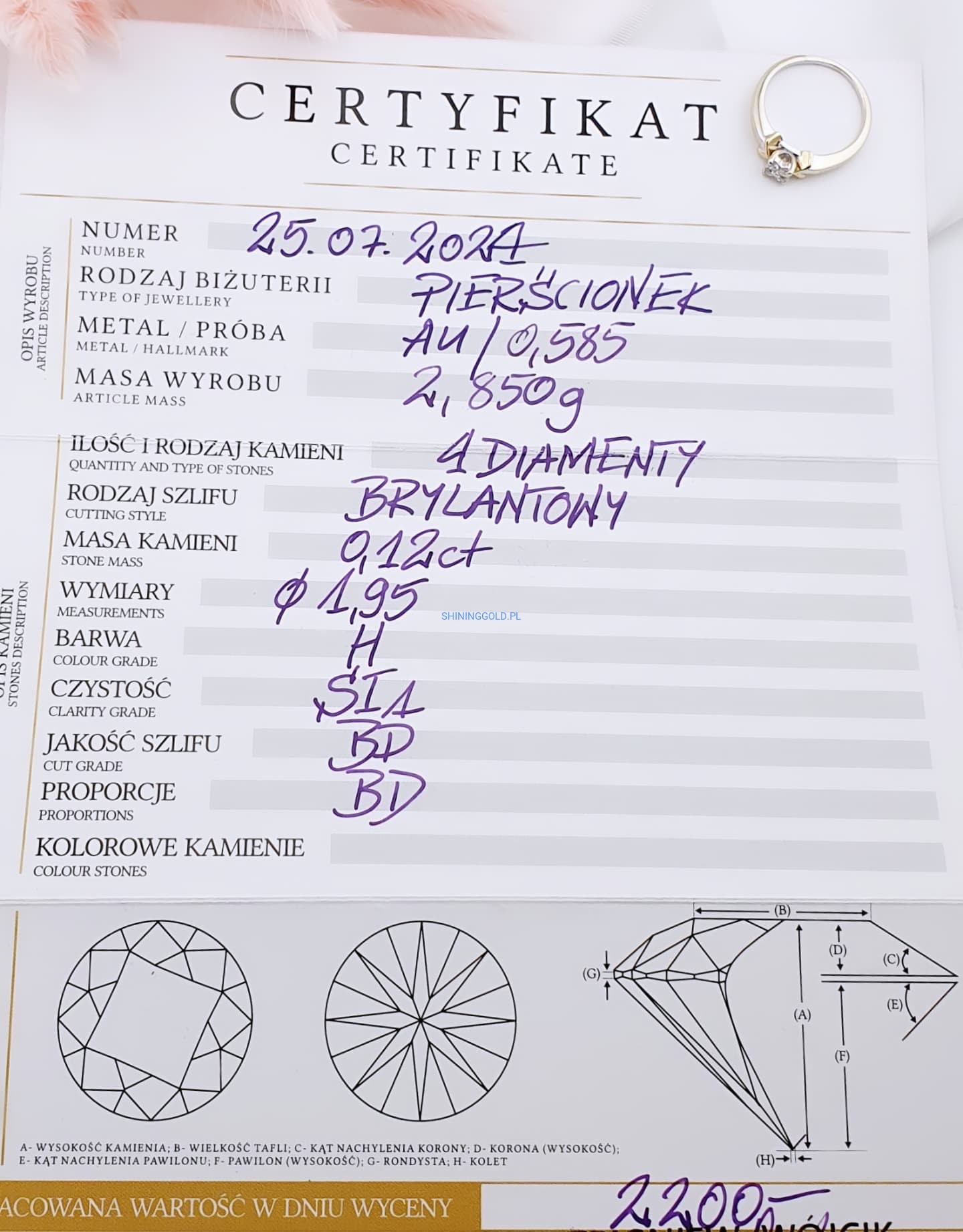 Łączna masa: 0,12 ct