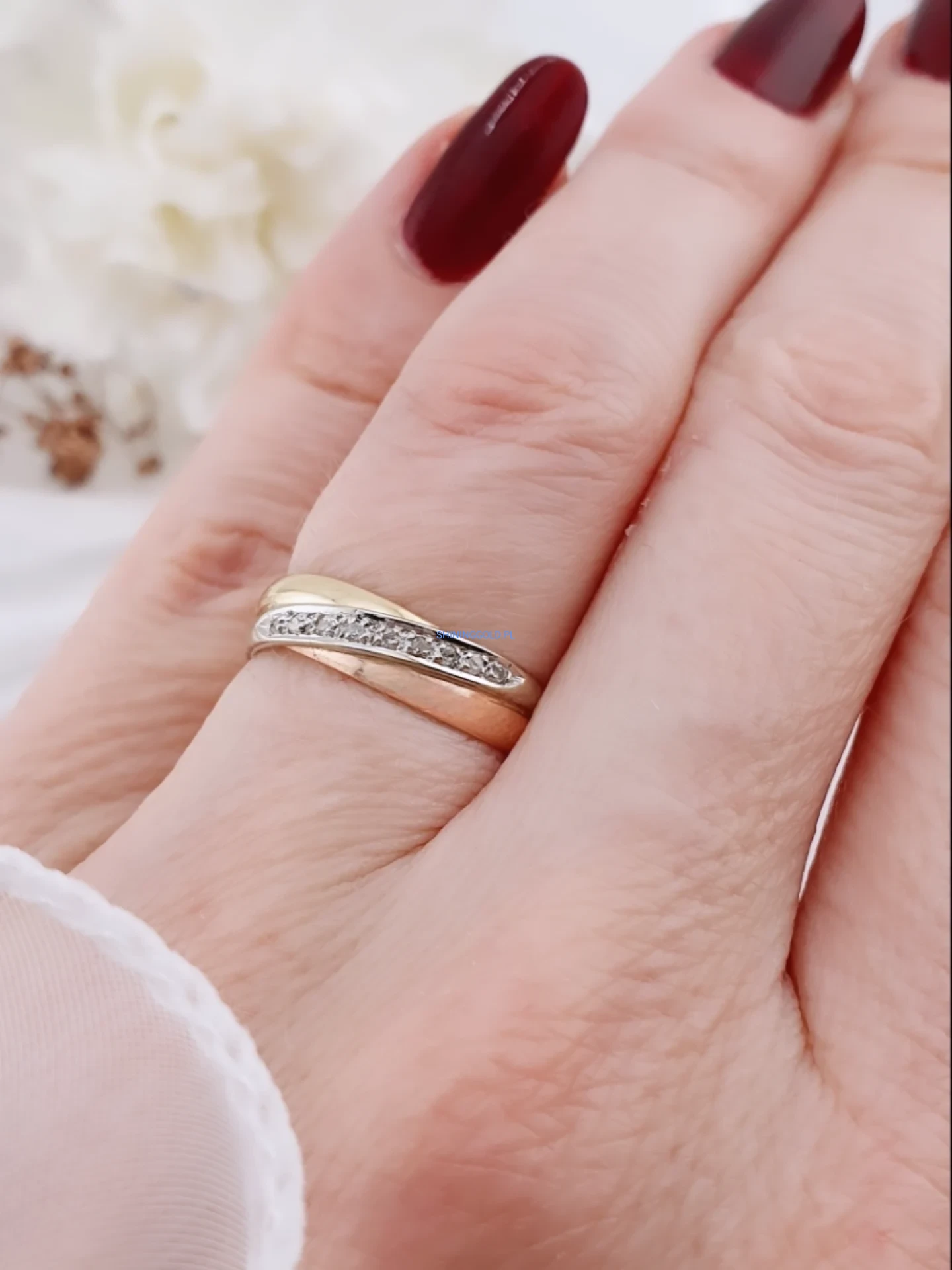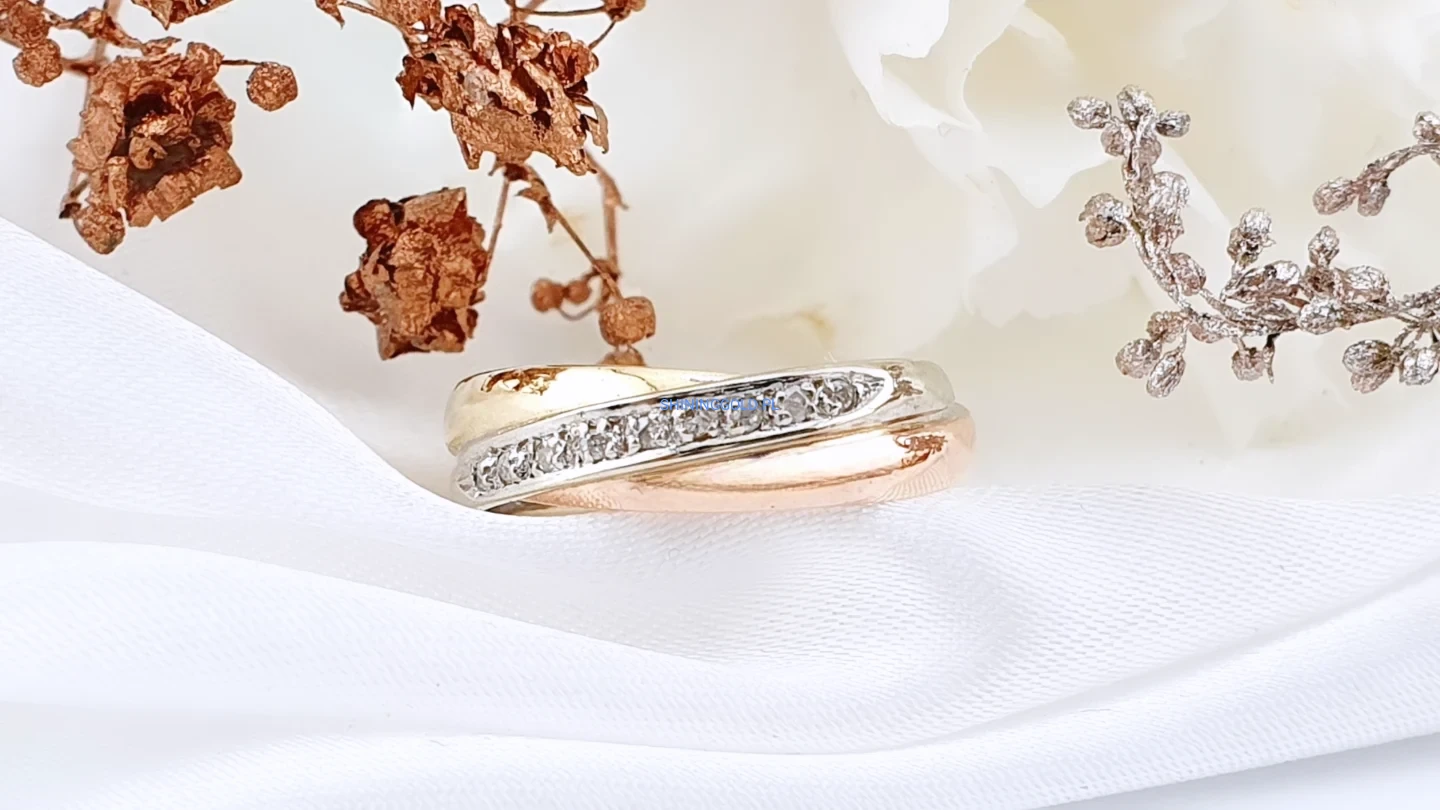 Elegancki pierścionek wykonany ze złota próby 585, zdobiony ośmioma naturalnymi diamentami osadzonymi w delikatnym, falującym pasie. Klasyczna obrączkowa forma połączona z subtelnym blaskiem diamentów tworzy ponadczasową biżuterię, idealną zarówno do codziennego noszenia, jak i na wyjątkowe okazje.