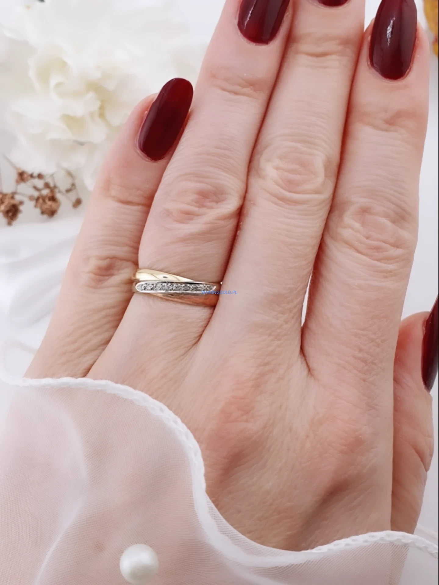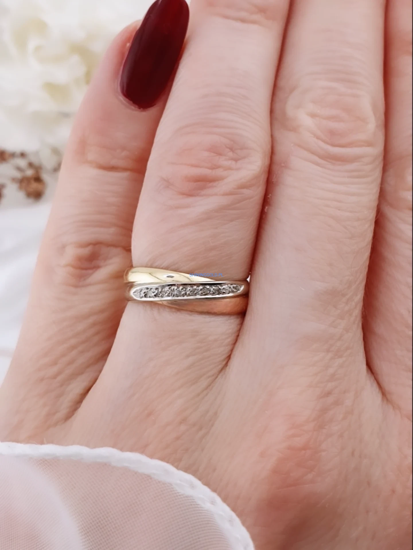 Złoty pierścionek z diamentami – klasyczna obrączkowa forma (1126WS)