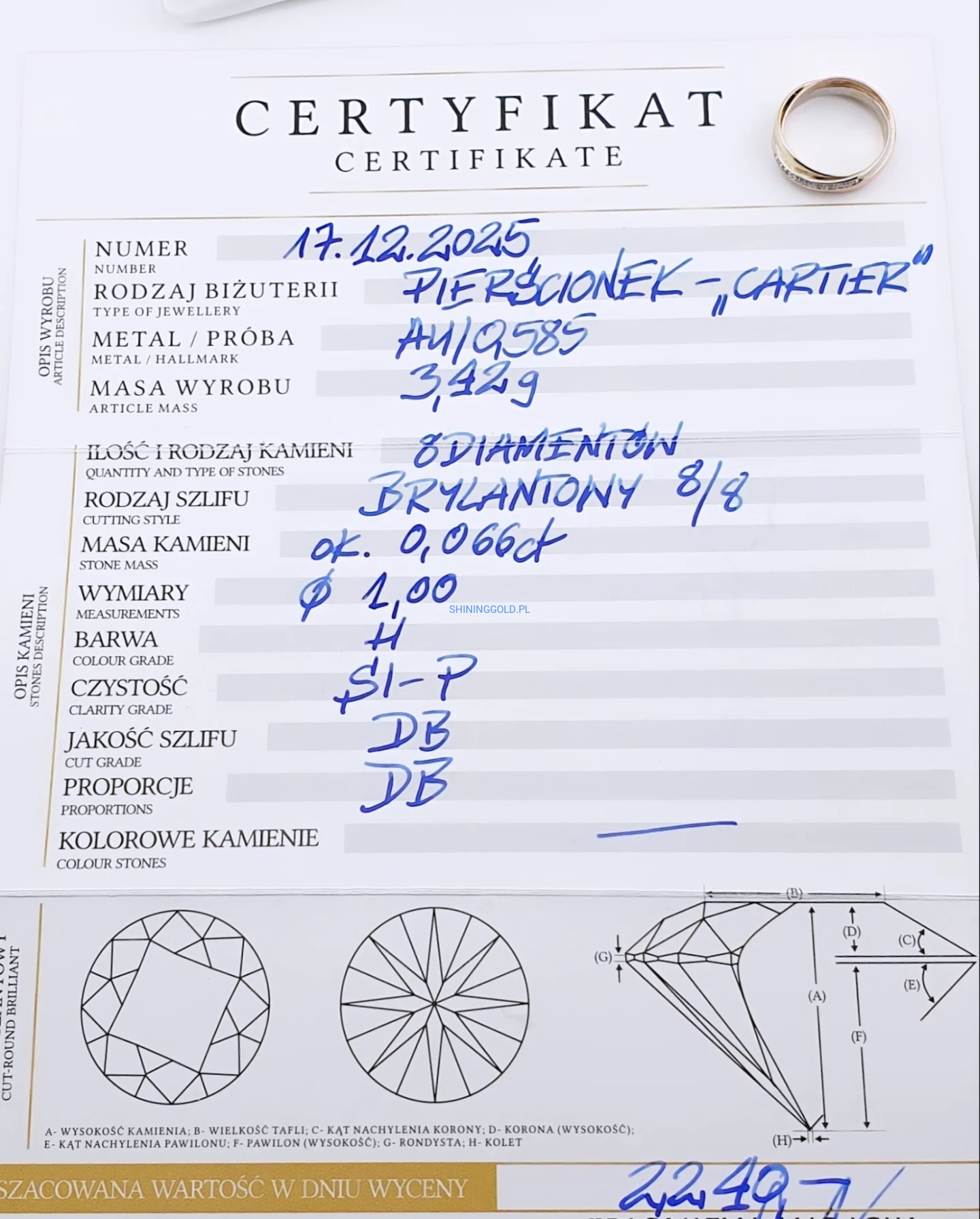 Łączna masa diamentów: ok. 0,066 ct