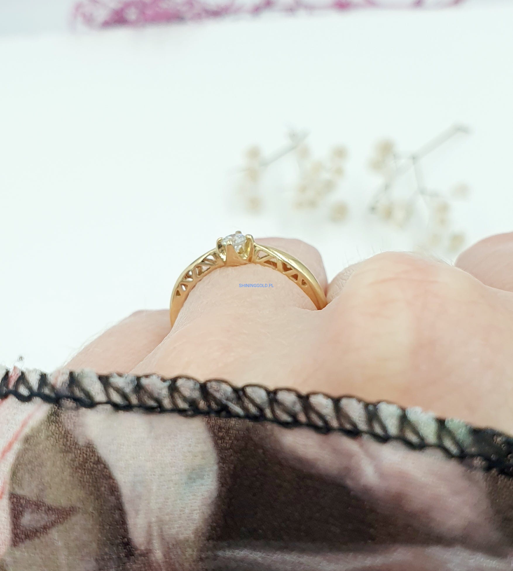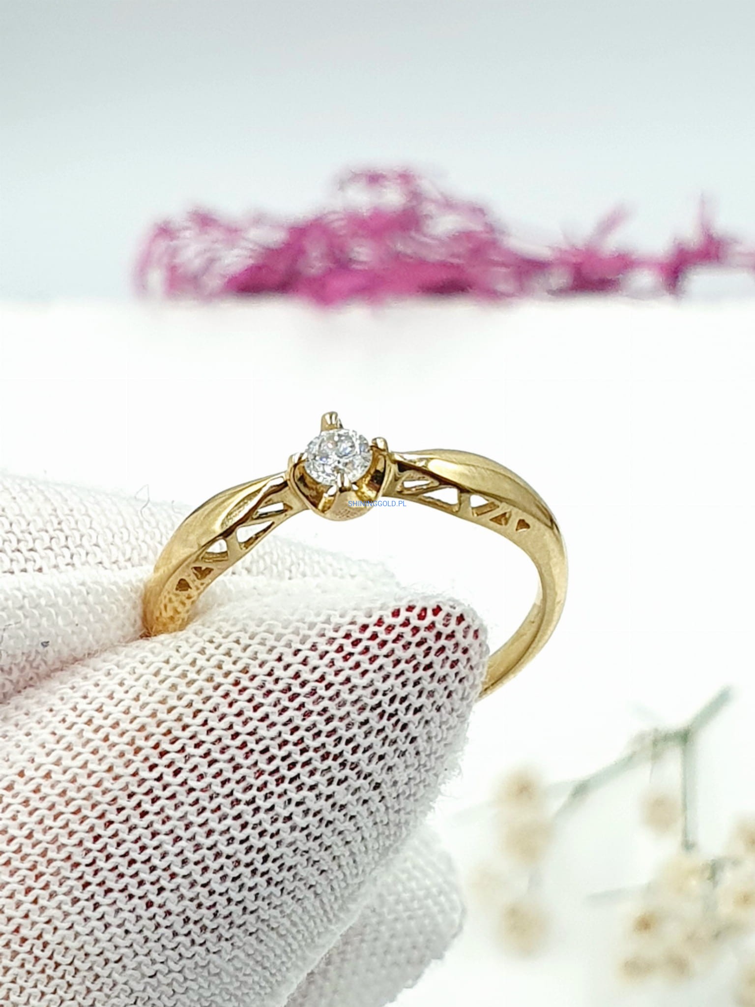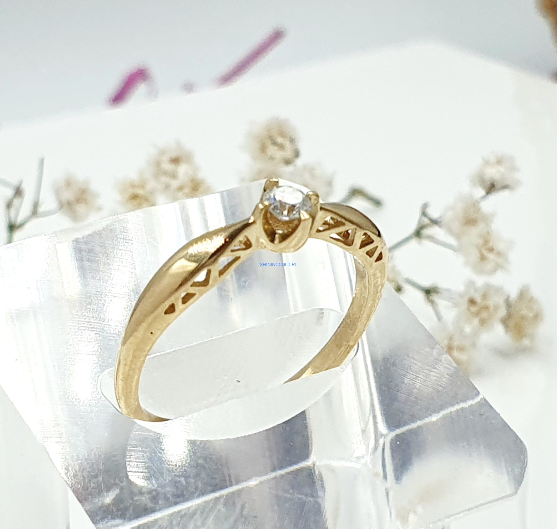 Złoty pierścionek z diamentem (1023WS)