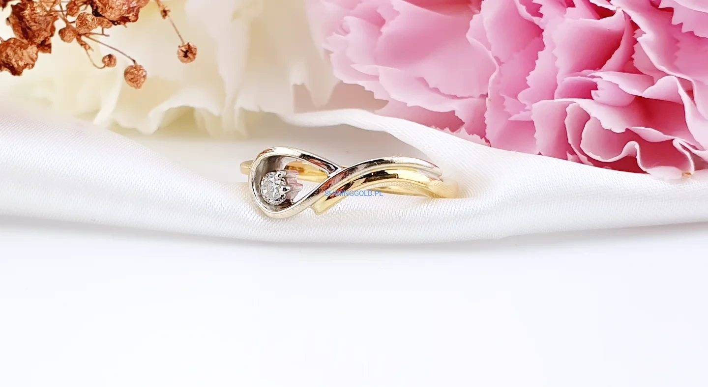 Złoty pierścionek 585 z diamentem – elegancka linia
