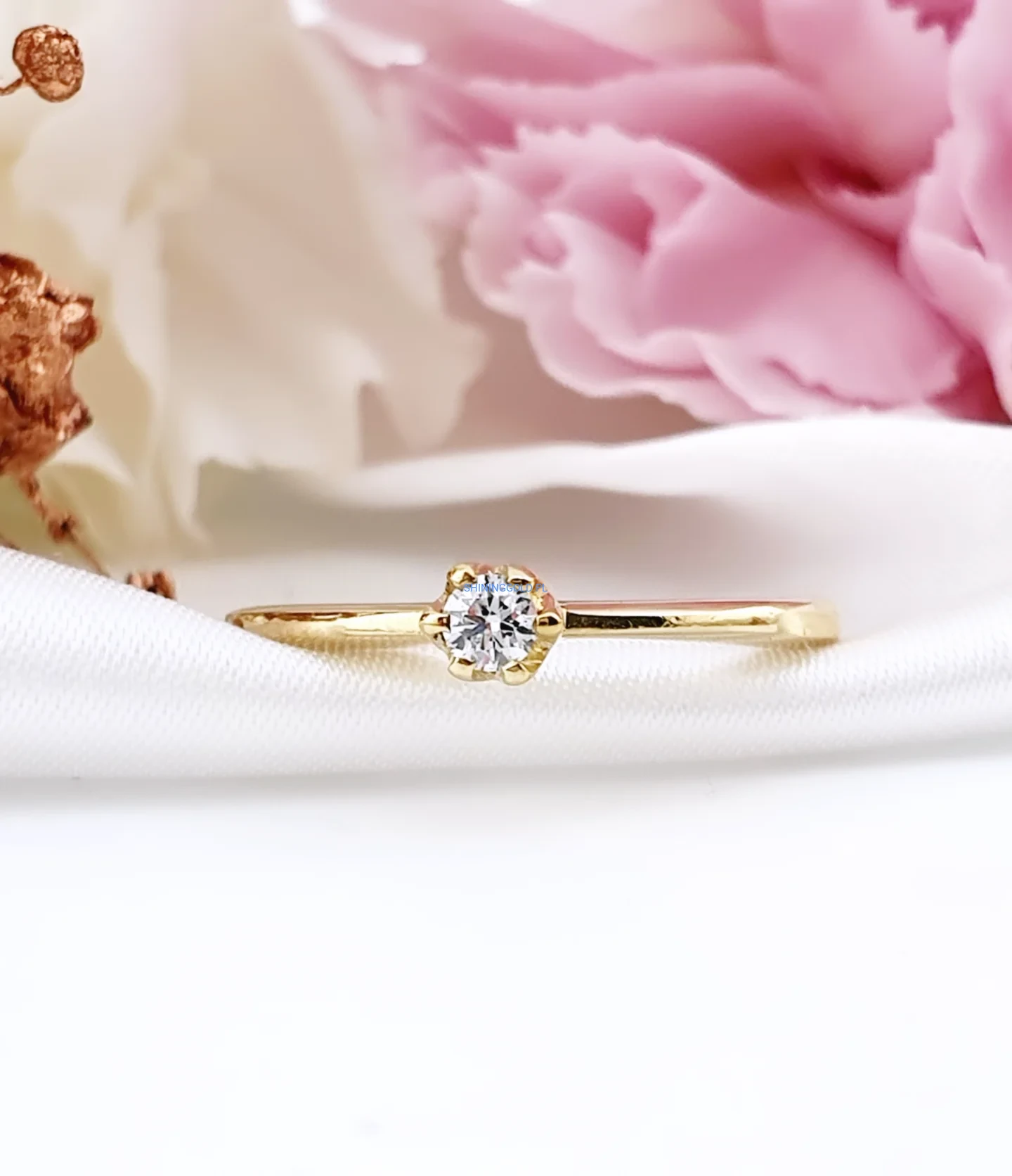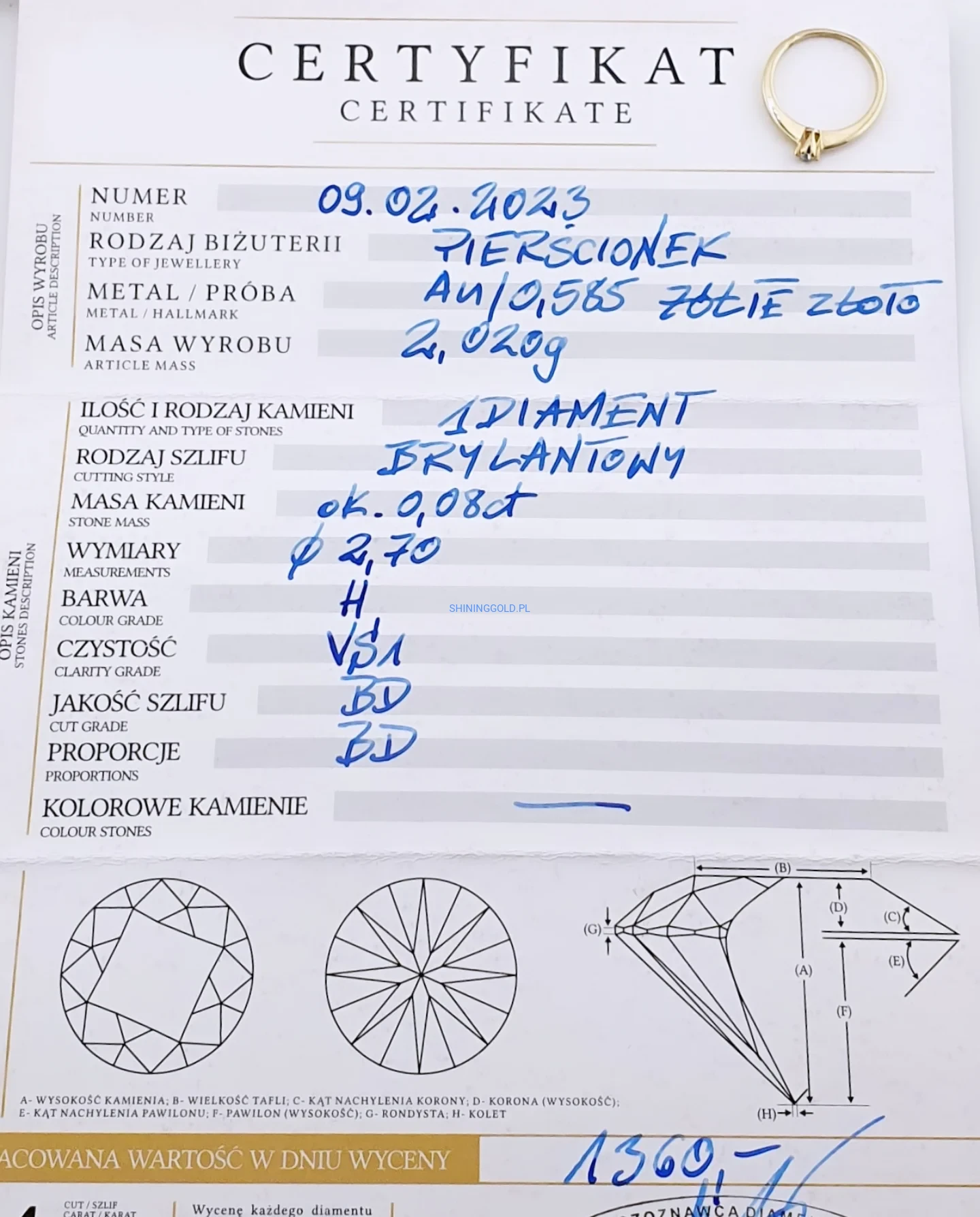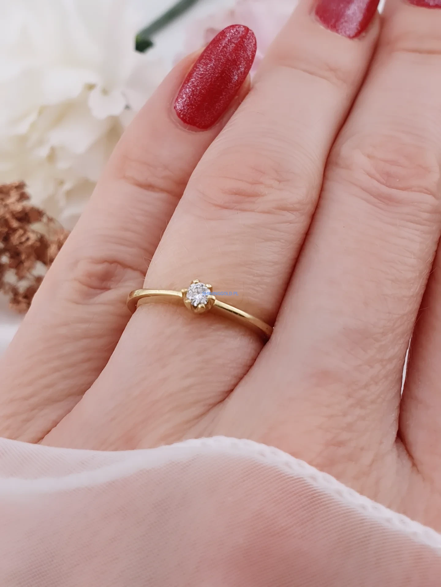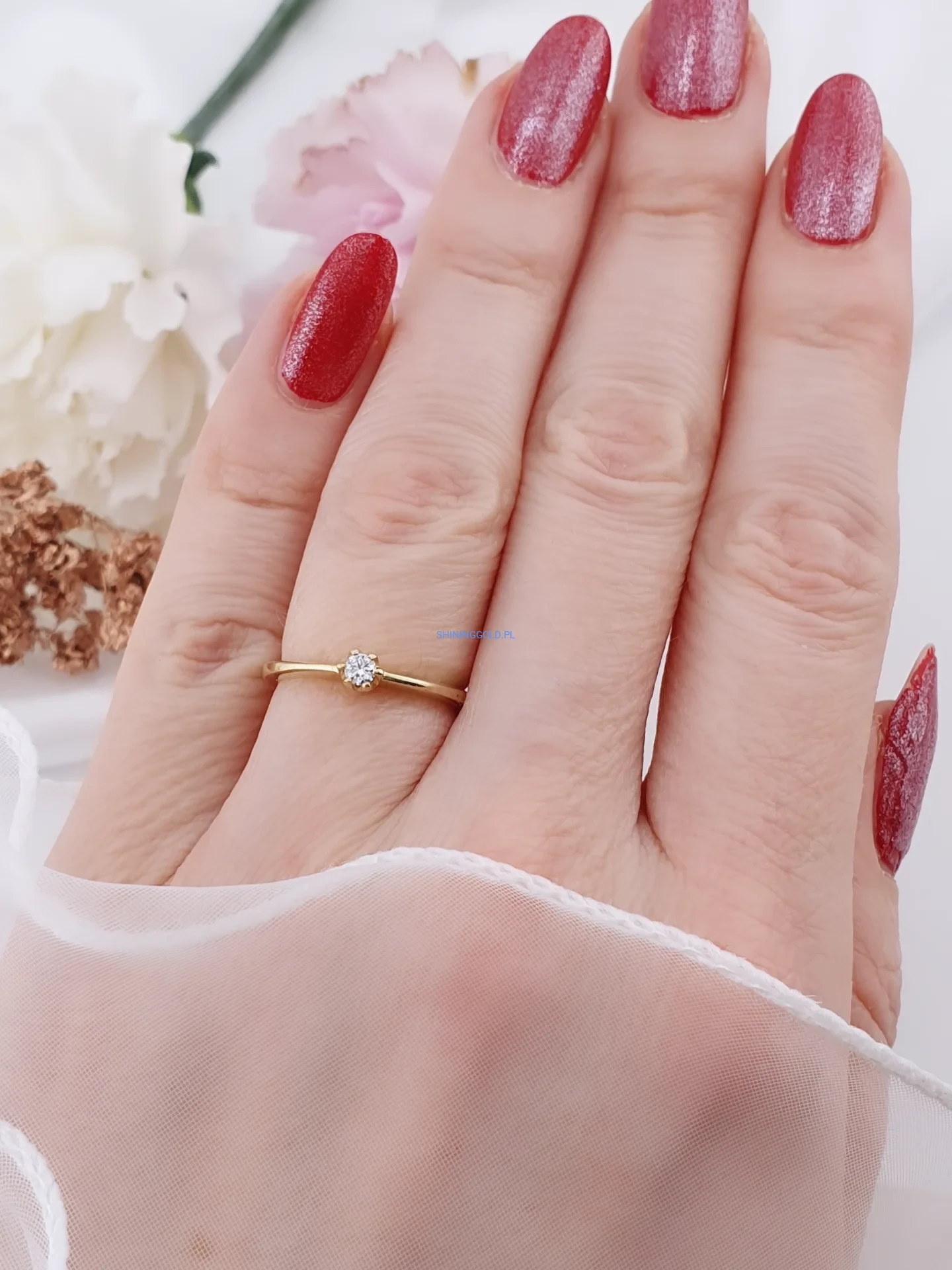 Złoty pierścionek 585 z diamentem brylantowym 0,08 ct