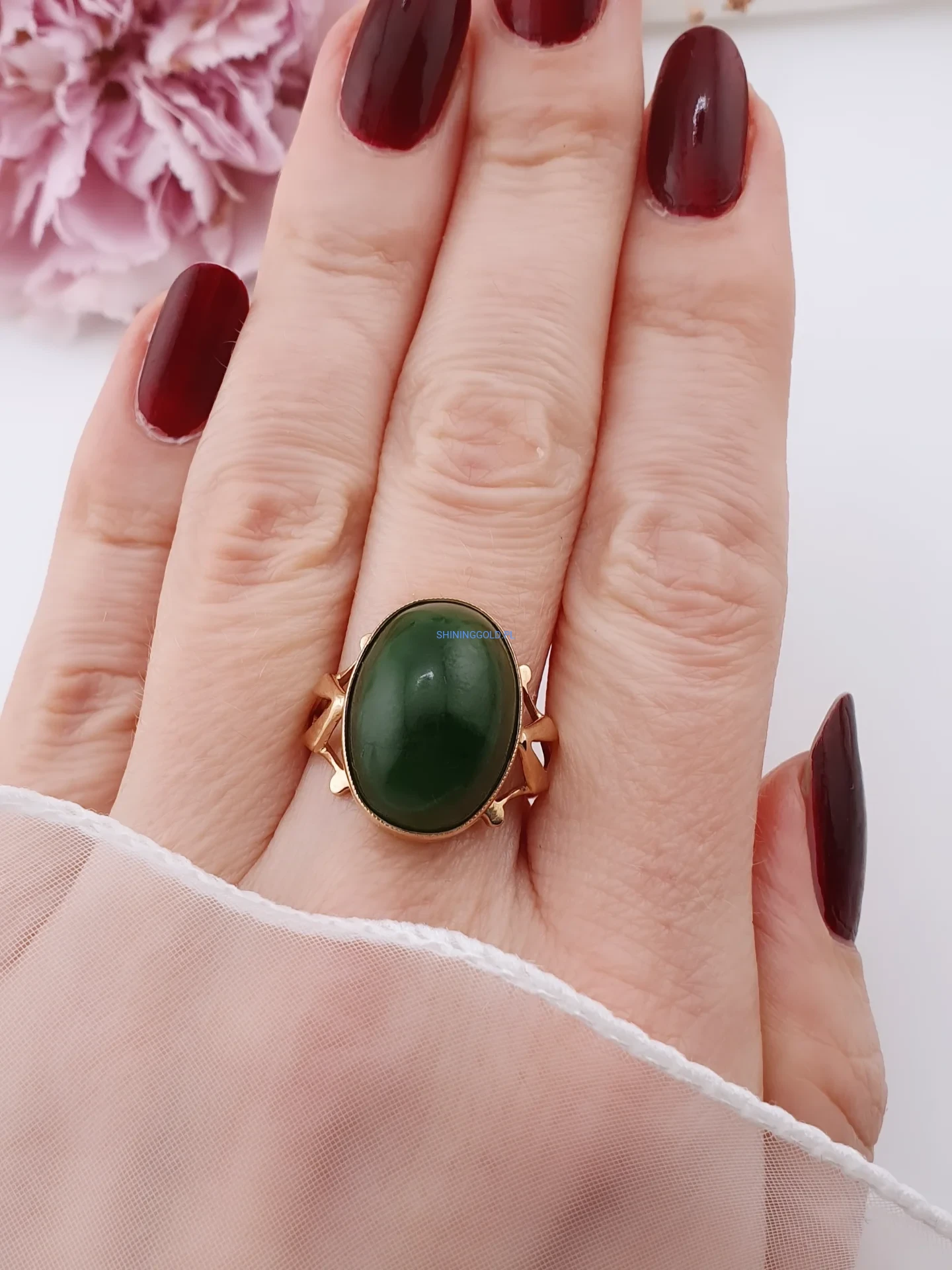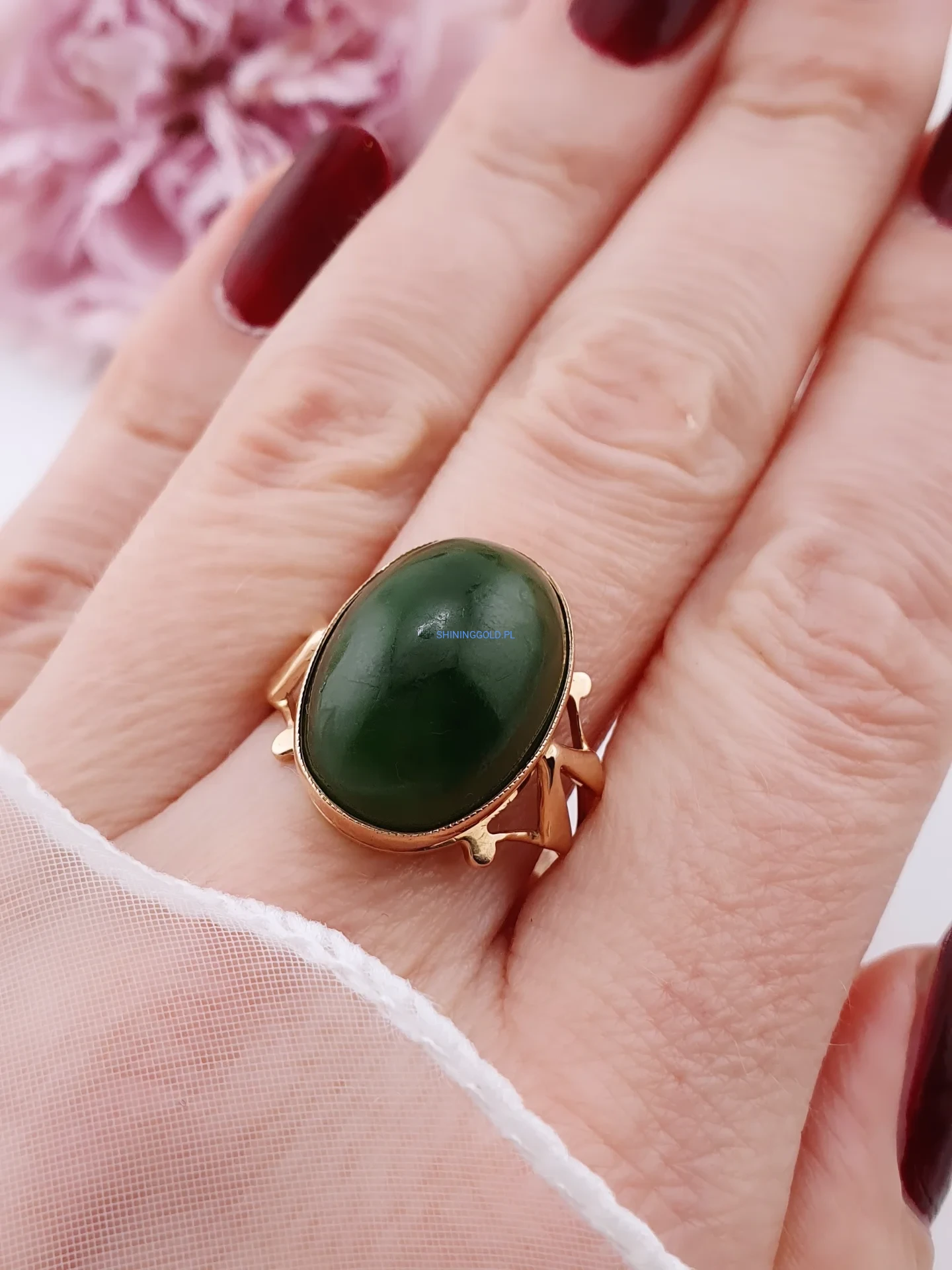 Złoty pierścionek 583 z jadeitem – klasyczna elegancja w szlachetnej formie