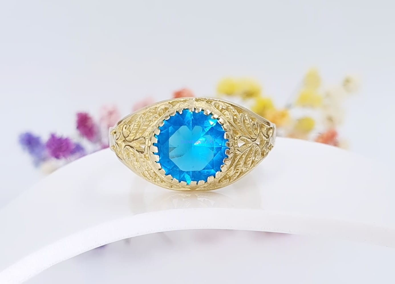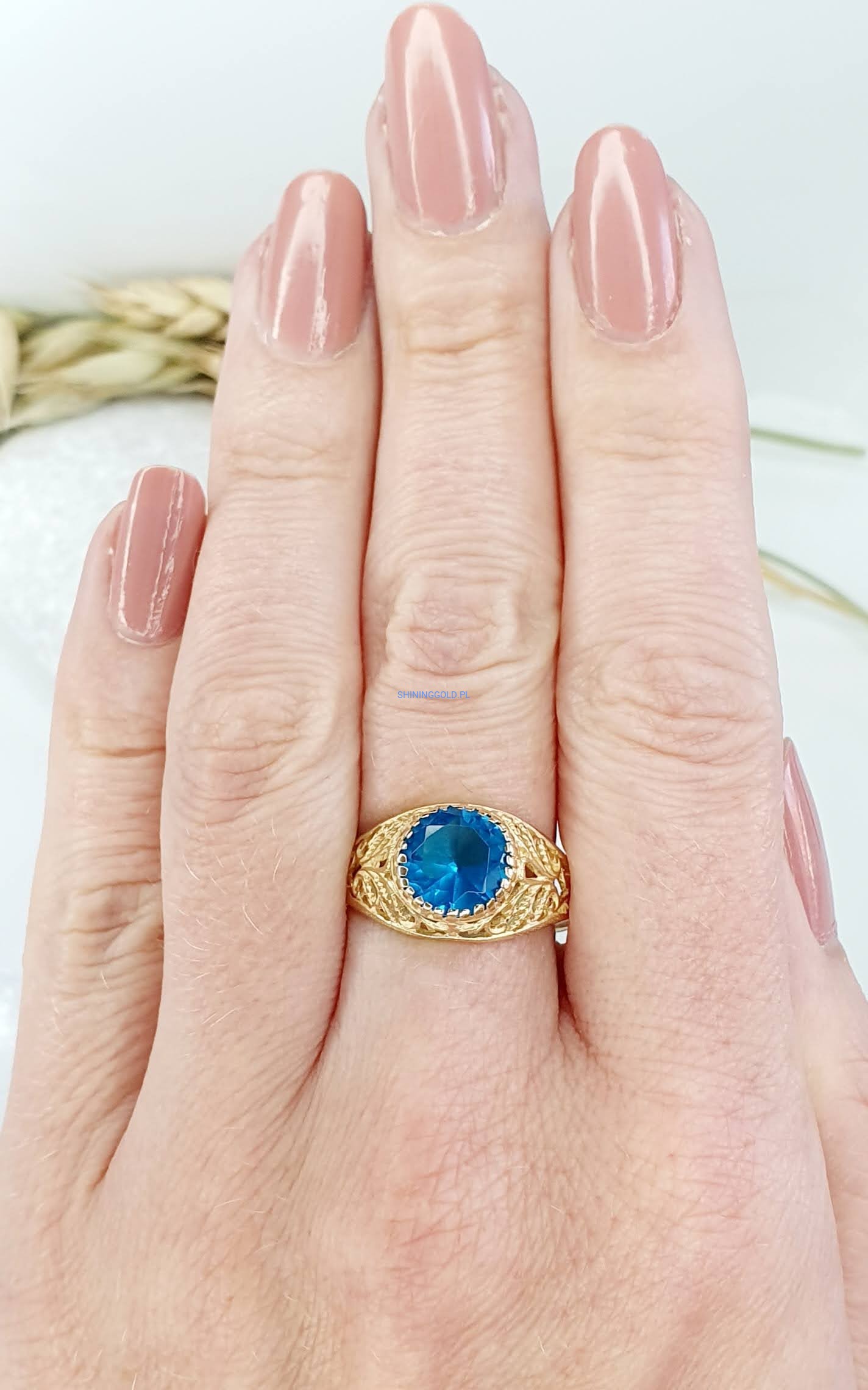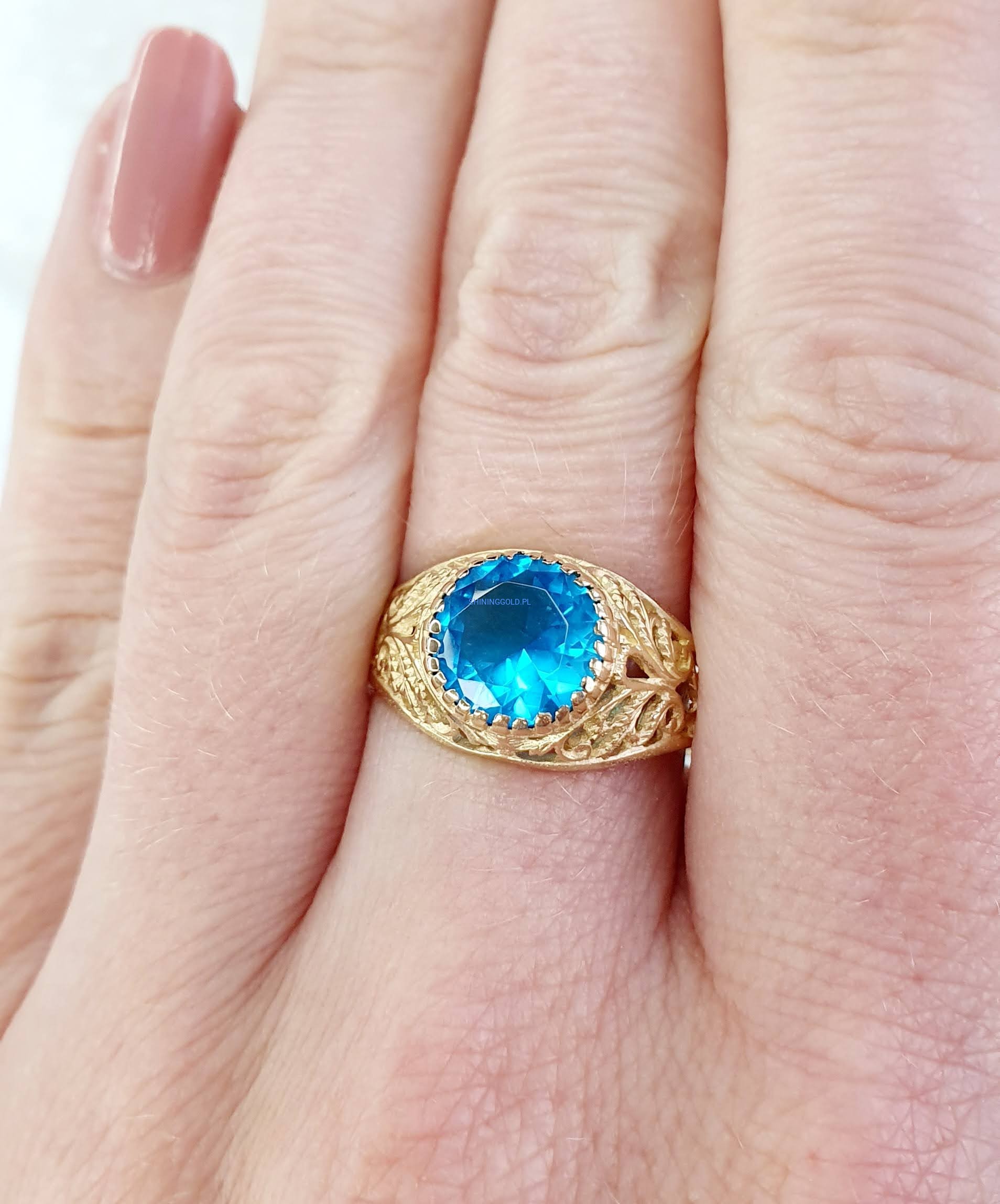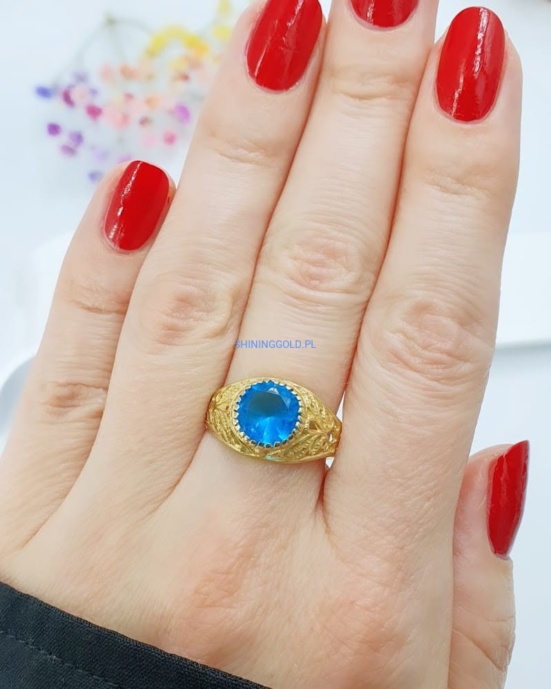 Złoty pierścionek z niebieskim kamieniem (059.A)