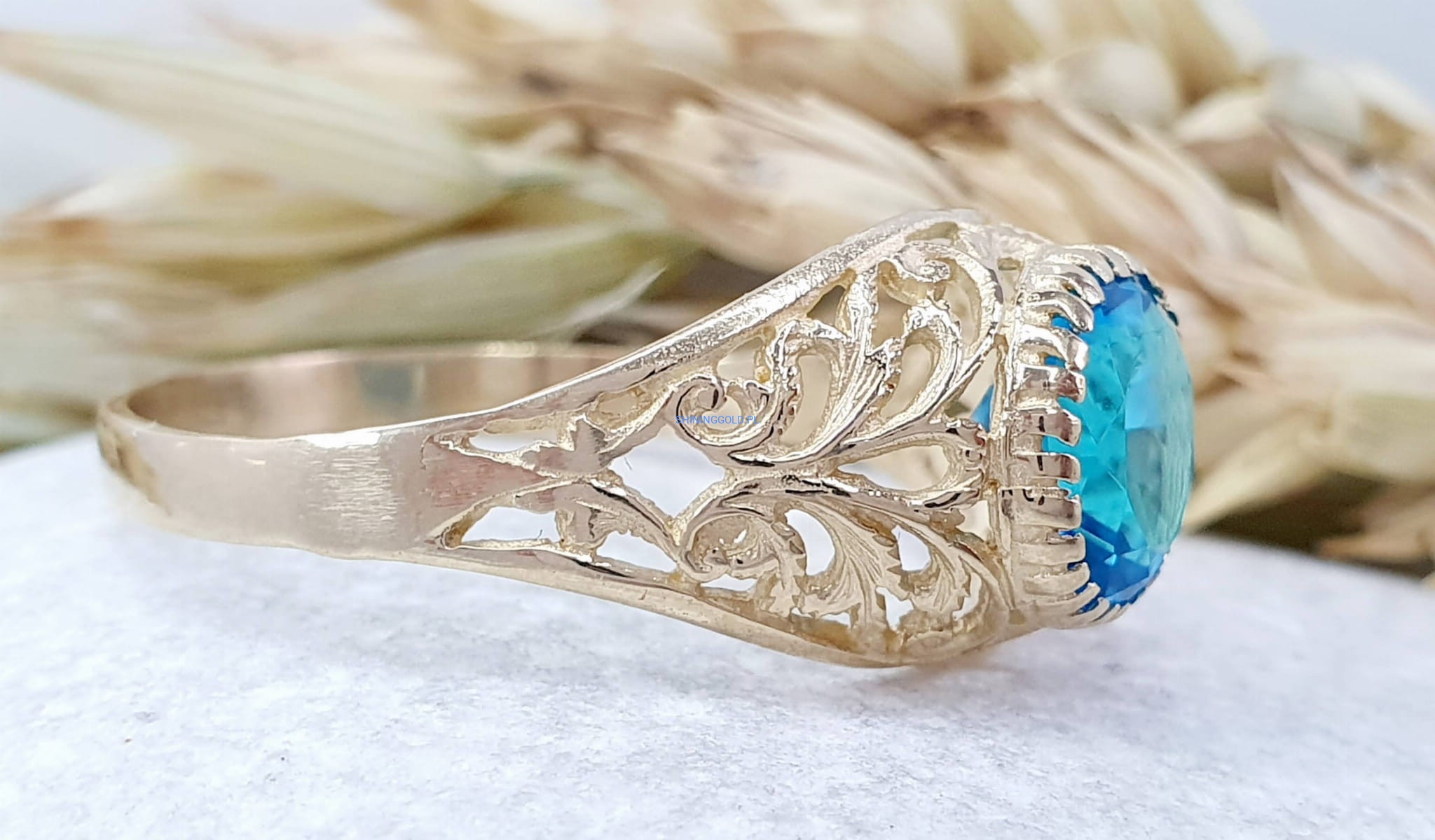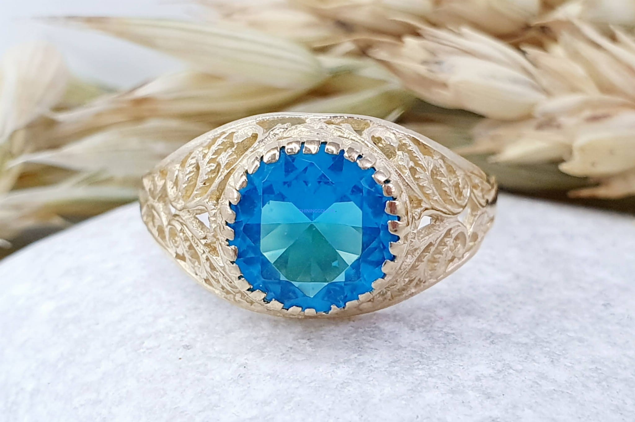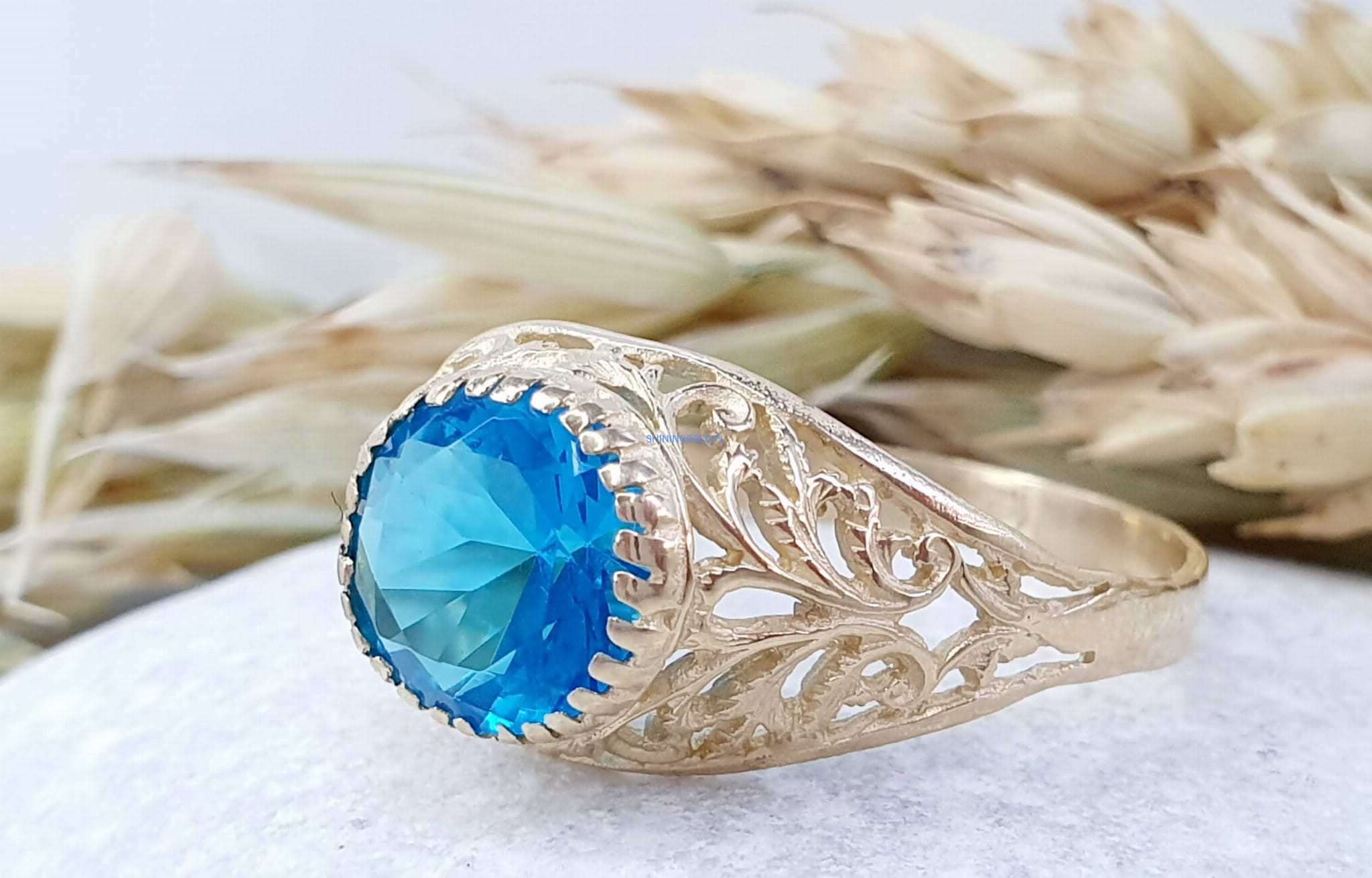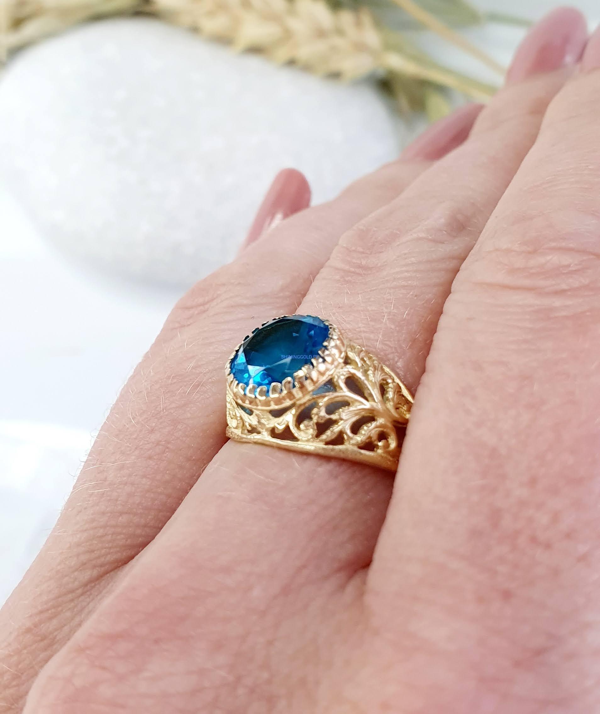 Złoty pierścionek z niebieskim kamieniem (059.A)