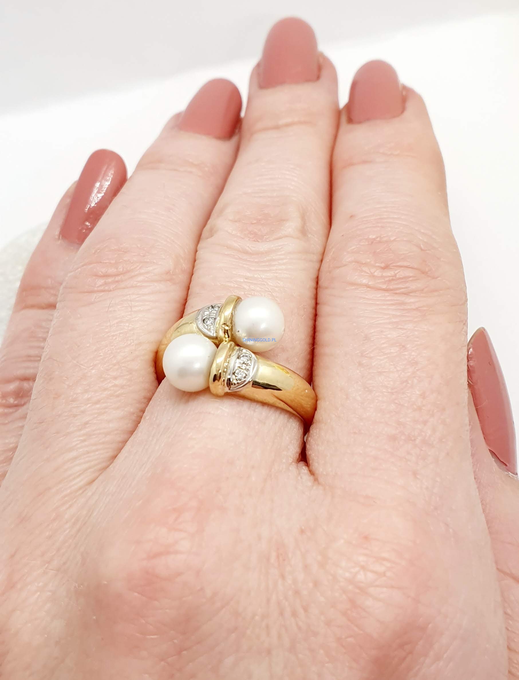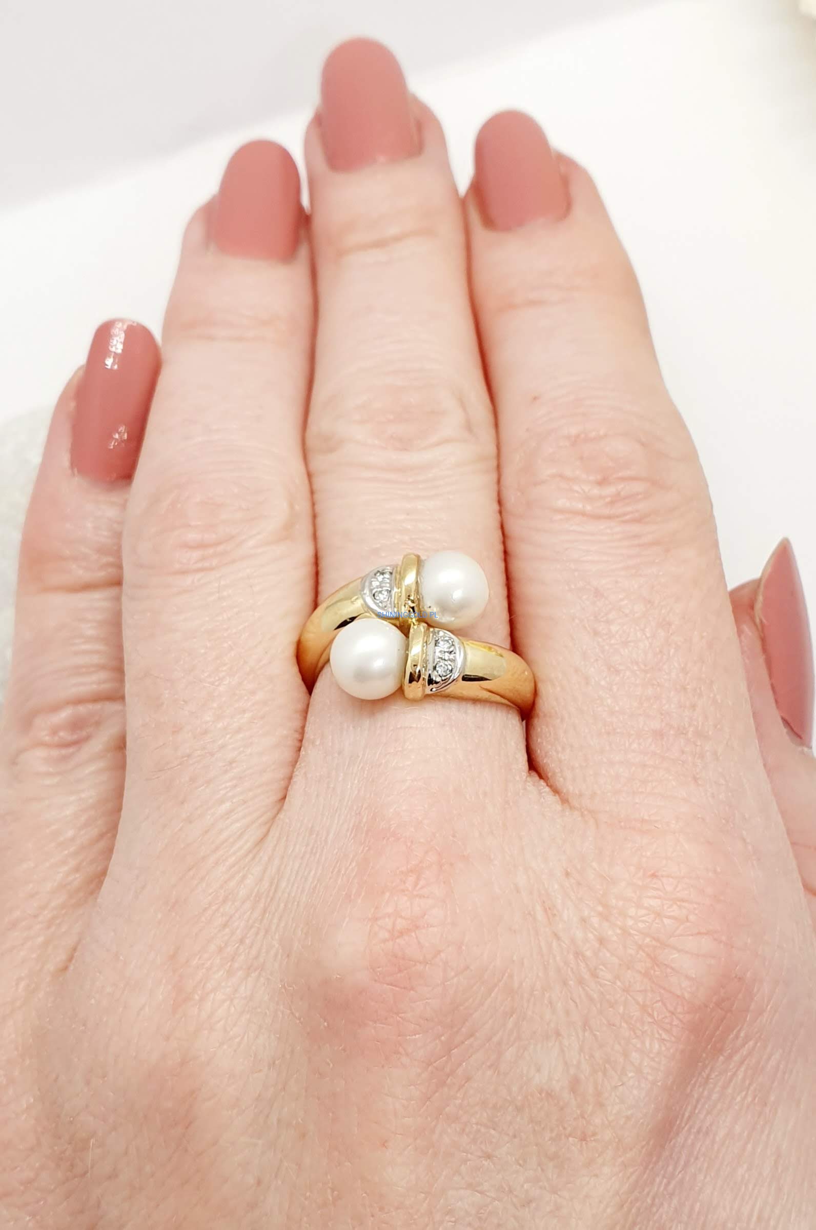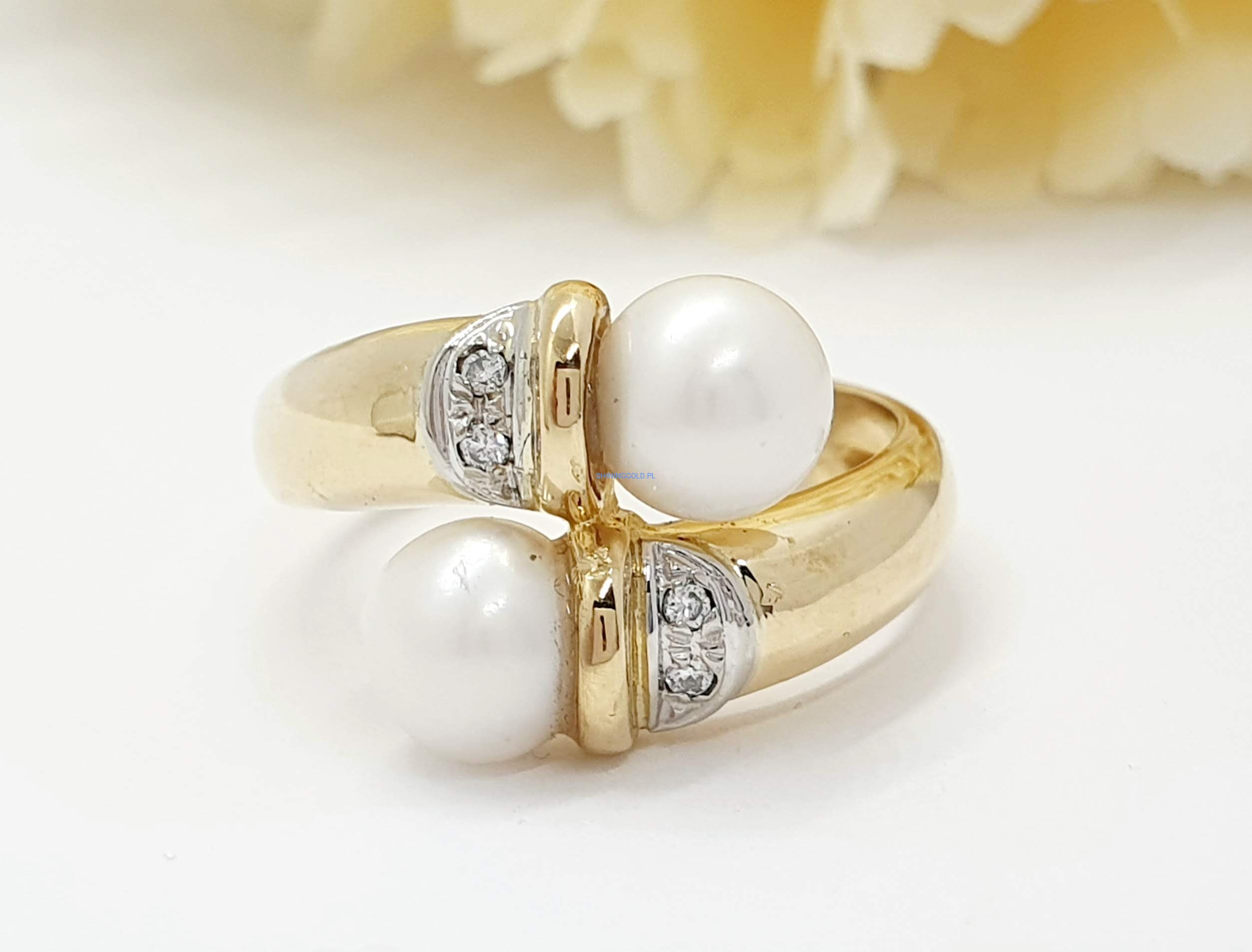 Złoty pierścionek z perłami i diamentami (1015)