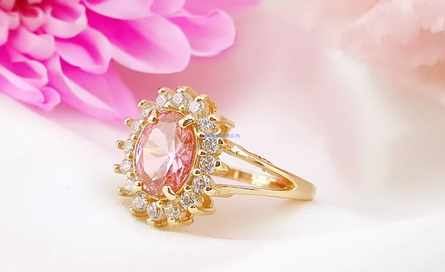 Złoty pierścionek z różową cyrkonią – efektowny, pełen blasku i kobiecości