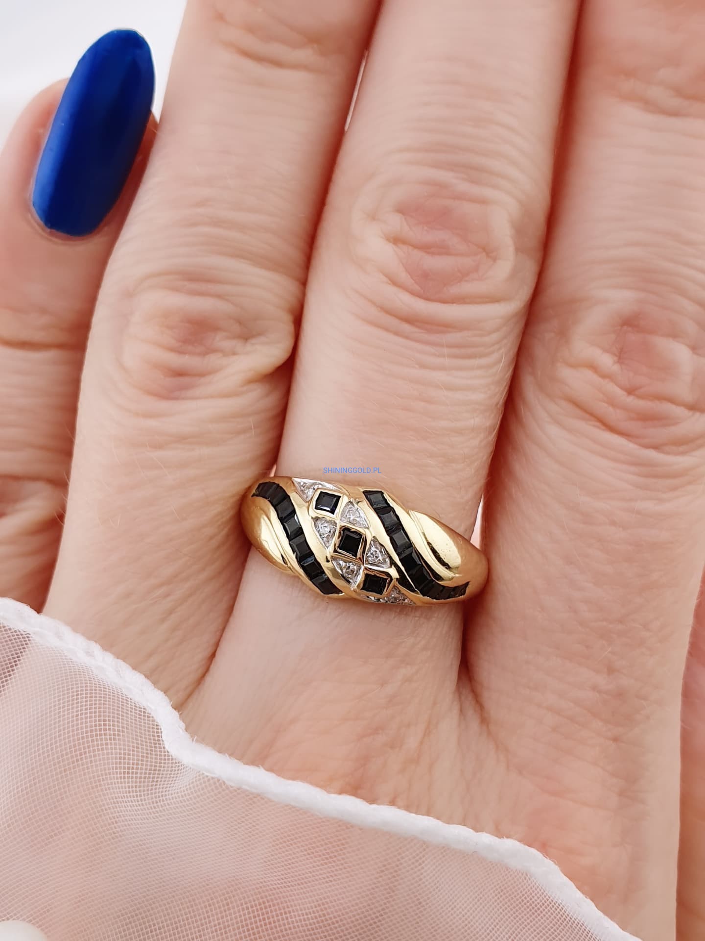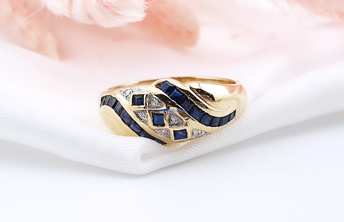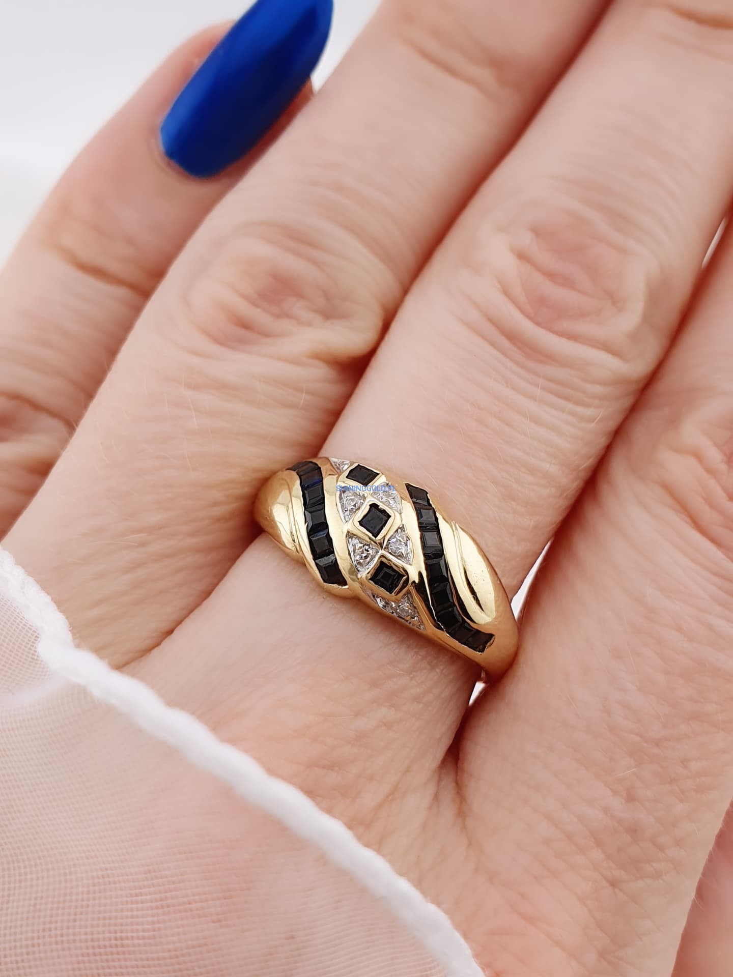 Złoty pierścionek z szafirami i diamentami (1040WS)