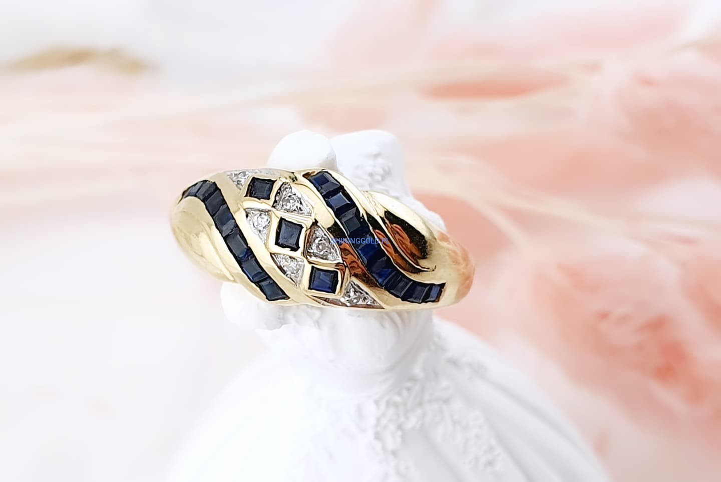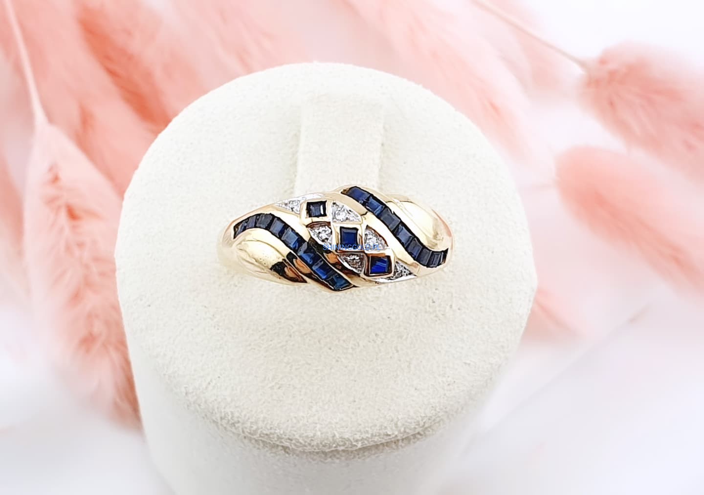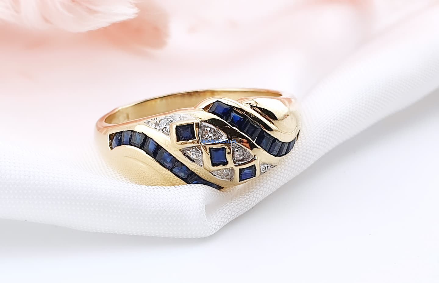 Złoty pierścionek z szafirami i diamentami (1040WS)