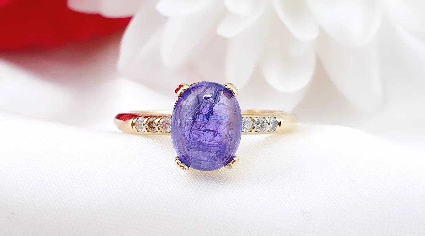 Wyjątkowy pierścionek z tanzanitem i diamentami – luksusowa biżuteria o niezwykłym blasku