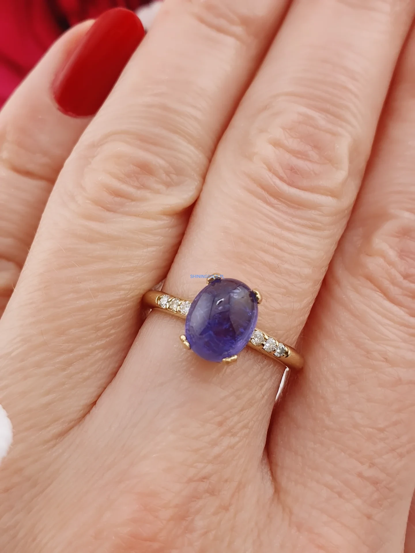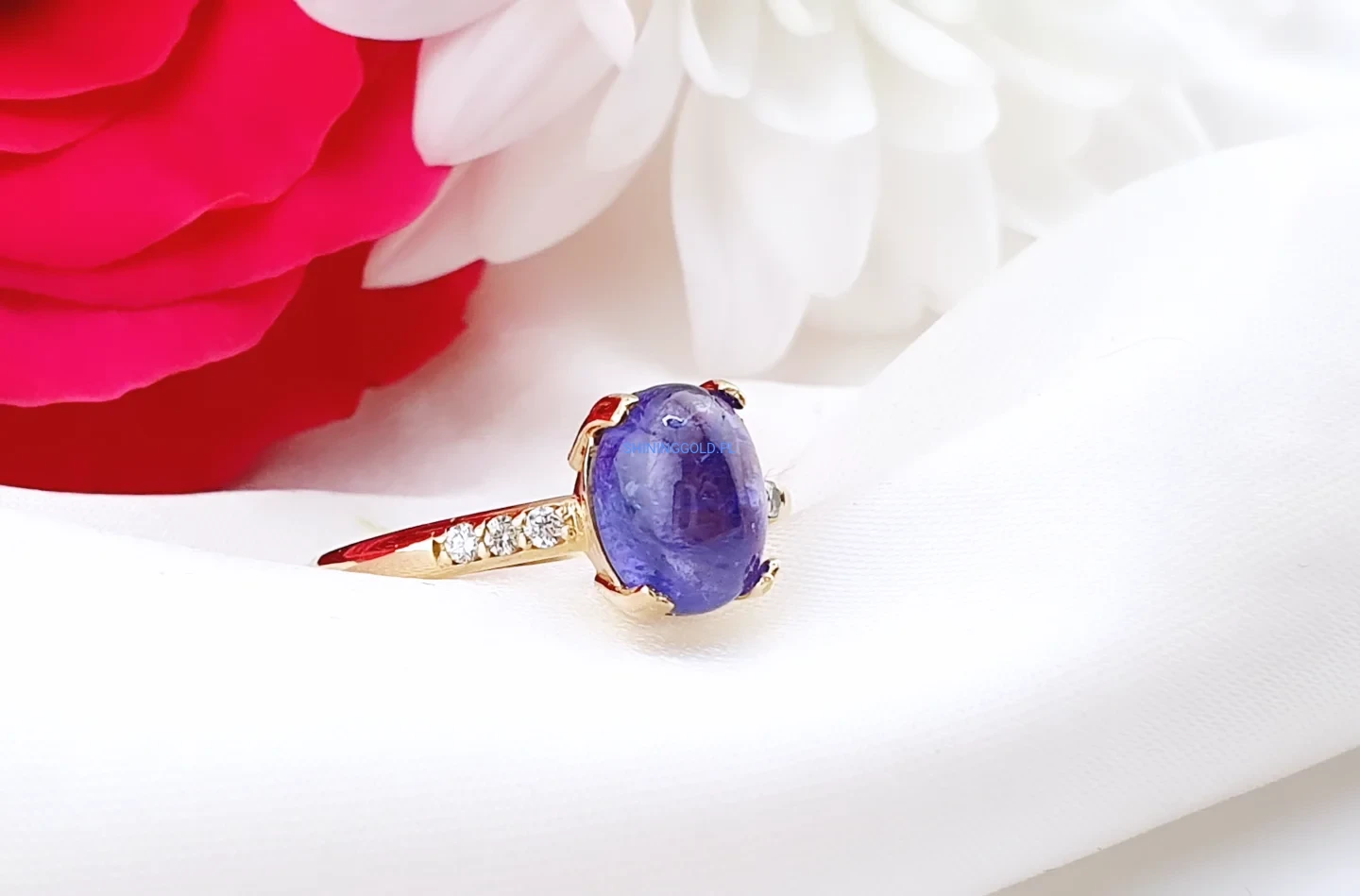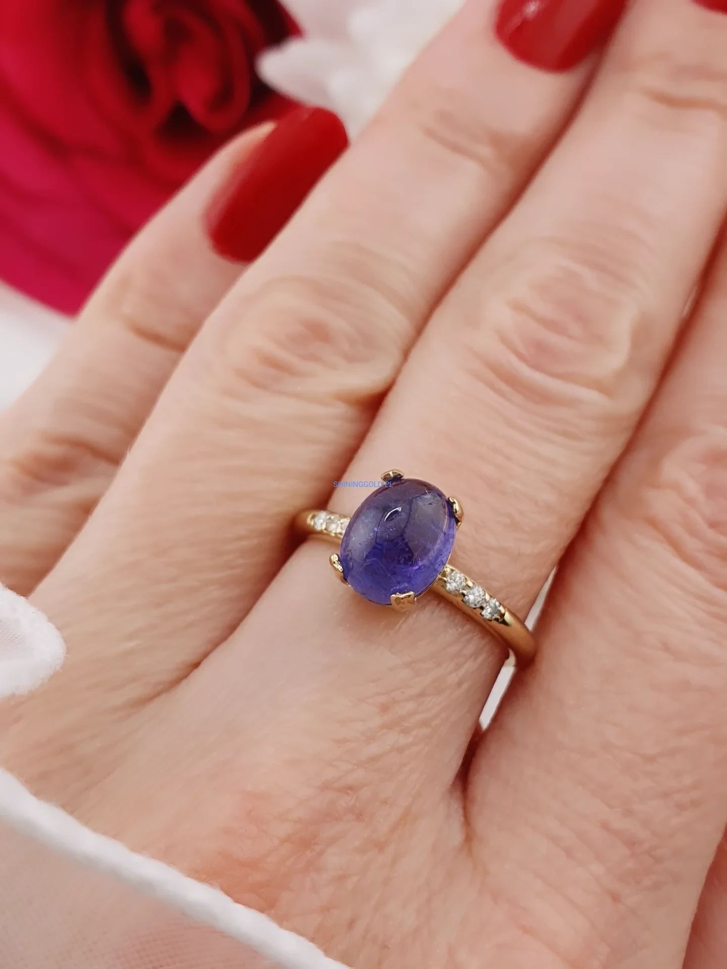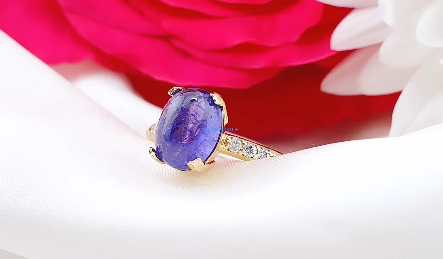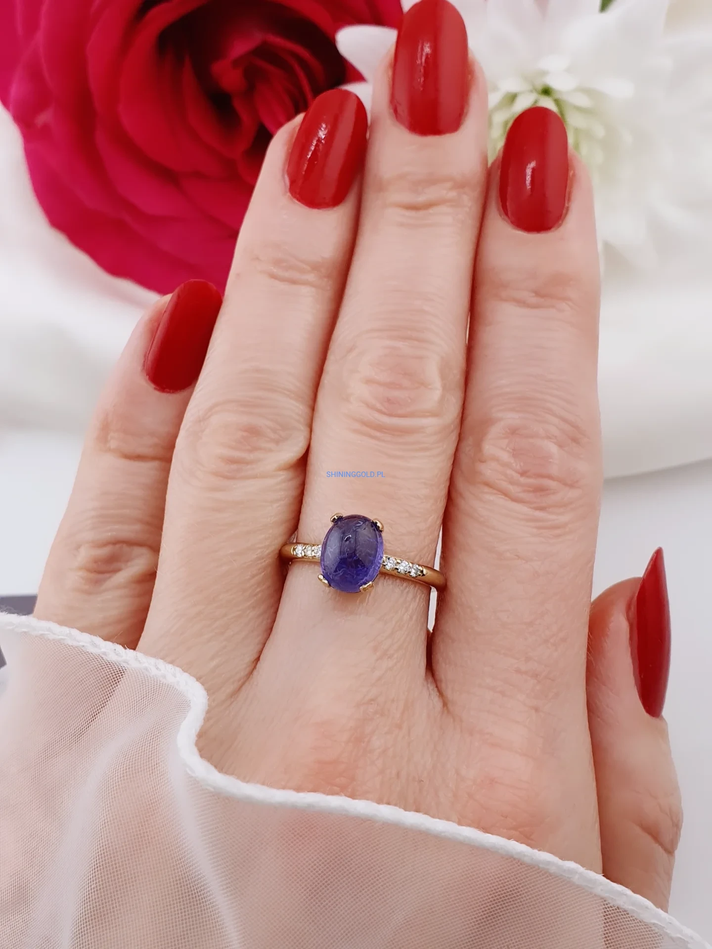 Złoty pierścionek z tanzanitem i diamentami (1107WS)