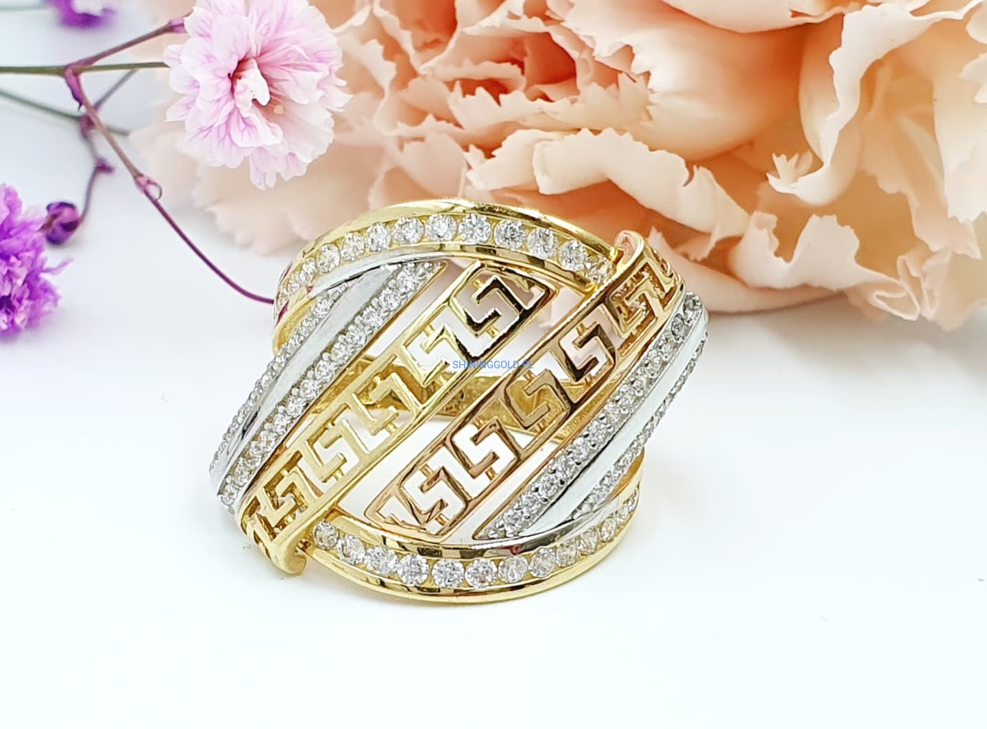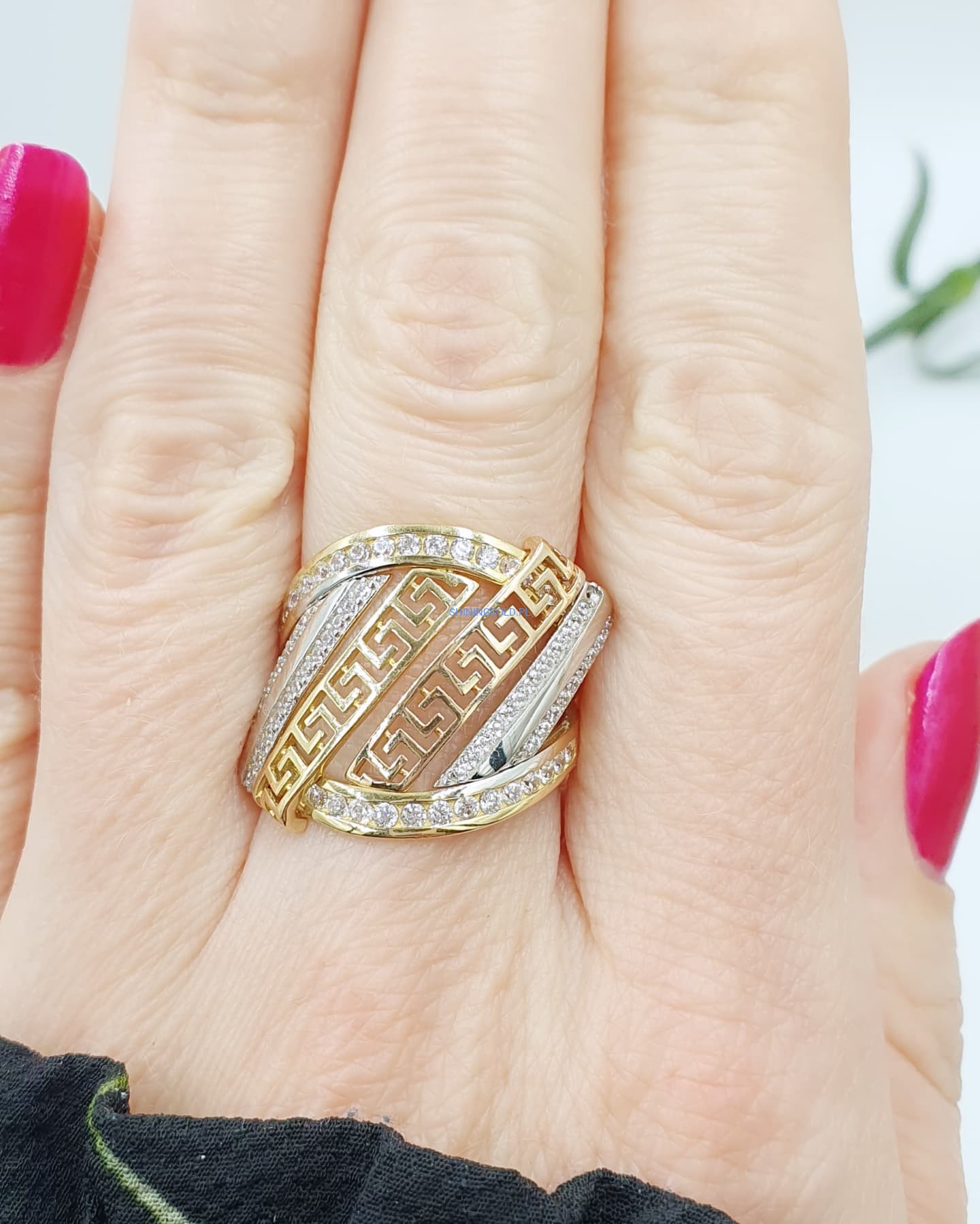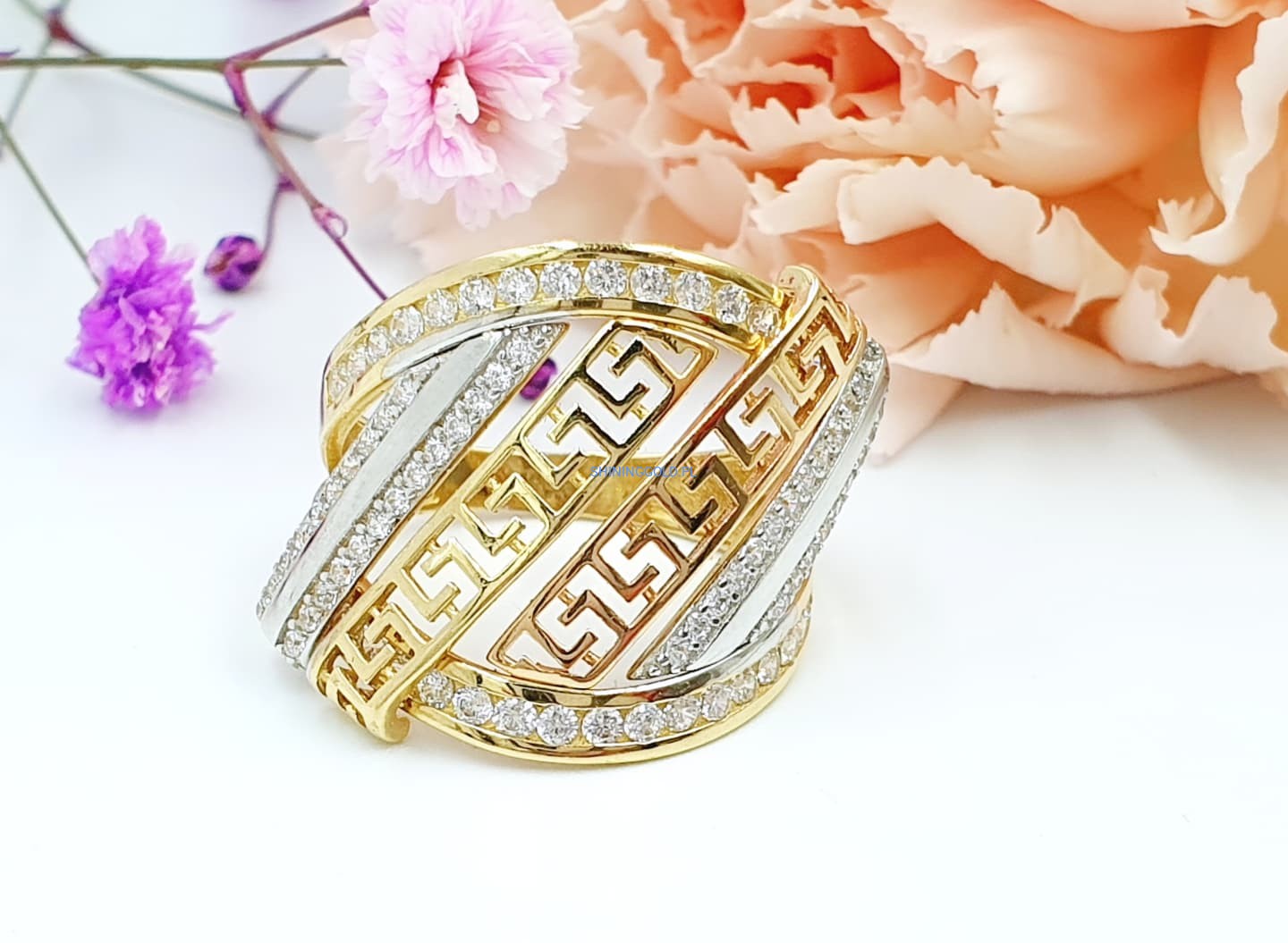 Złoty pierścionek z wzorem greckim (008.WS)