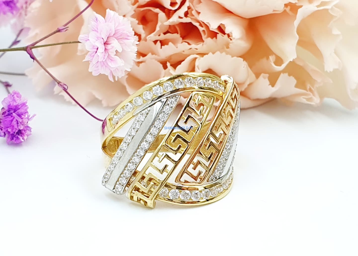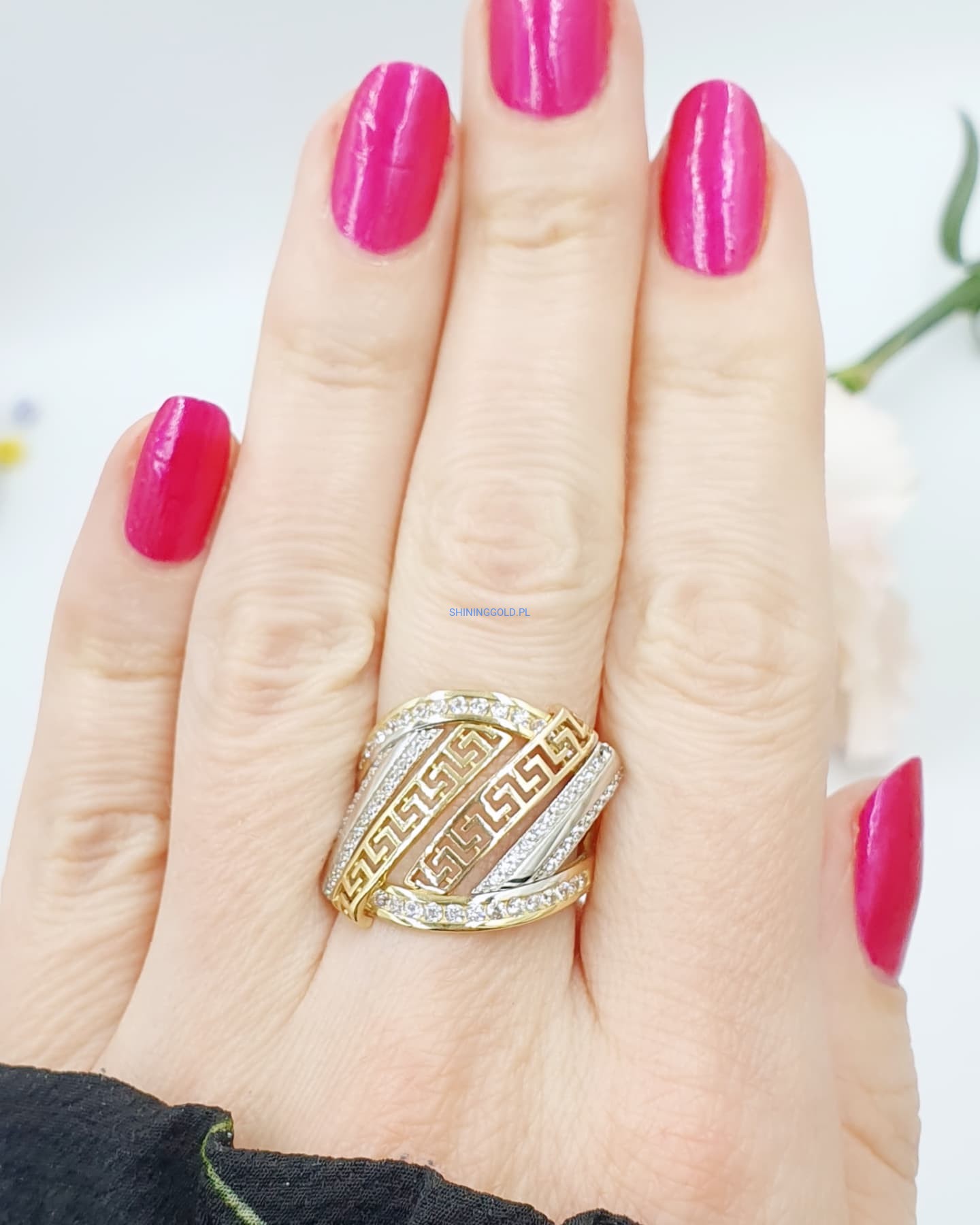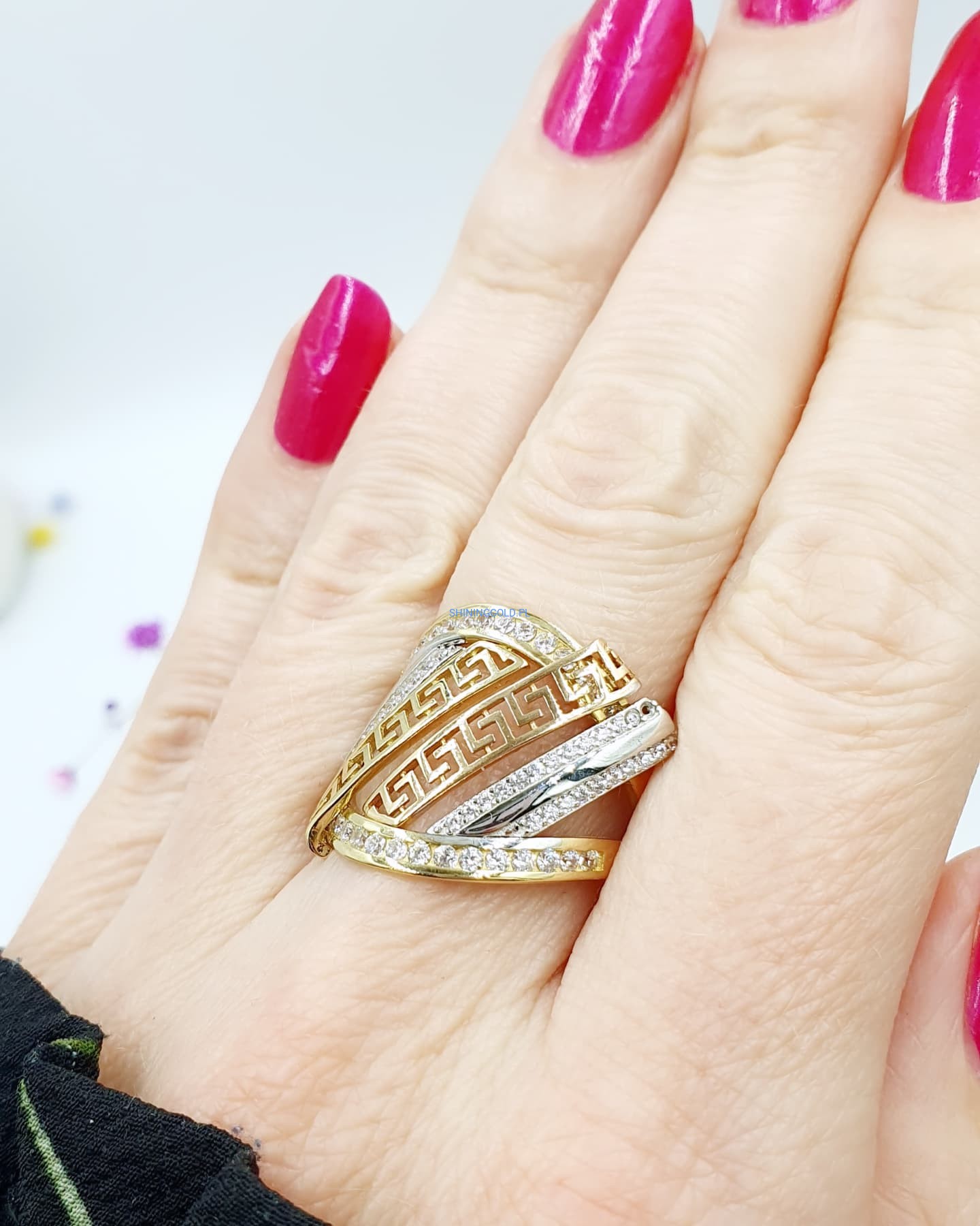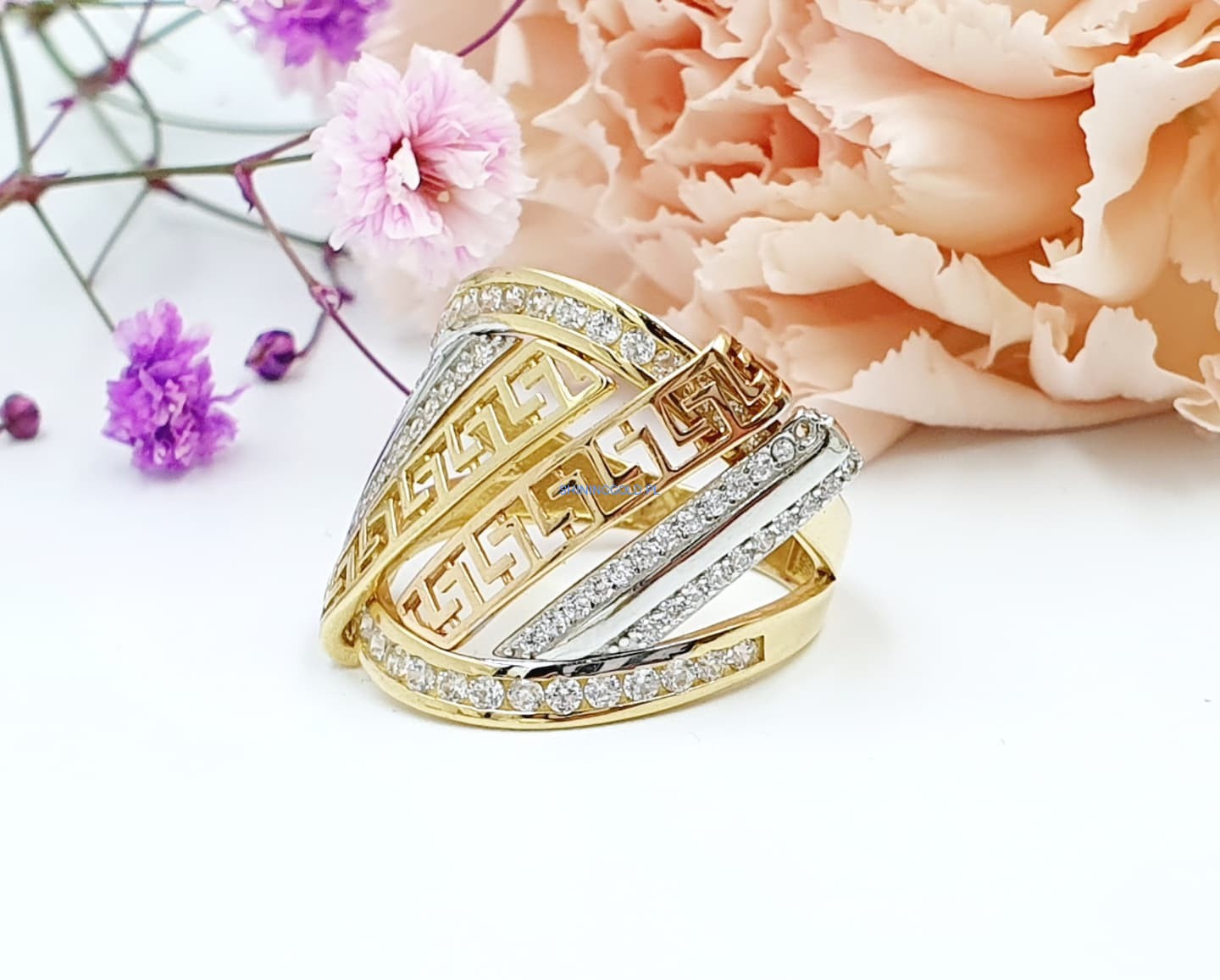Złoty pierścionek z wzorem greckim (008.WS)