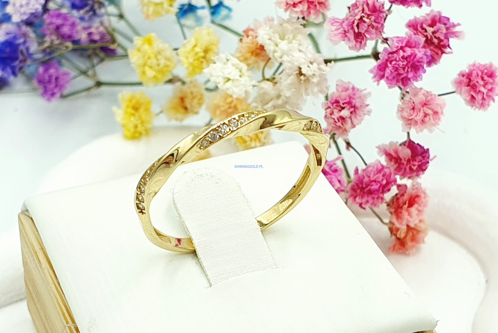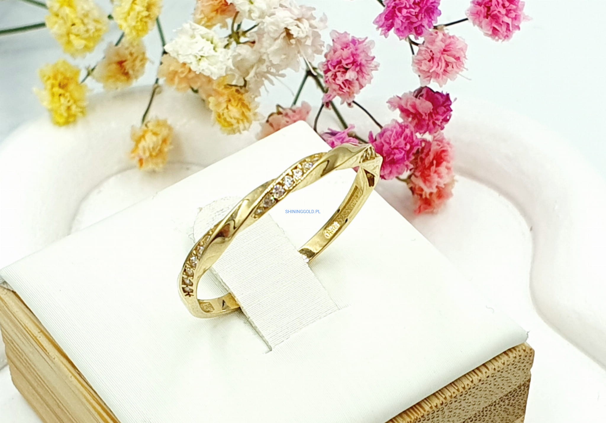 Złoty pierścionek/obrączka z cyrkoniami – subtelny blask i elegancja