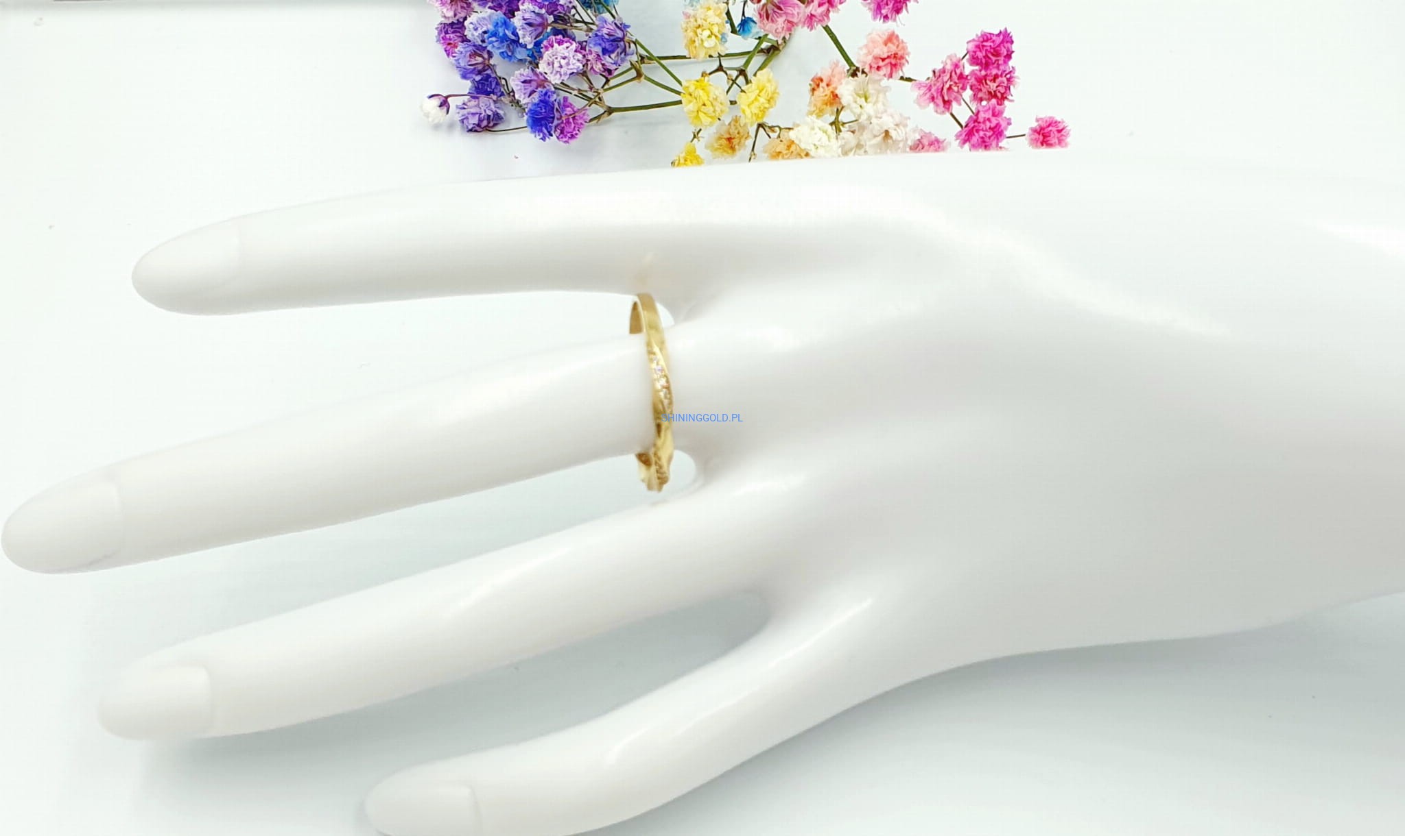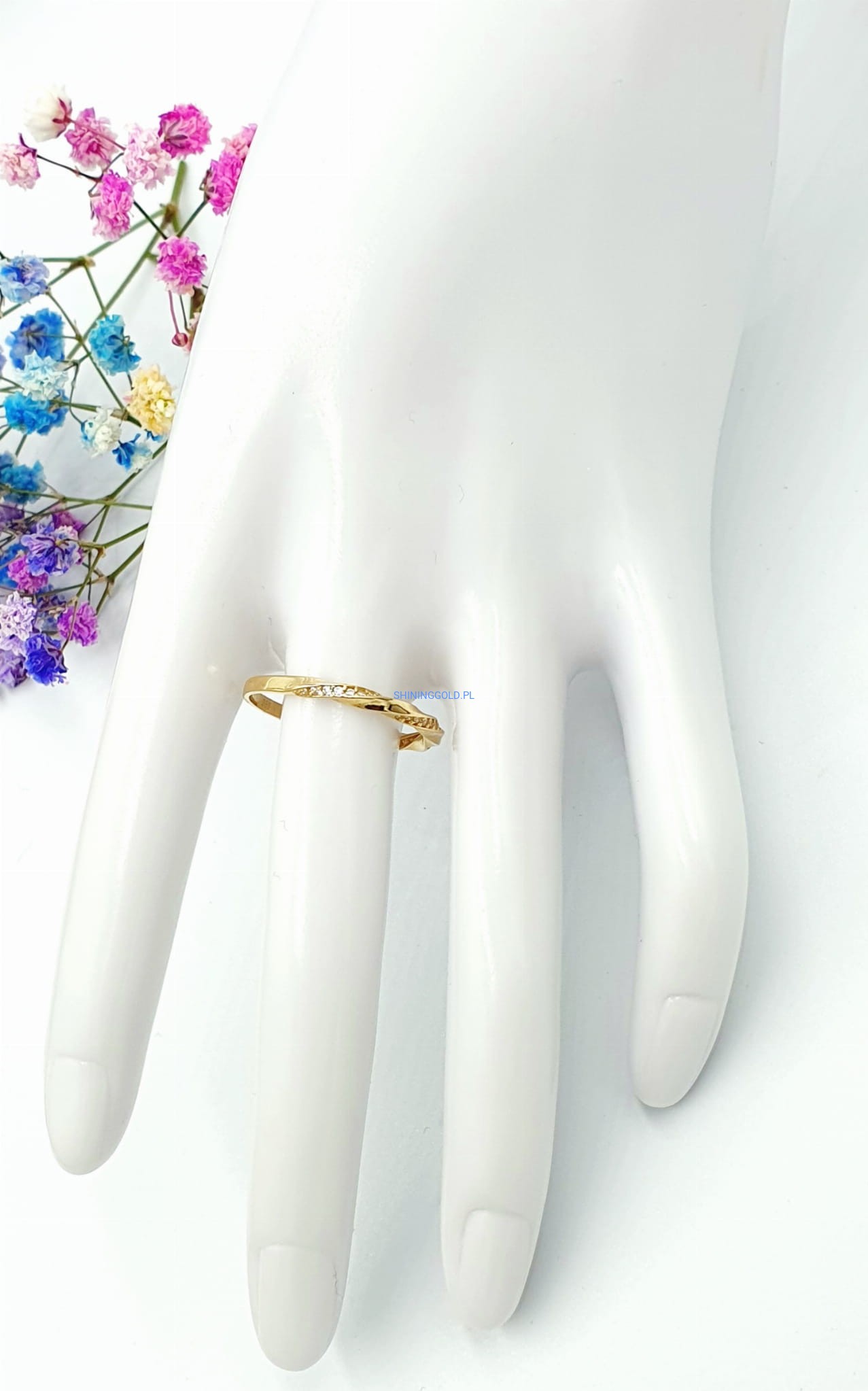 Złoty pierścionek/obrączka z cyrkoniami (054WS)