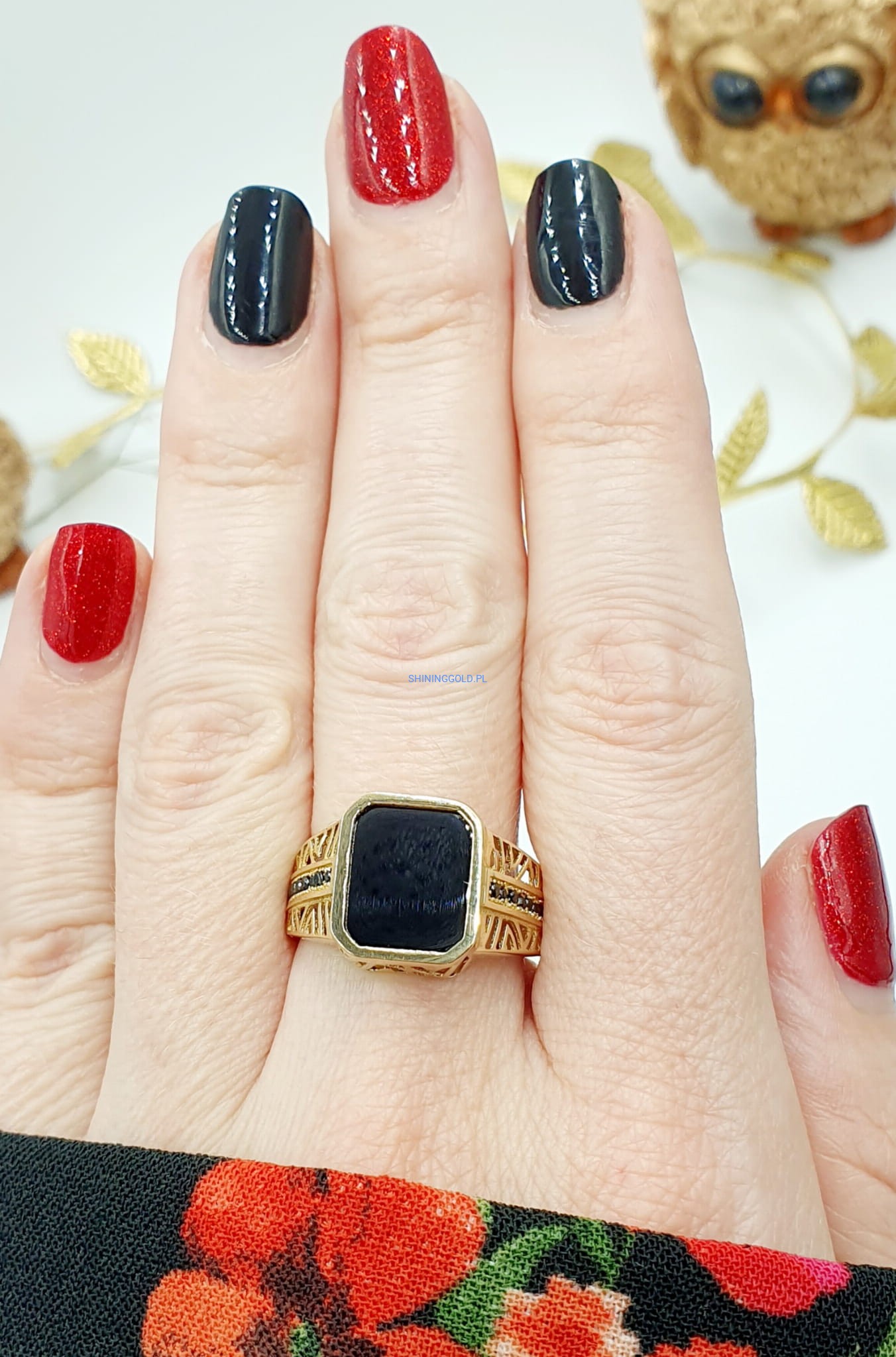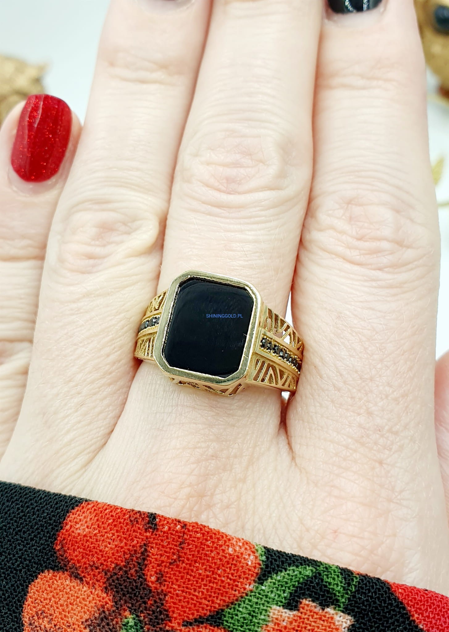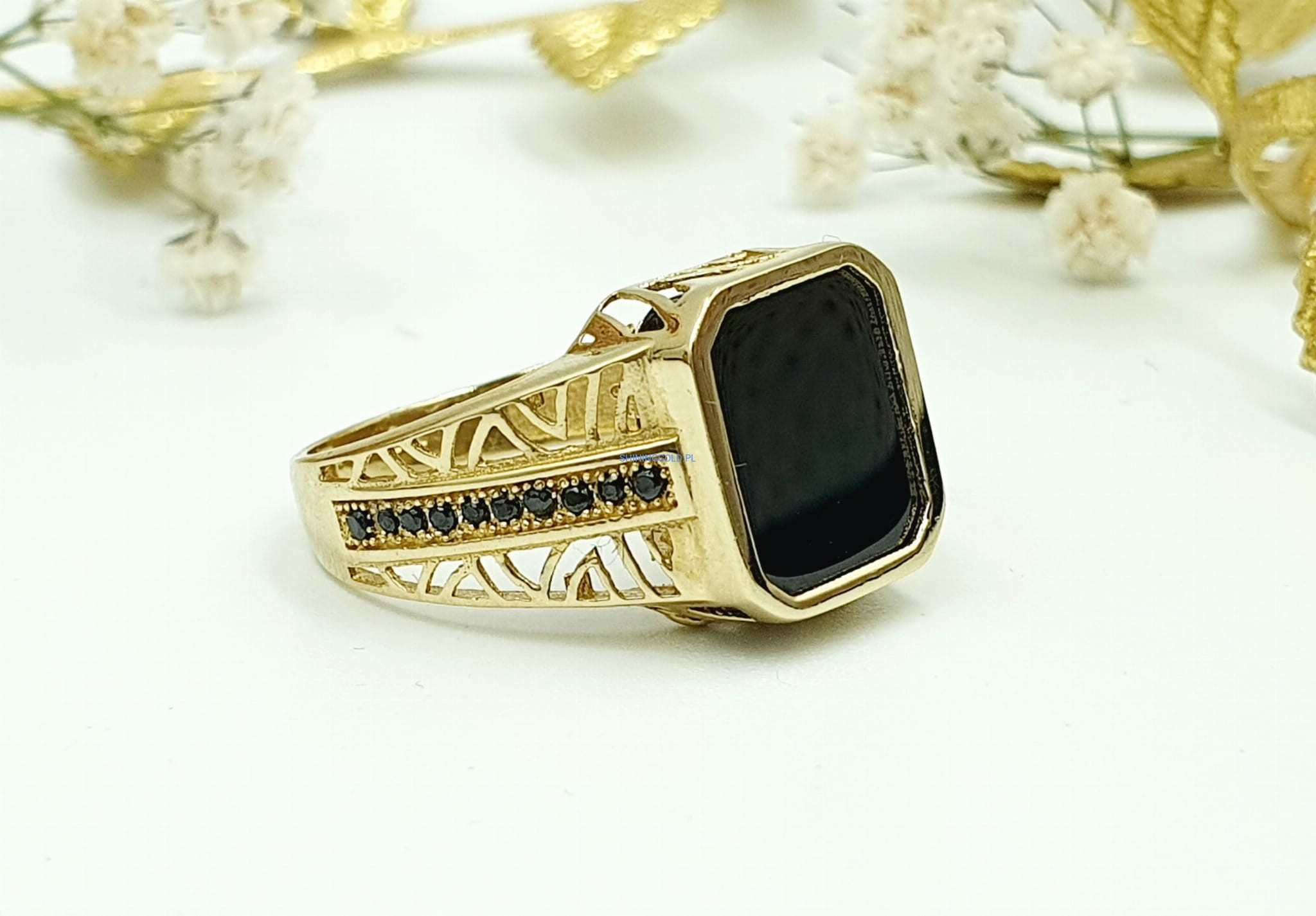 Złoty sygnet z Onyksem