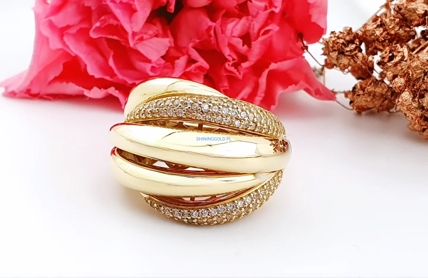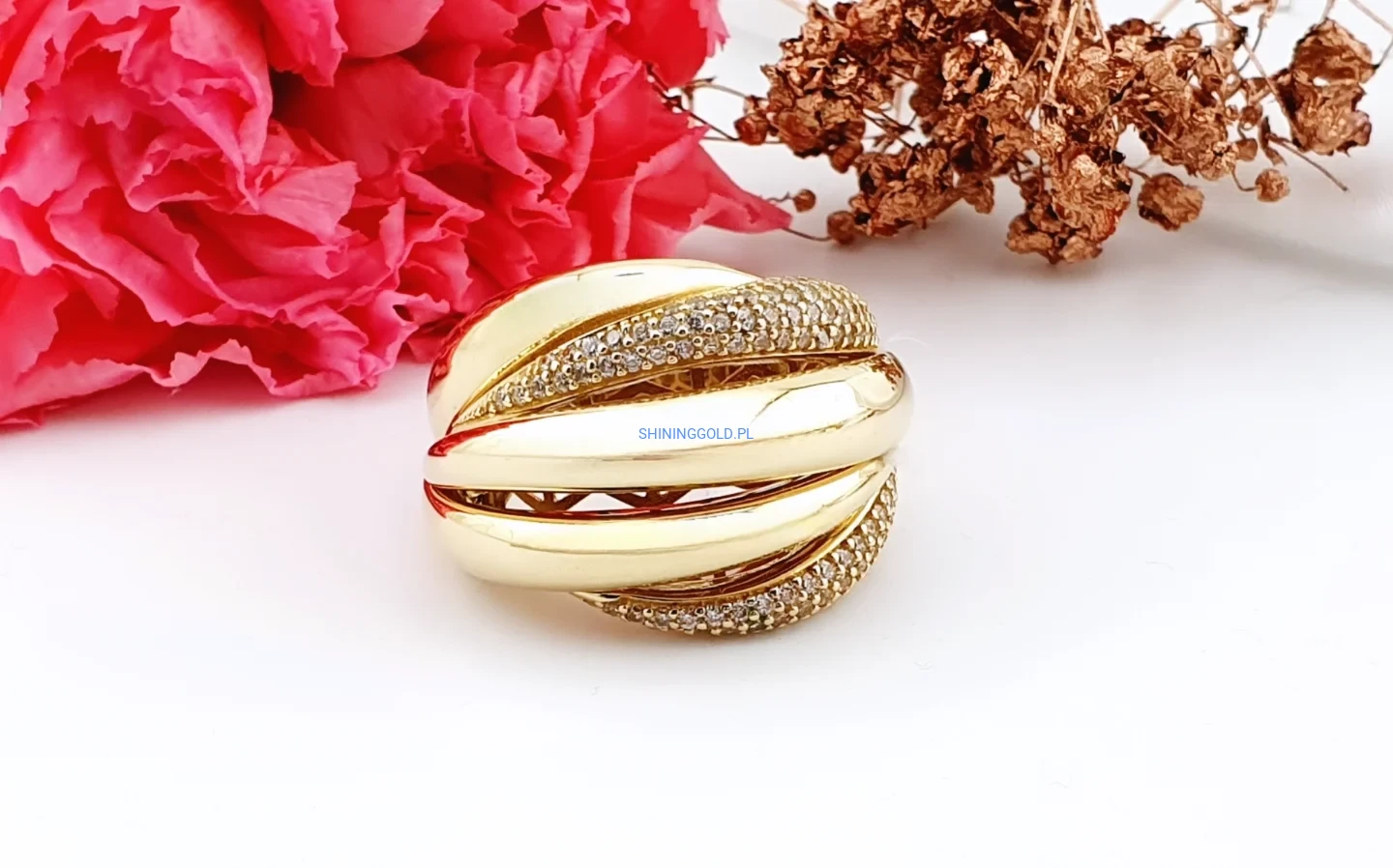 Złoty pierścionek z cyrkoniami 585 – elegancki pierścionek złoty, rozmiar 20