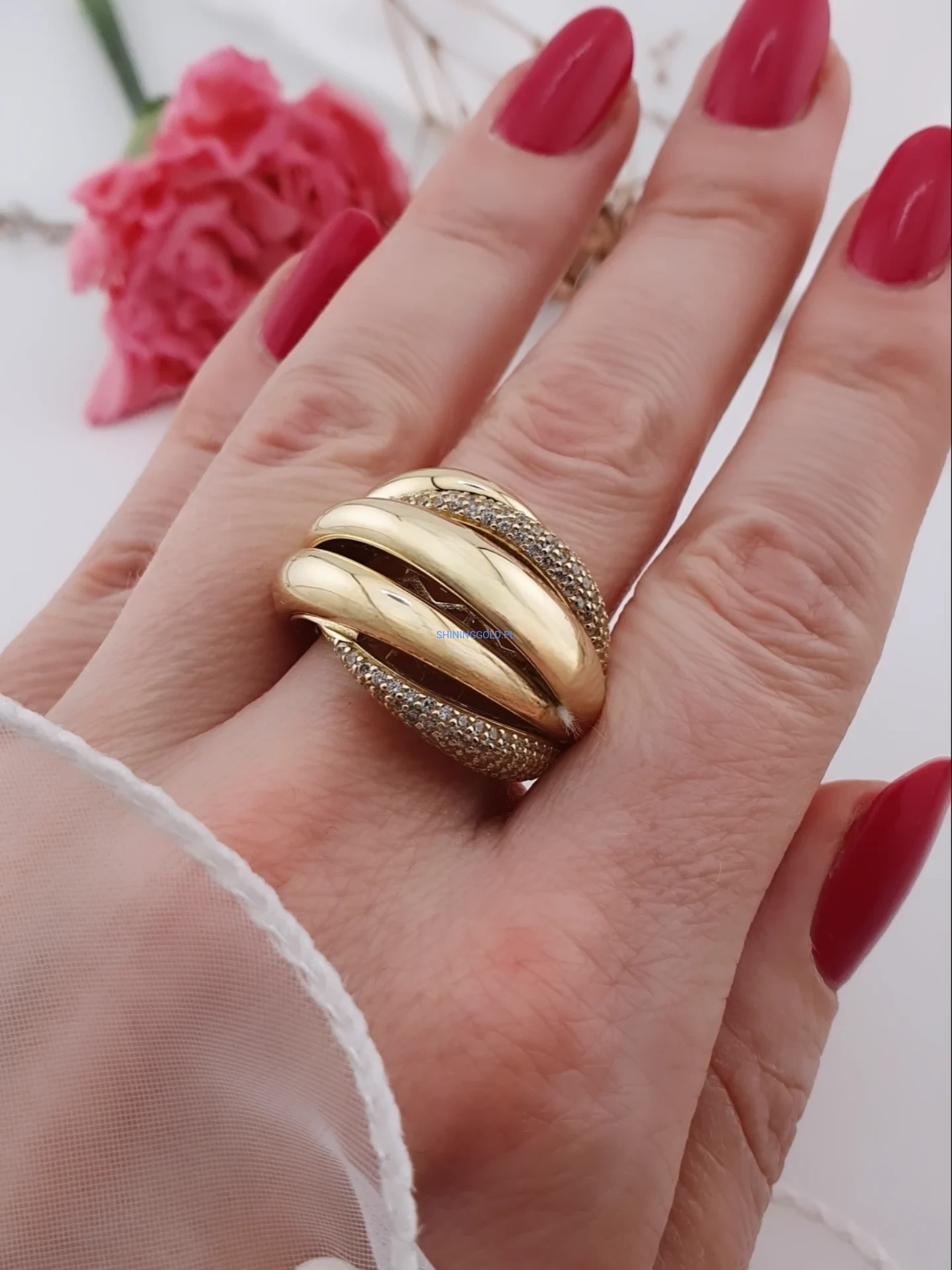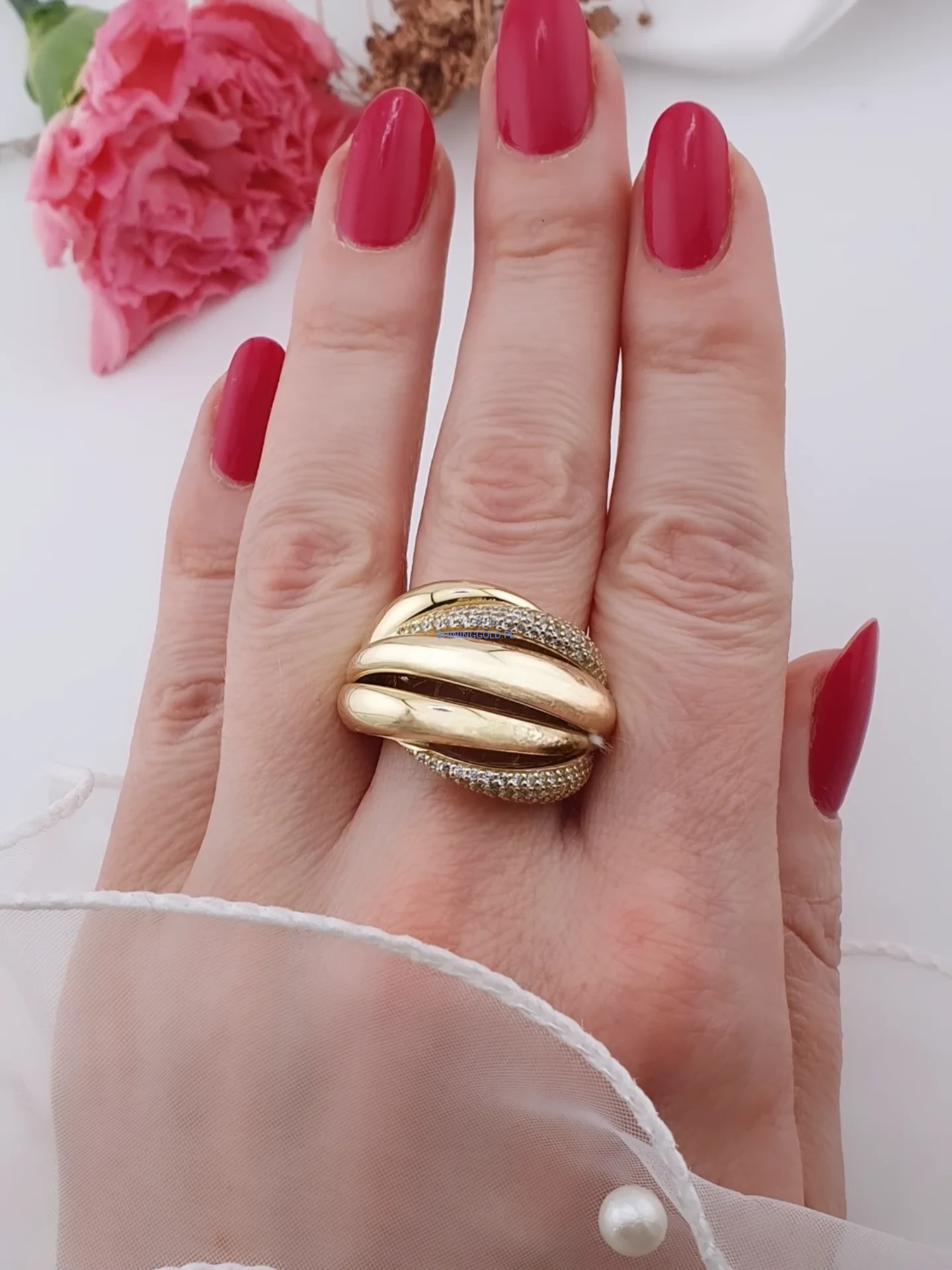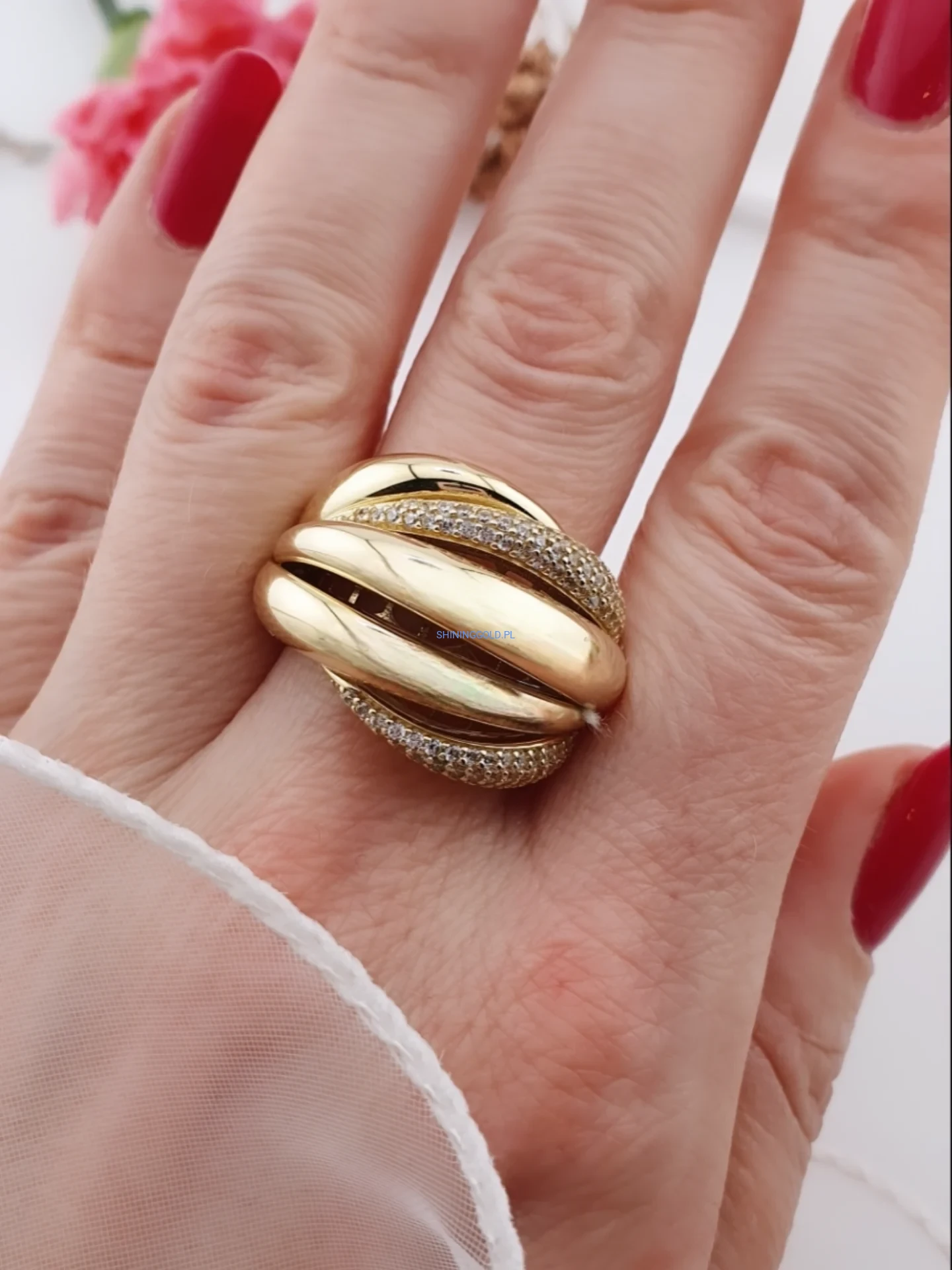 Jeśli szukasz eleganckiego złotego pierścionka z cyrkoniami, który będzie piękną ozdobą dłoni i ponadczasowym dodatkiem do biżuterii – ten model będzie doskonałym wyborem.